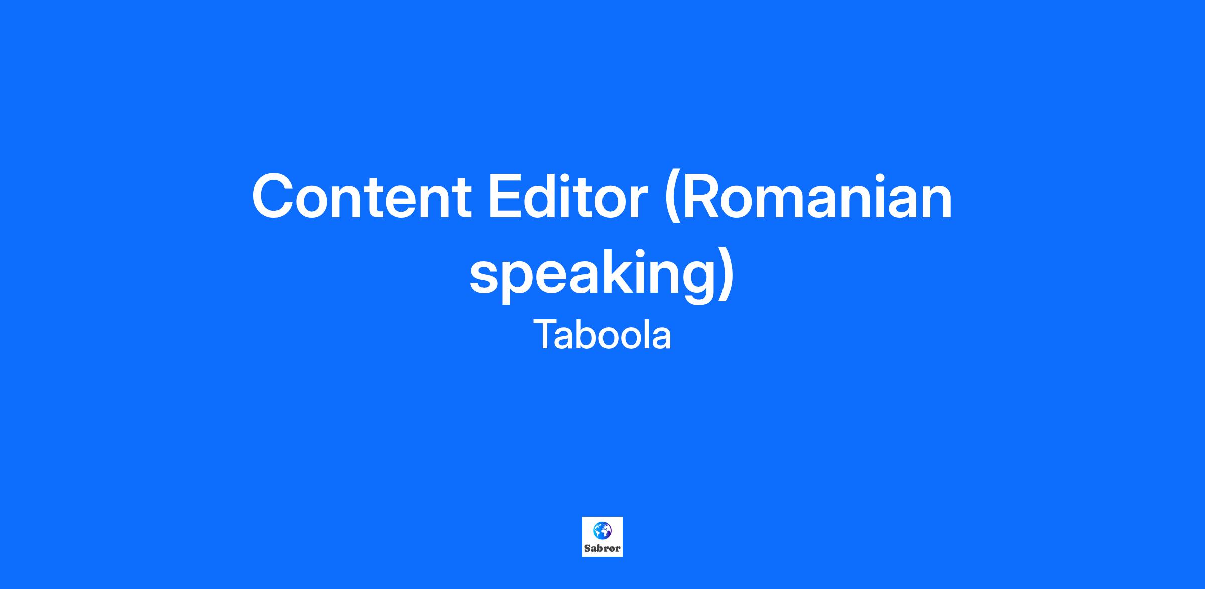 Online Content Editor (Romanian Speaking) – Remote, EMEA Realize your potential by joining the leading performance-driven advertising company! As an Online Content Editor focused on Romanian audiences, you will shape the content feeds that millions of people see every day on leading mobile platforms. You will review and curate timely, high-quality articles that reflect the interests of local readers. Working remotely across EMEA, you’ll play a vital role in ensuring Taboola’s content recommendations are accurate, relevant, and engaging. To thrive in this role, you’ll need: Native or professional fluency in Romanian and English 2+ years’ experience in digital journalism, editing, or publishing Deep familiarity with Romanian media, politics, and popular culture Ability to work independently and manage editorial workflows Confidence using editorial or content management tools Bonus points if you have: Experience with SEO, content recommendation platforms, or mobile content delivery Background in news curation, editorial policy, or audience engagement How you’ll make an impact: As an Online Content Editor, you will: Review and curate news and editorial content for Romanian feeds Ensure articles meet standards for accuracy, legality, recency, and source diversity Apply strong editorial judgment to maintain balance across categories Monitor breaking news and cultural trends to keep feeds updated Flag risks, policy violations, or misinformation Support platform quality through consistent and timely content decisions Why Taboola? If you ask Taboolars what they love about working here, they’ll tell you that they’ve been empowered to realize their full potential while growing and learning from and with smart and talented people. They’ll also share more about: Adam Singolda, Taboola Founder and CEO says: “You can copy anything from another business but you can’t copy a company’s culture.” Well-being: Enjoy comprehensive benefits, a fully stocked kitchen, and location-specific perks. Flexibility: We offer a hybrid work schedule with 3 days in-office with an option to come in more often if desired. Work with some of the biggest names: Our publisher partners include Yahoo, Conde Nast, Fox Sports, NBCU, ESPN, CBS, and E! Online. Our advertiser clients include Wells Fargo, Honda, Pinterest, Expedia and Honda. Ready to realize your potential? Taboola is an equal opportunity employer and we value diversity in all forms. We are committed to creating an inclusive environment for all employees and believe such an environment is critical for success. Employment is decided on the basis of qualifications, merit, and business need. Learn more about #TaboolaLife on LinkedIn, Facebook, Instagram, X, YouTube, & the Taboola Life Blog. About Taboola Taboola empowers businesses to grow through performance advertising technology that goes beyond search and social and delivers measurable outcomes at scale. Taboola works with thousands of businesses who advertise directly on Realize, Taboola’s powerful ad platform, reaching approximately 600M daily active users across some of the best publishers in the world. Publishers like NBC News, Yahoo, and OEMs such as Samsung, Xiaomi and others use Taboola’s technology to grow audience and revenue, enabling Realize to offer unique data, specialized algorithms, and unmatched scale. #LI-Remote #LI-LG1