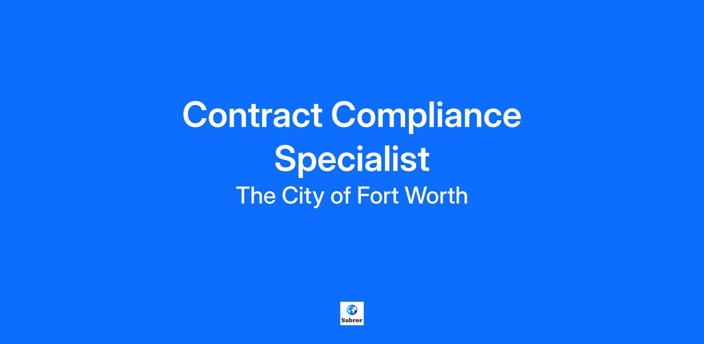 Pay Range: $26.38 - $34.30/hr. | $54,879 - $71,343 annual compensation Job Posting Closing on: Tuesday, December 9, 2025 π Workdays & Hours: Monday β Friday 8 am β 5 pm; Some evening/weekend work required. Benefits for this position include: 11 Paid Holidays, Medical, Dental, Vision, Paid Time Off, Pension Plan, and Professional Development Opportunities. Find Out More! The City of Fort Worth is one of the fastest growing large cities in the U.S. Our employees serve the needs of over 1,000,000 residents, promoting our values of exceptional customer experience, mutual respect, embracing our diversity, continuous improvement, ethical behavior, and accountability. π A Contract Compliance Specialist job is available with the City of Fort Worth Neighborhood Services Compliance Division. Contract Compliance Specialists play a vital role in supporting local social service efforts that help low-income residents by administering grant awards made to child care and youth service agencies, homeless service providers, and affordable housing organizations. Compliance Specialists also ensure that all applicable rules and regulations are followed for a wide variety of federal and state grant funds. This is a grant-funded position contingent upon grant funds. Minimum Qualifications: Bachelor's degree from an accredited college No prior experience required Valid driverβs license Preferred Qualifications: A desire to work in service to low-income communities Strong detail orientation and good mathematical aptitude Knowledge of or Experience with Microsoft Word, Outlook, Excel and PowerPoint The Contract Compliance Specialist job responsibilities include: Maintaining relationships with external partners through excellent verbal and written communication. Using a variety of software applications to manage contractor reimbursements and performance data. Making regular onsite monitoring visits to review nonprofit agency or affordable housing property records for compliance with contract and regulatory requirements. Working collaboratively with multiple internal and external customers to ensure adherence to City and federally mandated procedures. Working Conditions Depending on assignment, positions in this class typically require touching, talking, hearing, seeing, grasping, standing, stooping, kneeling, crouching, reaching, walking and repetitive motions. Physical Demand Light Work β Depending on assignment, positions in this class typically exert up to 20 pounds of force occasionally, up to 10 pounds of force frequently, and/or a negligible amount of force constantly having to move objects. If the use of arm and/or leg controls requires exertion of forces greater than that for the Sedentary Work category and the worker sits most of the time, the job is rated Light Work. Apply Now! Come be part of something special in Fort Worth. π Conditions of Employment The City of Fort Worth is proud to be an Equal Employment Opportunity employer. It is the policy and practice of the City to recruit, hire, train and promote a diverse workforce without regard to race, color, religion, sex (including pregnancy and gender identity), national origin, political affiliation, sexual orientation, marital status, disability, genetic information, age, membership in an employee organization, parental status, military service, or another non-merit factor. The City of Fort Worth is committed to full compliance with the Americans with Disabilities Act. Reasonable accommodations may be made to enable qualified individuals with disabilities to participate in the job application or interview process and to perform essential job functions. Candidates who do not meet the Education requirement, may be considered if they have more relevant work experience than the position requires. Those selected for employment will be required to pass Pre-Employment checks depending on the position requirements. Those could include, but are not limited to: criminal background check, drug screen, education verification, etc. criminal convictions will be considered on a case-by-case basis. Employees are paid by direct deposit only.