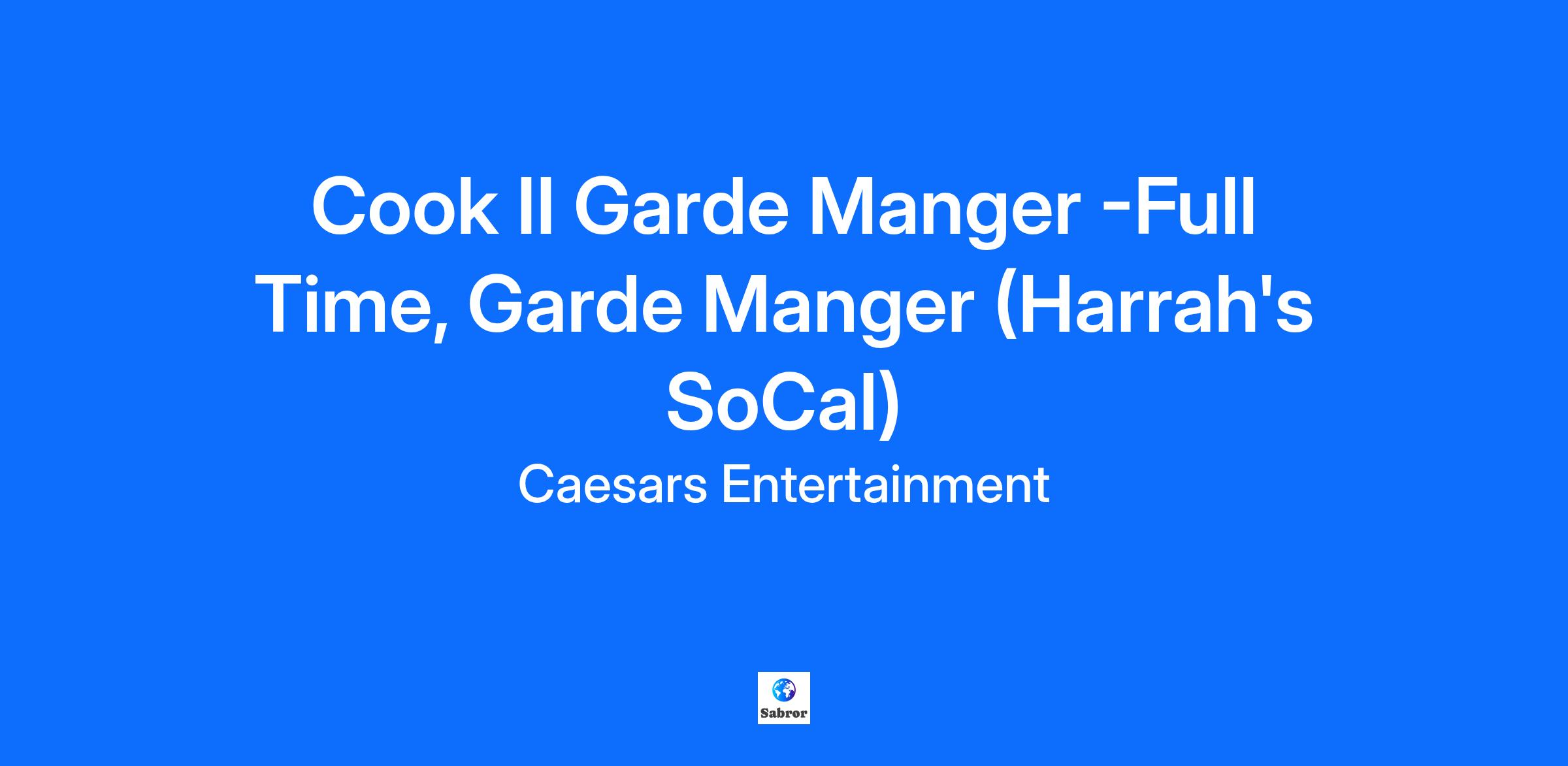 This role prepares all food orders in a timely manner and in accordance with Harrah’s standards and kitchen/outlets guide specifications. Will also maintain organization, cleanliness and sanitation of work area and equipment in accordance with local USPH standards.