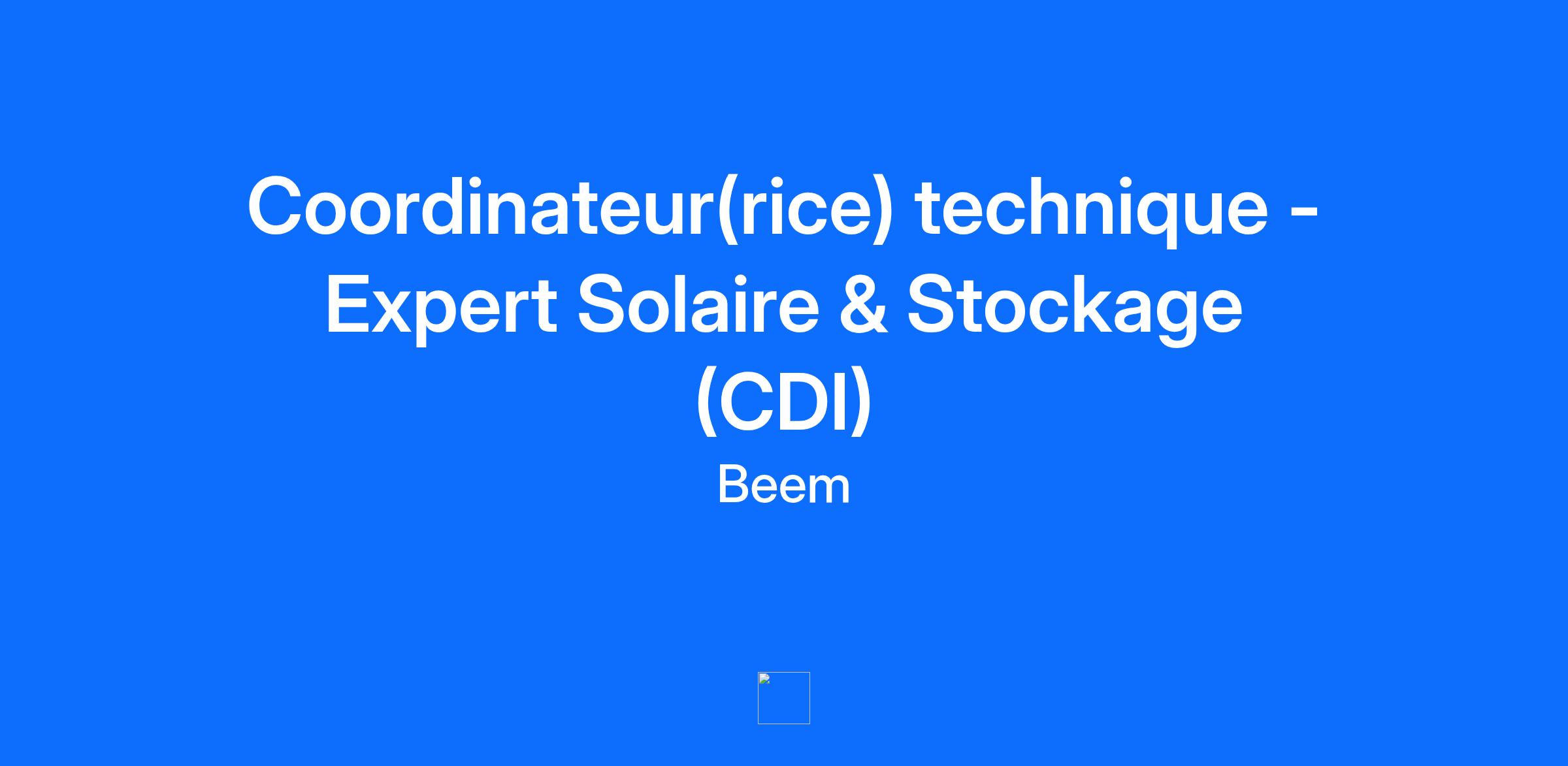 Tu t’intéresses au sujet de l’énergie, un des défis majeur du XXIe siècle ? Rejoins nous pour permettre aux particuliers de participer à la transition énergétique ! ⚡️ 👉🏻 Chez Beem [https://beemenergy.fr/], on accompagne les particuliers dans leur transition énergétique avec optimisme ! Pour ça, on crée un écosystème de produits hardware & software pour aider les consommateurs à mieux produire, consommer, et économiser leur énergie.🤜🏻 Pour cela, on propose une expérience utilisateur inégalée, pour générer des émotions positives et donner envie aux gens de prendre le contrôle de leur énergie.💚 En 2020, nous avons mis sur le marché un kit solaire plug & play esthétique, modulaire et connecté qui permet à n’importe qui de devenir en moins d’une heure, producteur et consommateur de sa propre énergie verte et locale. En 2024, ce n'est pas un mais bien 3 nouveaux produits qui font leur entrée pour aller chercher davantage d'autonomie : Beem on, Beem Roof et Beem Battery. Après une série A de 20 mio€ et avec une équipe talentueuse de +60 personnes, nous continuons à rechercher les meilleurs profils pour rejoindre la Beem Team et accélérer la transition énergétique des particuliers ! 🚀 🌞 ******* En tant que Coordinateur/rice Technique, vous agissez en tant que référent(e) technique de nos équipes et de nos installateurs partenaires. Votre mission : garantir que nos installations sont réussies du premier coup et accompagner le déploiement de nos nouveaux produits. Concrètement, vous : 1. Assurez la qualité des installations : objectif 80% des chantiers finalisés et opérationnels du 1er coup, sans repasse. 2. Accompagnez nos installateurs : vous les formez, vous les soutenez à distance le jour J en cas de blocage (dépannage technique rapide), et vous veillez à leur montée en compétence. 3. Pilotez le déploiement opérationnel des nouveaux produits (batteries, chargeurs VE, etc.) : validation de l’installabilité, préparation des checklists de visites techniques, mise à jour des guides et formation des installateurs. 4. Contribuez à l’amélioration continue : vous proposez des optimisations sur nos kits, procédures et matériels, et mettez à jour régulièrement la documentation technique \n Vous êtes le profil idéal si : * Solides connaissances en photovoltaïque et en électricité (dimensionnement, raccordement, dépannage). * Expérience dans l’installation ou l’accompagnement technique d’équipements électriques (PV, batteries, IRVE…). * Capacité à former et vulgariser auprès d’installateurs. * Réactivité et sens pratique pour trouver des solutions rapidement sur le terrain. * Aisance relationnelle pour collaborer avec installateurs, service client et supply chain. Ce qui ferait la différence : * Expérience terrain en tant qu’installateur, chef de chantier, technicien SAV ou formateur technique. * Connaissances en stockage d’énergie et bornes de recharge VE. * Fibre “amélioration continue” et envie de contribuer à des solutions simples et efficaces. \n Pourquoi nous rejoindre ? Rejoindre une équipe engagée qui agit concrètement pour la transition énergétique. Travailler sur des projets variés (PV, stockage, mobilité électrique) dans un secteur en plein essor. Avoir un impact direct sur la satisfaction des clients et la qualité de nos installations. Participer activement au lancement de nouveaux produits innovants. ****** Chez Beem, tu trouveras : - De l’ambition et de l'audace : c’est ce qui drive toute notre team pour faire bouger les lignes dans le secteur de l’énergie - Une mission qui suit le sens de l’histoire : participer à la démocratisation des énergies renouvelables et aider les gens à participer à la transition énergétique, c’est pas trop mal pour se lever le matin - Une Beem team qui envoie des paillettes : tu évolueras aux côtés d’une team ultra motivée qui suit deux principes : exigence et bienveillance, avec des mentors de renom ayant participé à des projets incroyables chez Google, Livi, Doctolib, iAdvize, etc... Mais aussi : 🧑⚕️ Une mutuelle prise en charge à 100% par Beem pour toi et tes ayants droits 🏝️ Des RTT en plus des congés payés 🥗 Une carte SWILE avec des tickets restaurants d’une valeur de 9,25 € par jour travaillé pris en charge à 60 % par Beem ; 🏡 Le droit au télétravail entre 1 et 2 jours par semaine en fonction des équipes ; 🧁 Le Cake day : ton jour d’anniversaire offert pour faire ce qu'il te plait en ce jour spécial; 🎮 Le Prête & Play : des objets du quotidien mis à disposition par Beem pour les Beemies ; 💰 Des tarifs privilégiés sur tous nos produits Beem pour toi et ton entourage ; 💸 Des primes de cooptation pour récompenser les Beemies qui nous aident à trouver nos futurs talents. Chez Beem, nous garantissons l’égalité des chances et la diversité, c’est pourquoi tous nos postes sont ouverts aux personnes en situation de handicap, seules les compétences et la motivation font la différence ! 💛