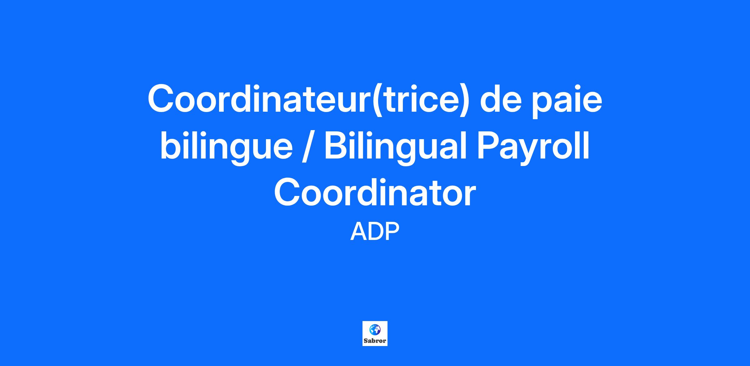 ADP recrute un(e) Coordinateur(trice) de paie bilingue * Désirez-vous faire progresser votre carrière dans un environnement stable et dynamique offrant de nombreuses opportunités d’avancement? * Êtes-vous avide de connaissances et avez-vous un intérêt pour les occasions de formation continue, de perfectionnement et de mentorat? * Est-ce important pour vous de faire partie d’une culture qui valorise l’équité et l’inclusion à travers un environnement accueillant les nouvelles perspectives et la diversité des points de vue? Si c’est le cas, cette opportunité pourrait vous intéresser. Poursuivez votre lecture et jugez par vous-même. En tant que Coordinateur(trice) de paie bilingue, vous aiderez nos clients à tirer parti des solutions commerciales exceptionnelles d'ADP, afin qu'ils puissent se concentrer sur ce qui compte le plus pour eux : la croissance de leur entreprise. Chaque jour, vous utiliserez de nombreux outils et ressources pour élaborer des réponses précises, complètes et amicales aux demandes des clients concernant les pratiques de paie et les considérations fiscales. La nature de votre travail quotidien ne changera pas - votre premier objectif est d'aider les clients. Cependant, chaque jour sera différent parce que les questions que vous recevrez varieront, tout comme les solutions que vous apporterez à chaque client. Les nouvelles questions que vous recevrez ne manqueront pas, ce qui rendra les choses intéressantes, et notre formation de premier ordre vous aidera à vous préparer à la réussite ! Afin de bien réussir dans le cadre de ces fonctions, vous devez être à l’aise à travailler dans un environnement axé sur les résultats. Vous aimez apprendre, vous savez vous adapter au changement et vous excellez dans un rythme de travail qui avance vite. Vous établissez des liens de confiance avec les clients de façon professionnelle. Au téléphone comme par écrit, votre style de communication est clair et engageant, de sorte que nos clients vous comprennent facilement. Nous avons aussi beaucoup de plaisir. Vous pouvez non seulement faire carrière avec nous, mais aussi nouer des amitiés durables dans une entreprise qui valorise l'inclusivité. Prêt à faire votre marque? Posez votre candidature maintenant! Pour en savoir plus sur les carrières au sein du service à la clientèle chez ADP, visitez le site : Emplois au service client chez ADP - Carrières au service client chez ADP - Assistance client ADP [https://jobs.adp.com/fr-CA/locations/canada/teams-roles/client-service/] CE QUE VOUS FEREZ: Responsabilités Ce à quoi ressemble une journée habituelle : * Participe au traitement de la paie, aux vérifications finales de la paie, aux remises aux tierces parties, aux calculs de la paie nette, aux RE et à diverses tâches postérieures à la paie. * Coordonne les données de paie entrantes avec l'équipe des partenaires de paie des services partagés (saisie, audit et importation dans WFN). * Évaluer et exécuter les demandes des clients (changements de programmation, projets spéciaux, initiatives d'amélioration continue, etc.) * Maintenir à jour la documentation des processus internes et les instructions de traitement de la paie des clients * Coordonne l'exécution des tâches de paie en temps réel avec ses pairs dans un environnement virtuel, en utilisant des outils de communication internes et des outils de suivi d'équipe. * Assurer la réconciliation des formulaires fiscaux de fin d'année et les tâches liées à la paie annuelle. POUR RÉUSSIR DANS LE CADRE DE CE RÔLE : Exigences obligatoires * Minimum de 2 ans d'expérience pertinente - Service à la clientèle et/ou Paie canadienne * Être à l'aise avec les logiciels professionnels. * Désir d'évoluer et de progresser dans le domaine de la paie * Organisé, capable d'effectuer plusieurs tâches à la fois * Curieux, autonome et capable d'apprendre rapidement. * Solides compétences en MS Office - (Word/Excel) requises * Compétences en matière de communication et d'analyse * Grande attention aux détails et à la précision du travail * Bilingue français et anglais (écrit et oral) *Candidats du Québec : Bien que le français soit exigé pour les postes basés au Québec, l'utilisation de l'anglais est également requise en raison de la nature globale de l'entreprise et de la nécessité d'interagir avec le siège social d'ADP et les sites internationaux. LES ÉLÉMENTS SUIVANTS CONSTITUENT DES ATOUTS : Exigences privilégiées * Connaissance des lois et réglementations en matière de paie * Avoir débuté ou acquis le titre de PCP * Expérience directe de la paie * Une connaissance pratique de la plateforme WFN est un plus. * Formation post-secondaire de préférence, ou expérience équivalente dans le domaine de l'administration, du service à la clientèle ou des ressources humaines. * Le candidat doit être disposé à travailler en vue d'obtenir la certification PCP de l'Institut national de la paie (NPI). VOUS AIMEREZ TRAVAILLER ICI PARCE QUE VOUS POURREZ : * Trouver l’équilibre dans votre vie. Ressources et flexibilité pour intégrer plus facilement le travail dans votre vie quotidienne. * Développer vos connaissances. Des possibilités de formation et de développement continus jumelés à un programme de remboursement des frais de scolarité. * Profiter d’un milieu de travail sain, où nous prenons soin les uns des autres. Nous soutenons votre bien-être, car des associé(e)s en bonne santé sont des associé(e)s heureux(ses). * Étendre vos activités à l’échelle mondiale. Avec des activités dans le monde entier, les nouvelles opportunités de carrière sont nombreuses et passionnantes. * Vous joindre à une entreprise engagée à redonner et générant une incidence durable et positive dans les communautés dans lesquelles nous travaillons et vivons. * Créer. Innover. Résoudre des problèmes. Façonnez l’avenir du travail avec des pers