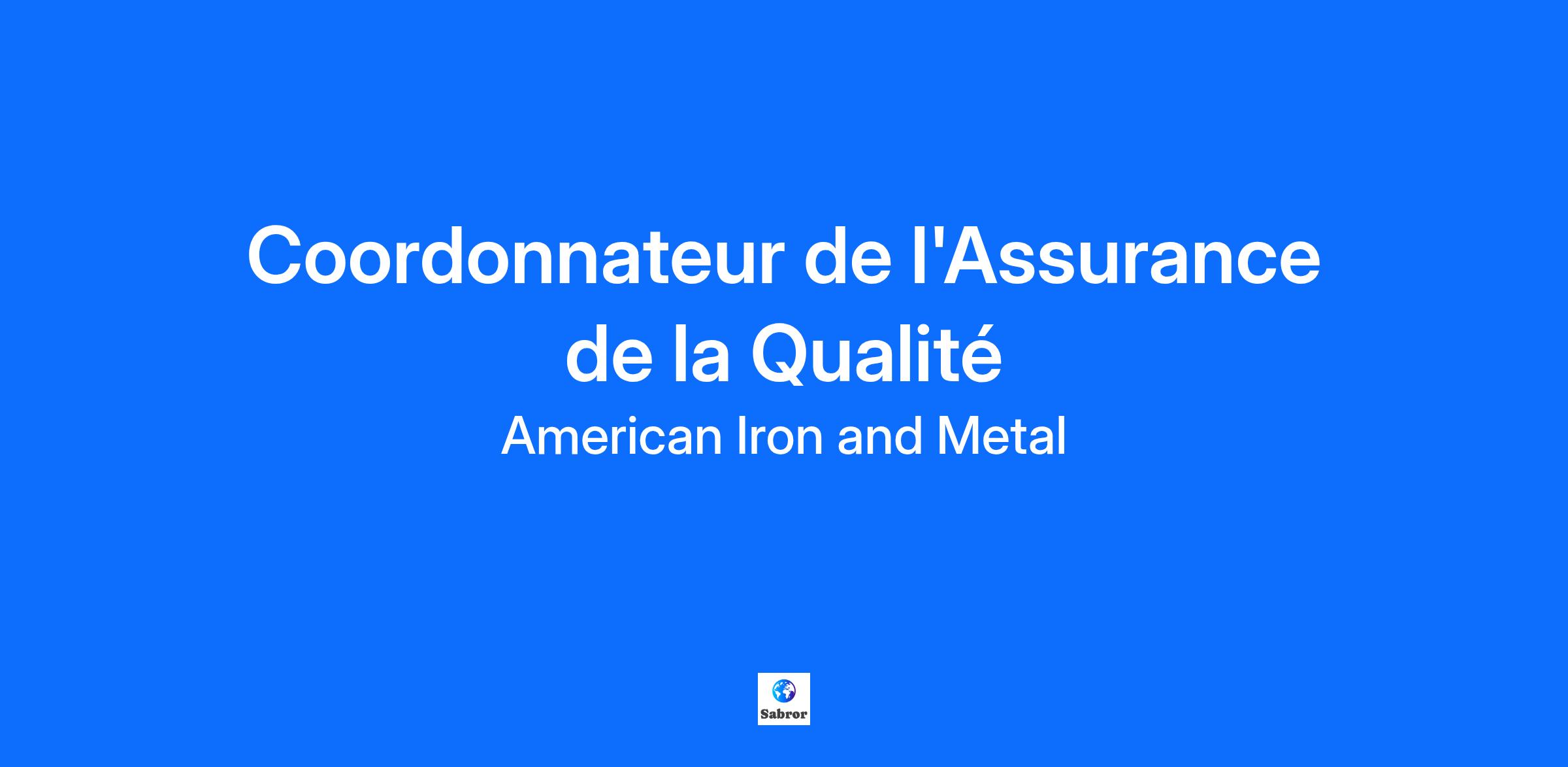 Description de l'entrepriseAmerican Iron & Metal (AIM) est une entreprise familiale et un leader mondial reconnu dans l'industrie du recyclage des métaux avec plus de 125 sites et 4000 employés dans le monde entier. Nous avons continué à prospérer au cours des huit dernières décennies grâce au dévouement de nos employés et à la confiance et au soutien continus de nos clients. Faites partie de l'équipe AIM, une équipe en pleine croissance avec un esprit d'entreprise qui a évolué au fil des ans pour devenir une entreprise prospère et aux multiples facettes avec des divisions commerciales qui incluent le recyclage des métaux, le déclassement et la démolition, la vente et le recyclage de pièces automobiles, la fabrication d'assemblages de soudure, le recyclage des déchets de construction et la production de produits industriels et miniers personnalisés. Nous sommes fiers de faire de bonnes choses pour l'environnement afin d'aider à créer un avenir plus vert et plus durable pour tous. C'est simple ; nous le faisons bien. Nous visons l'excellence. Description du posteCe dont vous êtes responsable :Relevant du directeur de la santé et de l'environnement et de l'environnement, le coordonnateur de l'assurance de la qualité est responsable de la mise en œuvre et du maintien de ISO9001 normes sur le processus et la documentation de l'assurance de la qualité.Soutien à la planification et à la documentation du nouvel équipement, des nouveaux processus et des procédures ministériellesParticiper à l'identification des risques pouvant affecter l'entrepriseCoordonner les audits internes et externes, en mettant en œuvre des plans d'actions correctives au besoin en collaboration avec les différentes équipesParticiper à l'analyse et à la cause profonde des non-conformités; Rapports sur les indicateurs internes et externes de la qualité et de l'environnementCollaboration avec le service de l'environnement pour construire un système de SGE dans d'autres installationsQualificationsPour se joindre à notre équipe :Vous connaissez ISO9001 et ISO14001Vous avez de l'expérience dans un milieu industriel dans un rôle similaireVous avez la capacité d'élaborer des mesures correctives et préventivesVous êtes responsable, indépendant, méticuleux, organiséVous avez des connaissances en Excel, Word, Access, Power PointVous êtes bilingue français/anglaisVous êtes disponible pour travailler ou voyager selon des horaires de travail flexibles, au besoinInformations supplémentairesCe que nous offrons! Un salaire, des vacances, des avantages sociaux et un programme de contrepartie de REER concurrentiels Programme annuel de bourses pour frais de scolarité de l’AIM jusqu’à 8 500 $ par personne à charge admissible Les outils et le soutien nécessaires pour réussir dans votre carrière et votre perfectionnement professionnel Un environnement de travail dynamique et enrichissant qui est aussi très amusant!