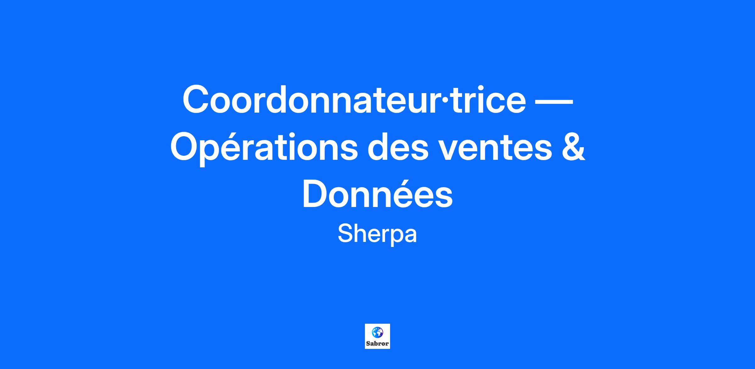 Coordonnateur·trice — Opérations des Ventes & Données