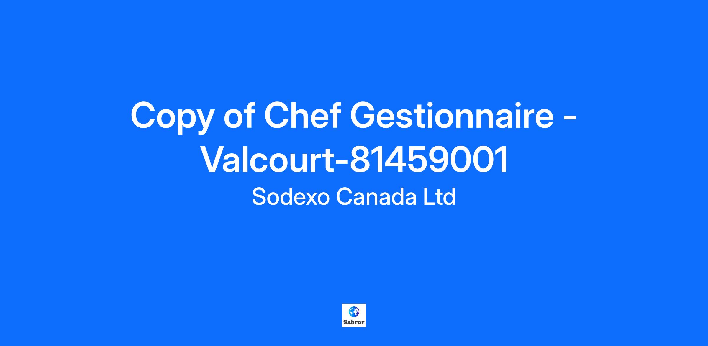 Description de l'entrepriseDéveloppez votre carrière dans une entreprise qui partage votre passion ! Notre Division Services aux Entreprises a une nouvelle opportunité passionnante pour rejoindre l'équipe de Sodexo en tant que prochain Chef Gestionnaire. Cette nouvelle opportunité est située à ValcourtSodexo est le leader mondial des Services de Qualité de Vie, un facteur essentiel de la performance individuelle et organisationnelle. Présents dans 67 pays, nous servons chaque jour plus de 100 millions de consommateurs grâce à notre combinaison unique de services. Nous sommes fiers de notre engagement à respecter les normes les plus strictes en matière d'équité et de diversité. En nous associant à la Fondation Stop Hunger, nous nous sommes engagés à assumer une responsabilité corporative pour lutter contre la faim dans le monde. Commencez votre voyage avec Sodexo, alors que nous continuons à nous développer à travers le Canada ! Description du posteResponsabilités À titre de Chef Gestionnaire dans l’un de nos comptes des Services aux Entreprises, vous serez responsable de la gestion de la cuisine et du service alimentaire, de la planification de la supervision et de la production, ainsi que de la coordination des employés pour la préparation et le service des repas et des produits alimentaires pour le client. Vous serez aussi responsable de tous les aspects reliés à la gestion du processus de gestion des aliments. Vous serez responsable de la gestion de la main-d’œuvre ainsi que l'application et le suivi des programmes en matière de santé et sécurité et d'hygiène et salubrité.Comment vous aurez un impact :Habiletés à analyser et interpréter les données financières reliées au coût des menus et des aliments, contrôle des achats et des inventairesBonne gestion des coûts (Food Cost et P&L), Leadership, Débrouillardise etc.Compétences efficaces en planification, organisation et gestion du tempsBonne connaissance des programmes de Santé et Sécurité et Hygiène et salubrité Habilité à travailler dans un milieu multiculturelHabilité à travailler sous pressionCompétences évidentes en communication écrite et verbale (Français et Anglais).Expérience évidente en gestion des employés. QualificationsCe dont vous avez besoin pour réussir : Diplôme de l'ITHQ ou expérience équivalente dans unité a haut volumeCertificat de qualification de Chef (sceau rouge), un atout3-5 ans ou plus d’expérience reliée à la gestion de cuisineBonne connaissance informatique un atoutGestion des commandes et des inventairesGestion des horaires de travail Informations supplémentairesCe que Sodexo peut vous offrir : Un salaire horaire entre 28$ et 30 $/hDu lundi au vendredi de 6h-14h30Pas de soir ni de fin de semaineUn environnement de travail flexible avec des vacances en été et pour la période de Noel Une rémunération compétitive et des avantages sociaux de qualité Programmes de formation et de développement D'innombrables possibilités de croissance Responsabilité des entreprises et durabilité 2021 Meilleur Employeur au niveau de la Diversité au Canada2021 Employeur Éco Responsable au Canada2021 Meilleur Employeur de la Région Hamilton Niagara2021 Campagne et Fondation des Droits Humaines – Meilleur endroit où travailler pour les communautés LGBTQ Égalité2021 Meilleur Employeur au Canada pour les jeunes diplômés The Career DirectorySodexo s’engage pour l’Équité et la Diversité en matière d’emploi. Nous ne discriminons contre aucun employé ou demandeur d'emploi en raison de l’origine nationale, la race, la religion, l’ethnie, l’âge, le handicap ou l’invalidité, le sexe, l'orientation sexuelle, l'identité sexuelle ou de genre, le statut de vétéran ou de toute autre classe protégée au niveau fédéral, provincial ou local. Nous invitons et encourageons les candidatures de personnes avec invalidités. Des accommodements sont disponibles sur demande pour les candidats qui participent à tous les aspects du processus de sélection. Nous employons le masculin afin d'alléger le texte.Nous vous remercions de l'intérêt que vous portez à Sodexo. Veuillez noter que seuls les candidats retenus seront contactés. Suivez-nous sur les médias sociaux pour voir qui nous sommes !Instagram: @SodexoCanadaCareers Twitter: @SodexoJobsCA LinkedIn: Sodexo Canada Careers Facebook: Sodexo CA JobsSodexoSJG