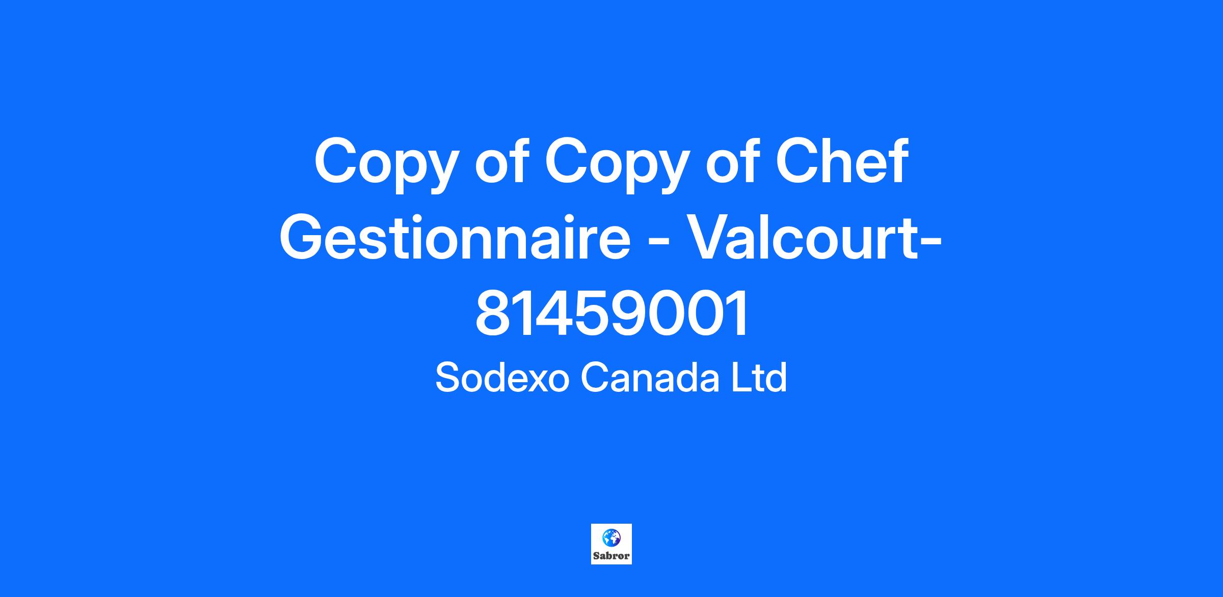 Description de l'entrepriseDéveloppez votre carrière dans une entreprise qui partage votre passion ! Notre Division Services aux Entreprises a une nouvelle opportunité passionnante pour rejoindre l'équipe de Sodexo en tant que prochain Chef Gestionnaire. Cette nouvelle opportunité est située à ValcourtSodexo est le leader mondial des Services de Qualité de Vie, un facteur essentiel de la performance individuelle et organisationnelle. Présents dans 67 pays, nous servons chaque jour plus de 100 millions de consommateurs grâce à notre combinaison unique de services. Nous sommes fiers de notre engagement à respecter les normes les plus strictes en matière d'équité et de diversité. En nous associant à la Fondation Stop Hunger, nous nous sommes engagés à assumer une responsabilité corporative pour lutter contre la faim dans le monde. Commencez votre voyage avec Sodexo, alors que nous continuons à nous développer à travers le Canada ! Description du posteResponsabilités À titre de Chef Gestionnaire dans l’un de nos comptes des Services aux Entreprises, vous serez responsable de la gestion de la cuisine et du service alimentaire, de la planification de la supervision et de la production, ainsi que de la coordination des employés pour la préparation et le service des repas et des produits alimentaires pour le client. Vous serez aussi responsable de tous les aspects reliés à la gestion du processus de gestion des aliments. Vous serez responsable de la gestion de la main-d’œuvre ainsi que l'application et le suivi des programmes en matière de santé et sécurité et d'hygiène et salubrité.Comment vous aurez un impact :Habiletés à analyser et interpréter les données financières reliées au coût des menus et des aliments, contrôle des achats et des inventairesBonne gestion des coûts (Food Cost et P&L), Leadership, Débrouillardise etc.Compétences efficaces en planification, organisation et gestion du tempsBonne connaissance des programmes de Santé et Sécurité et Hygiène et salubrité Habilité à travailler dans un milieu multiculturelHabilité à travailler sous pressionCompétences évidentes en communication écrite et verbale (Français et Anglais).Expérience évidente en gestion des employés. QualificationsCe dont vous avez besoin pour réussir : Diplôme de l'ITHQ ou expérience équivalente dans unité a haut volumeCertificat de qualification de Chef (sceau rouge), un atout3-5 ans ou plus d’expérience reliée à la gestion de cuisineBonne connaissance informatique un atoutGestion des commandes et des inventairesGestion des horaires de travail Informations supplémentairesCe que Sodexo peut vous offrir : Un salaire horaire entre 28$ et 30 $/hDu lundi au vendredi de 6h-14h30Pas de soir ni de fin de semaineUn environnement de travail flexible avec des vacances en été et pour la période de Noel Une rémunération compétitive et des avantages sociaux de qualité Programmes de formation et de développement D'innombrables possibilités de croissance Responsabilité des entreprises et durabilité 2021 Meilleur Employeur au niveau de la Diversité au Canada2021 Employeur Éco Responsable au Canada2021 Meilleur Employeur de la Région Hamilton Niagara2021 Campagne et Fondation des Droits Humaines – Meilleur endroit où travailler pour les communautés LGBTQ Égalité2021 Meilleur Employeur au Canada pour les jeunes diplômés The Career DirectorySodexo s’engage pour l’Équité et la Diversité en matière d’emploi. Nous ne discriminons contre aucun employé ou demandeur d'emploi en raison de l’origine nationale, la race, la religion, l’ethnie, l’âge, le handicap ou l’invalidité, le sexe, l'orientation sexuelle, l'identité sexuelle ou de genre, le statut de vétéran ou de toute autre classe protégée au niveau fédéral, provincial ou local. Nous invitons et encourageons les candidatures de personnes avec invalidités. Des accommodements sont disponibles sur demande pour les candidats qui participent à tous les aspects du processus de sélection. Nous employons le masculin afin d'alléger le texte.Nous vous remercions de l'intérêt que vous portez à Sodexo. Veuillez noter que seuls les candidats retenus seront contactés. Suivez-nous sur les médias sociaux pour voir qui nous sommes !Instagram: @SodexoCanadaCareers Twitter: @SodexoJobsCA LinkedIn: Sodexo Canada Careers Facebook: Sodexo CA JobsSodexoSJG