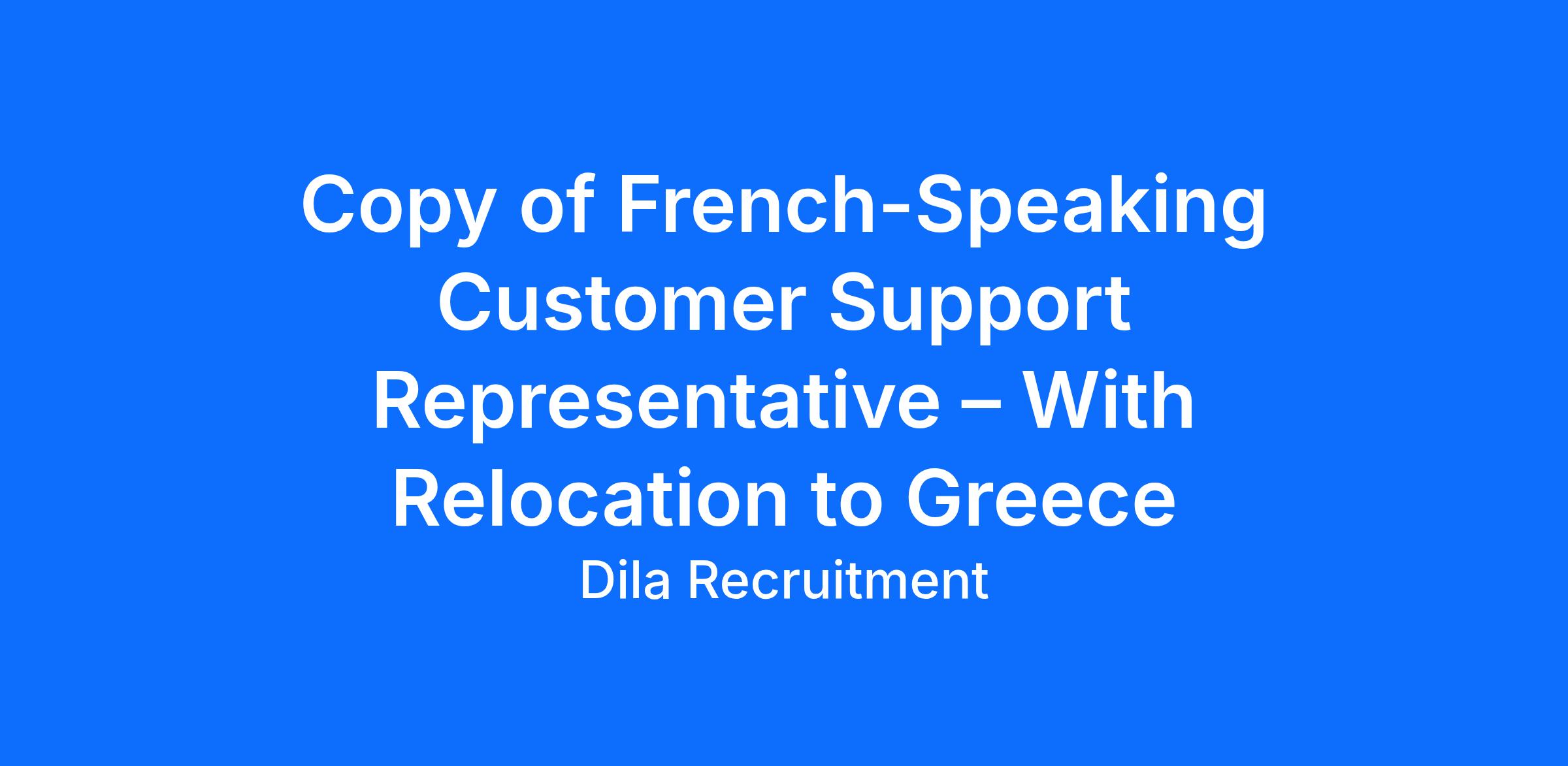 Copy of French-Speaking Customer Support Representative – With Relocation to Greece