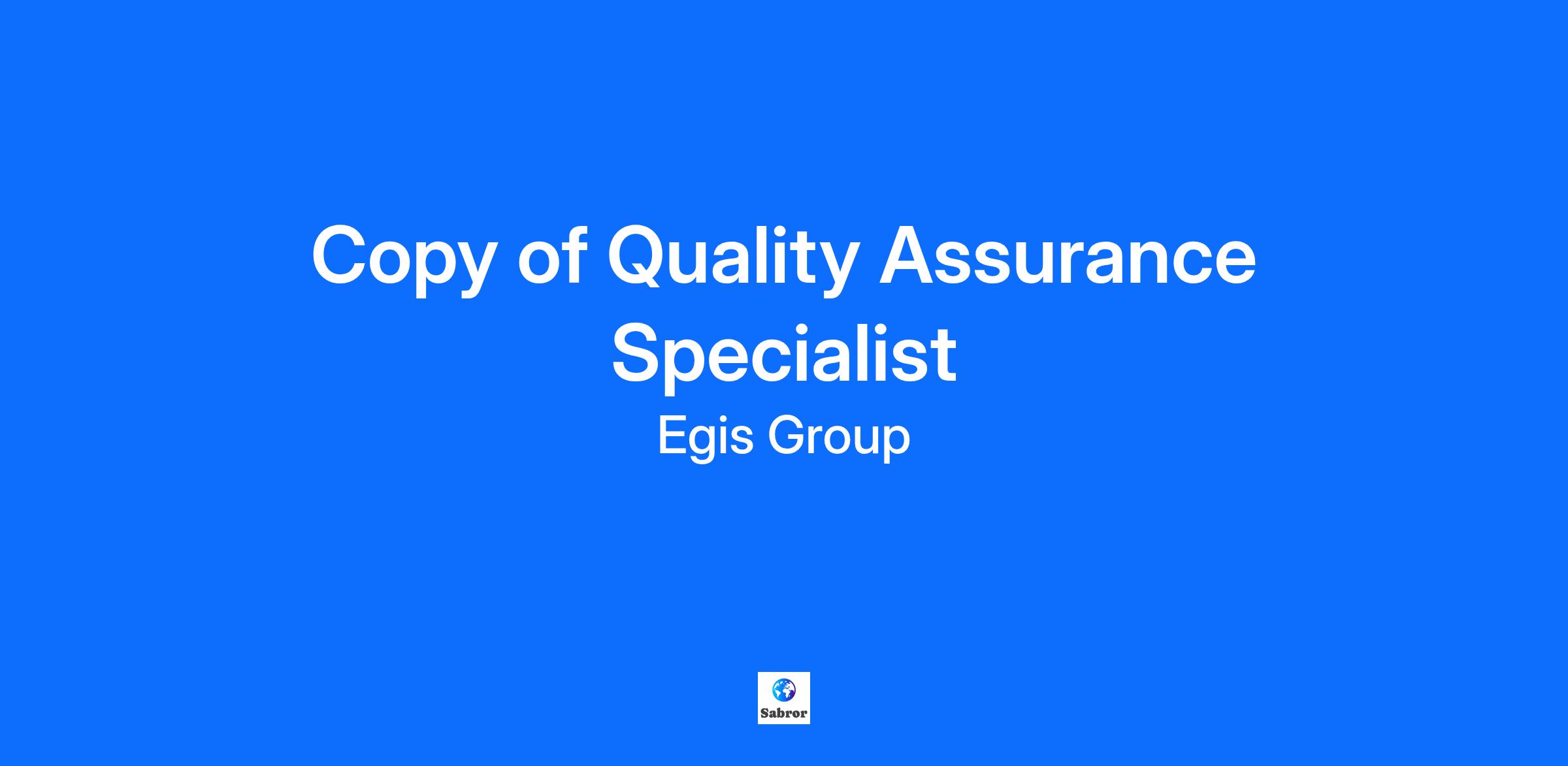 Copy of Quality Assurance Specialist