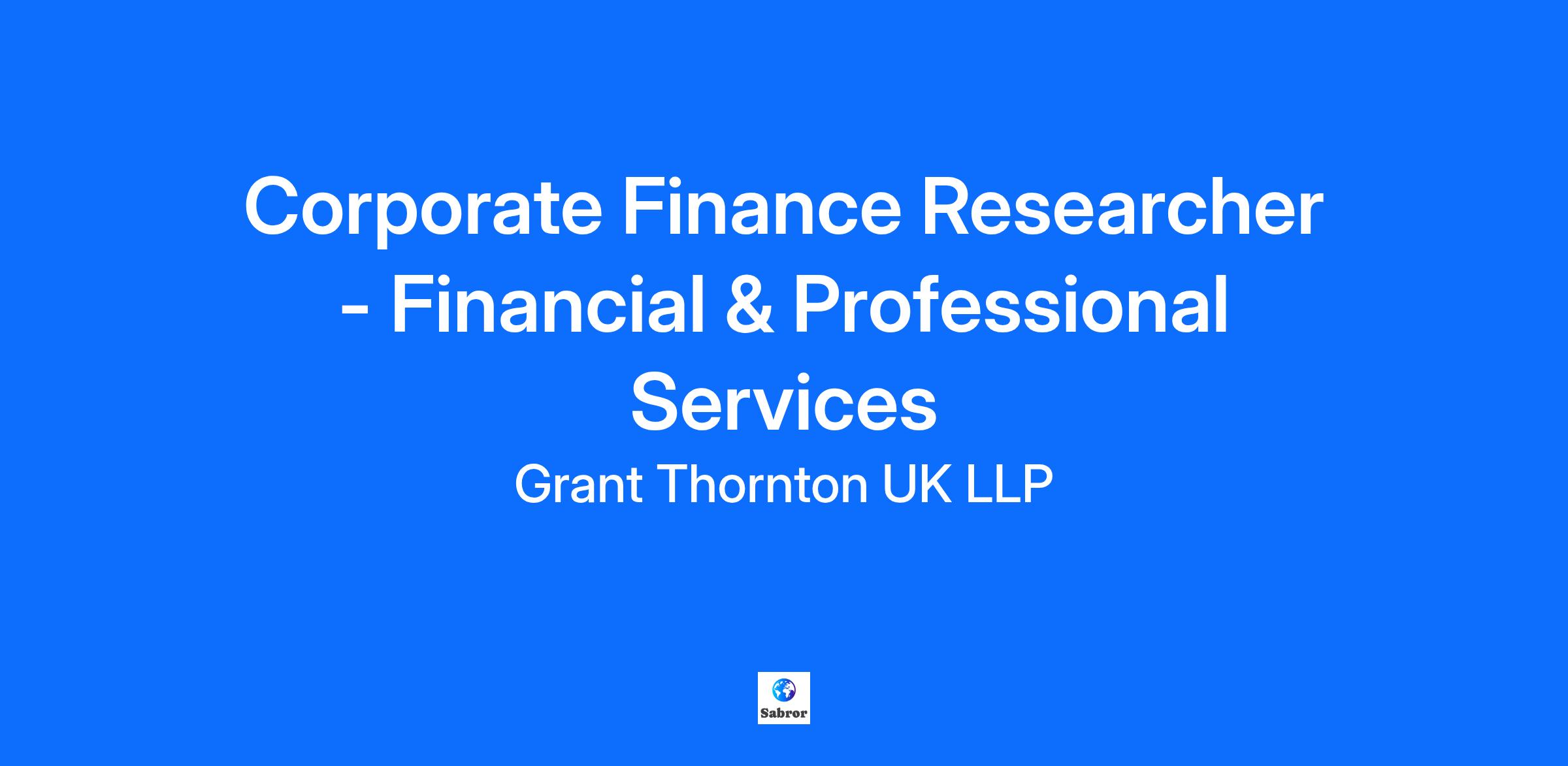 Alternatively, Grant Thornton At Grant Thornton we do things differently - looking to the future, driving ambitious growth and pioneering positive change in our industry. Providing audit, tax and advisory services, we empower clients through strategic insight, curiosity, and genuine partnership. And we empower our people with real opportunity, an inclusive culture and work life balance. A true alternative. With over 5,000 people in the UK, and a presence in 150 global markets, we're on an ambitious journey, from great to exceptional, and we need the best people to help us achieve our potential. And with that comes the opportunity to help redefine what our industry looks like, and what you want from your career. Job Description: NEW GROUND WON’T BREAK ITSELF. Every day our teams help people in businesses and communities to do what is right and achieve their goals. We believe we’re best positioned to make a meaningful impact on the economy. Every day, we provide a diverse range of organisations with the kind of business and financial advice it takes to do this. Our ideas and insights empower our clients to make big decisions about the future and unlock sustainable growth. With a relentless focus on quality and integrity, we help businesses, communities, and our people flourish. We’re happy to talk flexible working and consider reduced hours and job shares, we’ll support you to balance your work and life. This is a fantastic opportunity for a driven individual with an experienced and diverse background in corporate research, market research or business development. You will be working in our corporate finance team providing support for our financial & professional services (primarily insurance, wealth, accounting & legal services and specialty finance) focused transaction execution team. You will play a pivotal role in the delivery of client work providing research for pitches and proposals. The Financial & Professional Services Researcher is a key role in the corporate finance sector team, providing direction and drive. Specific responsibilities include providing support and high-quality analysis for pitches, proposals and the generation of new work, identifying and acting on commercial opportunities, overseeing thought leadership, maintaining sector knowledge management and raising the profile of the team both internally and externally. You will help the team win new business through value-added research and sector insight, with a particular focus on managing our internal databases of participants operating within our focus sub-sectors and researching and consolidating our analysis of transactions in these sub-sectors. *please note that this is not a transaction execution role, but a key operational and analytical role working closely with the deal execution team.* A look into the role As a Corporate Finance Researcher within our Corporate Finance team you will: Be part of a sector researcher team of seven (with your colleagues covering healthcare, business support services, consumer, industrials and TMT) and reporting into the head sector research. Work closely with your team of financial & professional services sector focused corporate financiers. Key to this role is the ability to work closely with your sector team and pivotally, with the Partner who heads up the sector. To be effective in this role you will need to influence both Partners and senior team members as well as your peers. Develop a strong knowledge of the financial & professional services sector, and also have an understanding of the importance of knowledge management, business development, marketing and events. You will need to be able to pull all these strands together for the sector team in collaboration with your marketing and business development colleagues. You will work with the Partner sector lead to set the strategy for the sector. As such we will be looking for strong communication and organisational skills and an ability to get the job done. This is an opportunity to help drive the profile and strategy of the sector team, thus directly contributing to the growth and success of the team. Knowing you're right for us Joining us as a Researcher, the minimum criteria you’ll need is to have: Educated to degree level or equivalent work experience Experience gained within a corporate finance, mergers & acquisitions or similar environment Good business analysis experience Excellent commercial awareness and ability to be involved in client-facing activities It would be great if you had some of the following skills, but don’t worry if you don’t tick every box, we’ll help you develop along the way: Have a keen interest in the financial & professional services sector as a whole, or one of the sub-sectors on which we focus Have tenacity, resilience and a capability to drive projects through to completion Strong intrapersonal skills Existing knowledge and experience of research tools (Bureau Van Dijk, Mergermarket, CapIQ,) Knowing we’re right for you Embracing uniqueness, the culture at Grant Thornton thrives on the contributions of all our people, we never settle for what is easy, we look beyond to deliver the right thing, for everyone. Building an inclusive culture, where we value difference and respect our colleagues helps our people to perform at the best of their ability and realise their potential. Our open and accessible culture means you’ll interact with leaders who are interested in you and everything you bring to our firm. The things that set you apart, we value them. That’s why we give you the freedom to bring your whole self to work and pursue your passions inside and outside of work. Beyond the job Life is more than work. The things you do, and the people you’re with outside of work matter, that’s why we’re happy to look at flexible working options for all our roles, and we’ll always do our best to keep your work and life in balance. The impact you can make here will go far beyond yo