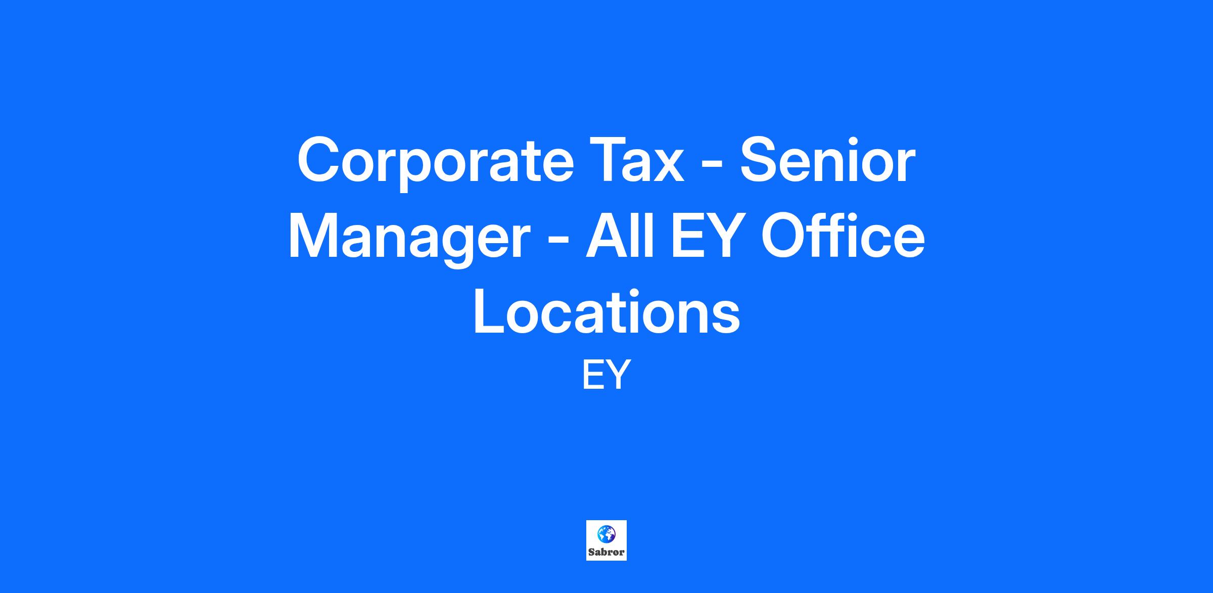 Corporate Tax – Senior Manager Our Corporate Tax specialists within the EY Corporate Tax team work with a wide range of businesses (including OMBs, multi-generational family businesses, PE backed, global corporations and AIM listed) at various stages of the business life cycle (i.e. from start up right through to established multinational). Our work is a combination of both tax advisory and compliance, including tax advice in respect of matters such as M&A structuring, exit planning, group re-organisations, expansion into overseas territories and much more. Most importantly, you will be responsible for building and maintaining trusted relationships with clients and ensuring in your role as their day-to-day contact that they have access to the breadth of services available to them at EY. The Opportunity This is an exciting opportunity for a motivated and ambitious individual to join EY’s Corporate Tax team nationwide. The successful candidate will have an opportunity to work with our excellent existing clients, providing a great opportunity to build and expand their network and be instrumental in winning new business. The role offers the opportunity to work on some of the most exciting clients in the market to help support them as they navigate an ever increasingly complex business and tax environment. Your key responsibilities Management of the successful delivery of technically complex and demanding consulting projects for their clients, ensuring technical excellence and practical / business driven approach taken Build and maintain relationships with clients Proactive business development to win new work Provision of development support to junior members of the team through effective supervision, coaching and mentoring Contribution to people initiatives, including retaining and training our team Skills and attributes for success Strong tax technical skills – corporate tax specialist Strong client relationship management skills with ability to develop quality outputs Client centric mindset Strategically and commercially aware Excellent communicator in a range of situations both written and oral Negotiation skills, able to sustain opinion and handle challenges Business development skills, able to identify and convert opportunities to sell work Effective time management, ability to remain calm when under pressure to meet deadlines Good knowledge of advising a range of companies including Owner Managed, Family Owned and PE backed. To qualify for the role you must have ICAS / ACA / CTA / Tax Inspectors with full Technical Training course / Law qualification / Tax specialist qualification / or breadth of knowledge equivalent to a Tax specialist qualification Strong tax technical skills – corporate tax specialist Business development skills, able to identify and convert opportunities to sell work Experience of coaching and developing more junior staff Ideally you’ll also have Project management skills, plan and prioritize work, meet deadlines, monitor own budget Ability to solve problems creatively and pragmatically Knowledge/appreciation of personal taxes to the extent shareholder/management team involvement in corporate tax structuring What we look for Team player; ability to integrate with new teams quickly Outgoing with good relationship skills The ability to deliver quality output in a timely and efficient manner What working at EY offersWe offer a competitive remuneration package where you’ll be rewarded for your individual and team performance. Our comprehensive Total Rewards package includes support for flexible working and career development, and with FlexEY you can select benefits that suit your needs, covering holidays, health and well-being, insurance, savings and a wide range of discounts, offers and promotions. Plus, we offer: Support, coaching and feedback from some of the most engaging colleagues around Opportunities to develop new skills and progress your career The freedom and flexibility to handle your role in a way that’s right for you What working at EY offers We offer a competitive remuneration package where you’ll be rewarded for your individual and team performance. Our comprehensive Total Rewards package includes support for flexible working and career development, and with FlexEY you can select benefits that suit your needs, covering holidays, health and well-being, insurance, savings and a wide range of discounts, offers and promotions. Plus, we offer: Support and coaching from some of the most engaging colleagues around Opportunities to develop new skills and progress your career The freedom and flexibility to handle your role in a way that’s right for you EY is committed to being an inclusive employer and we are happy to consider flexible working arrangements. We strive to achieve the right balance for our people, enabling us to deliver excellent client service whilst allowing you to build your career without sacrificing your personal priorities. While our client-facing professionals can be required to travel regularly, and at times be based at client sites, our flexible working arrangements can help you to achieve a lifestyle balance. About EY As a global leader in assurance, tax, transaction and advisory services, we’re using the finance products, expertise and systems we’ve developed to build a better working world. That starts with a culture that believes in giving you the training, opportunities and creative freedom to make things better. Whenever you join, however long you stay, the exceptional EY experience lasts a lifetime. Join us in building a better working world. Apply now.