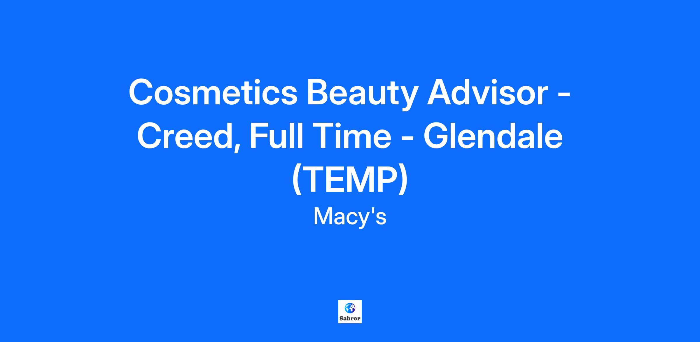 Cosmetics Beauty Advisor - Creed, Full Time - Glendale (TEMP)