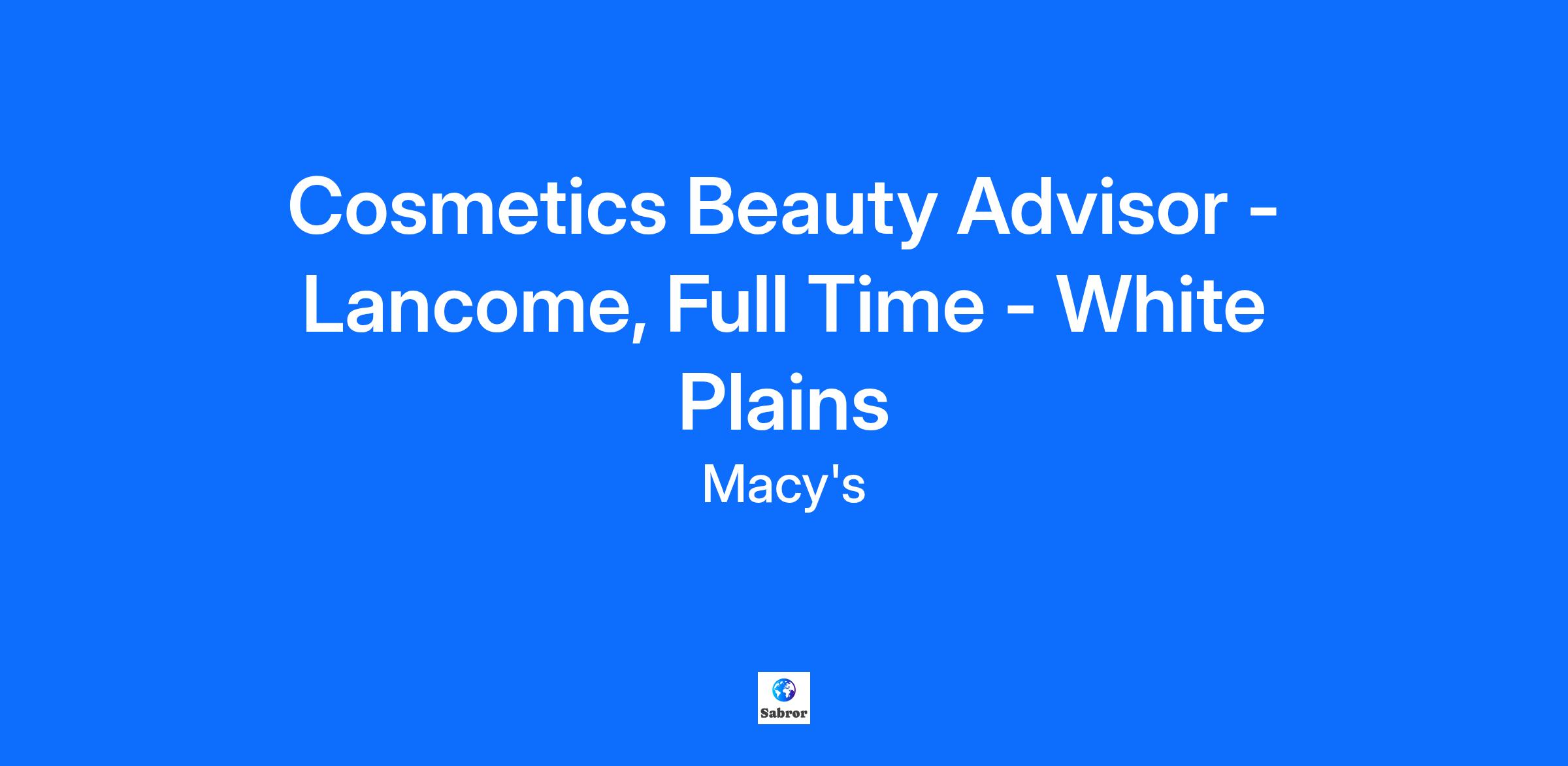 Cosmetics Beauty Advisor - Lancome, Full Time - White Plains