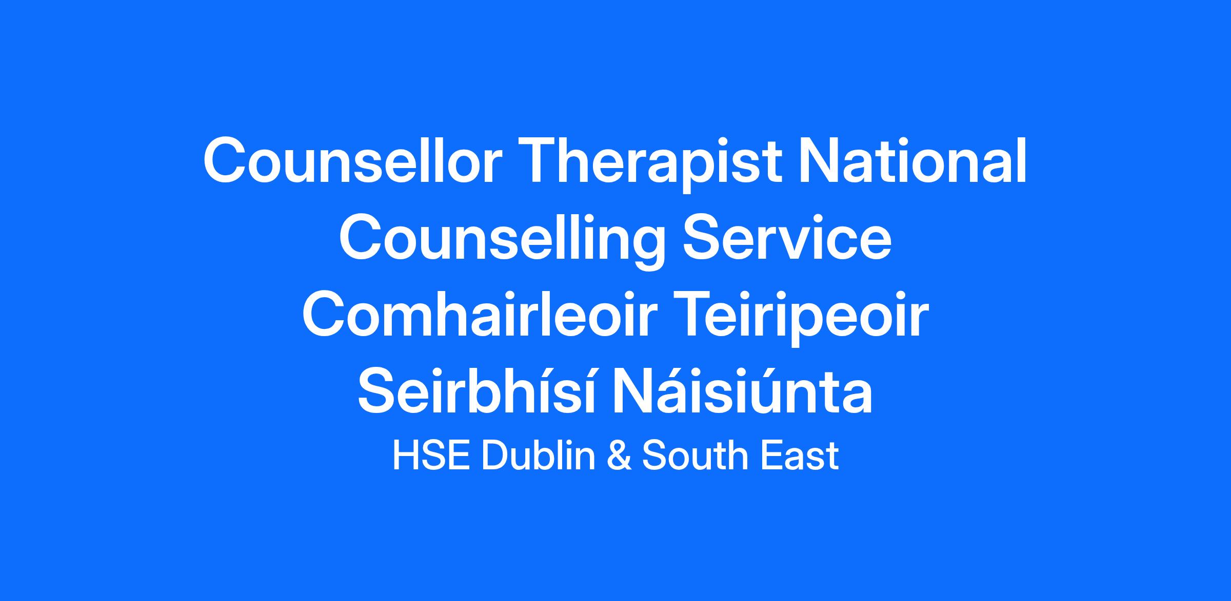 A panel may be formed for the Dublin and South East Health Region as a result of this campaign for Counsellor/Therapist (National Counselling Service) from which current and future permanent and specified purpose vacancies of full or part-time duration may be filled.