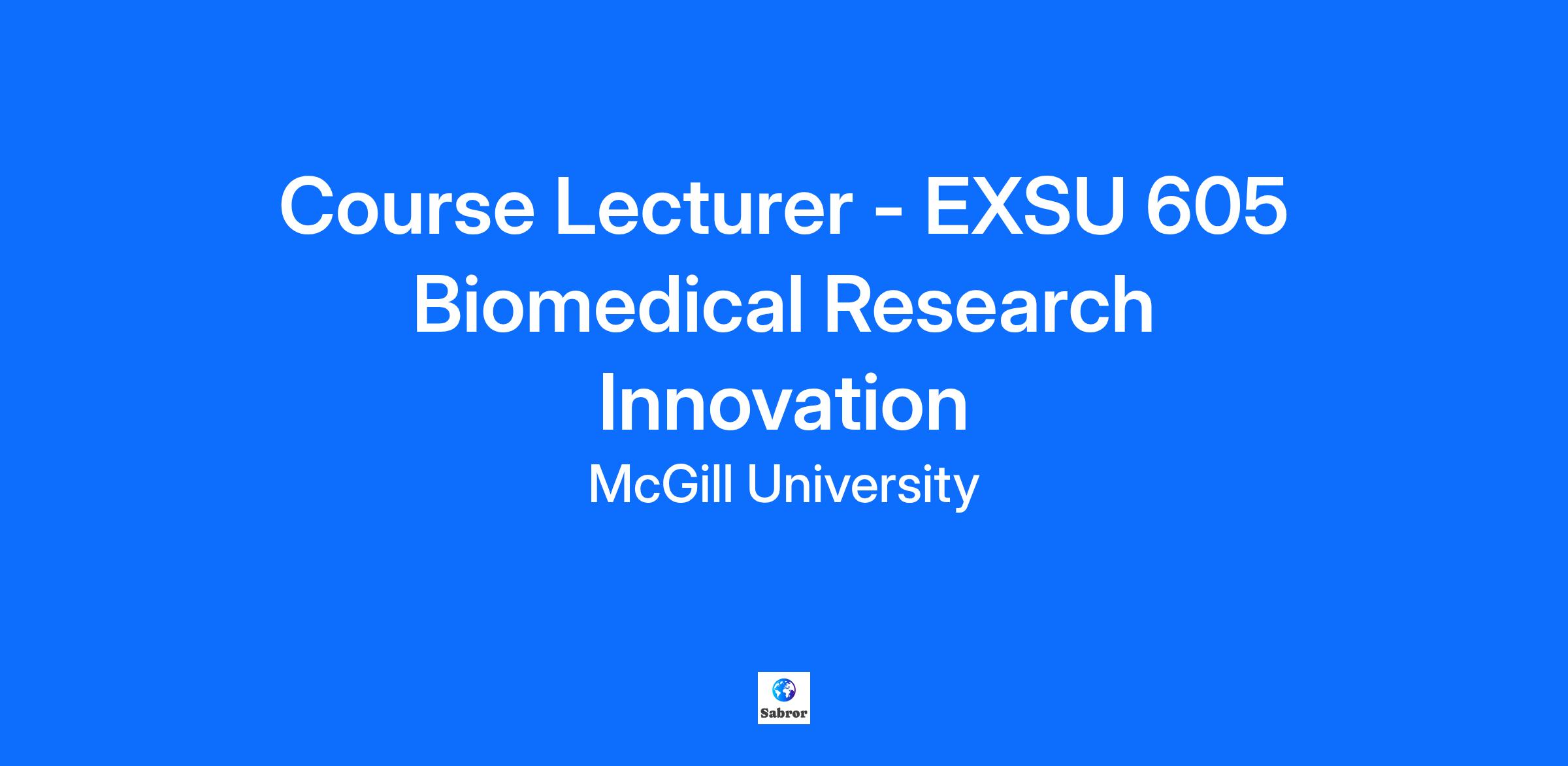 Please refer to the How to Apply for a Job (for External Candidates) job aid for instructions on how to apply. If you are an active McGill employee (ie: currently in an active contract or position at McGill University), do not apply through this Career Site. Login to your McGill Workday account and apply to this posting using the Find Jobs report (type Find Jobs in the search bar). The Department of Surgery, Division of Surgical and Interventional Sciences is seeking a Course Lecturer to teach the 2026 Winter semester: Biomedical Research Innovation. Course Title and Course Number: EXSU 605 - Biomedical Research Innovation Teaching Qualification Requirements: PhD Chemical and Biomedical Engineering Experience: Experience conducting and publishing research in biosensor, diagnostic, biomaterials, in vitro and in vivo hands on, but also expertise in regenerative medicine with application to Medical/Clinical problem. History of consistently publishing manuscripts relevant to the field in high quality peer reviewed journals. An asset would be experience in undertaking research collaborations with medical specialists such as surgeons, clinicians, pathologists, etc. Number of credits: 3 Compensation: $11,479 Hiring Unit: Surgery Course Title: Biomedical Research Innovation Subject Code: EXSU 605 001 Location: online Schedule: Mondays - (3:00pm - 5:00pm) Deadline to Apply: 2025-10-14 McGill University hires on the basis of merit and is strongly committed to equity and diversity within its community. We welcome applications from racialized persons/visible minorities, women, Indigenous persons, persons with disabilities, ethnic minorities, and persons of minority sexual orientations and gender identities, as well as from all qualified candidates with the skills and knowledge to productively engage with diverse communities. McGill implements an employment equity program and encourages members of designated groups to self-identify. Persons with disabilities who anticipate needing accommodations for any part of the application process may contact, in confidence, accessibilityrequest.hr@mcgill.ca. Located in one of the world’s great multicultural and multilingual cities, McGill University is internationally recognized for its excellence as a leading institution of higher education and research. For nearly 200 years, through the work of dedicated people, McGill has been breaking ground in diverse fields and contributing solutions to some of the world’s most significant issues. McGillians are proud to be part of a community that is both global and local, inspired by challenge and committed to shaping a better future. McGill received a Platinum STARS rating in sustainability, is among Canada’s greenest employers, and is a top Montreal Employer. Grandescunt Aucta Labore. By work, all things increase and grow. Find a sense of purpose. Develop your future. Join us today.