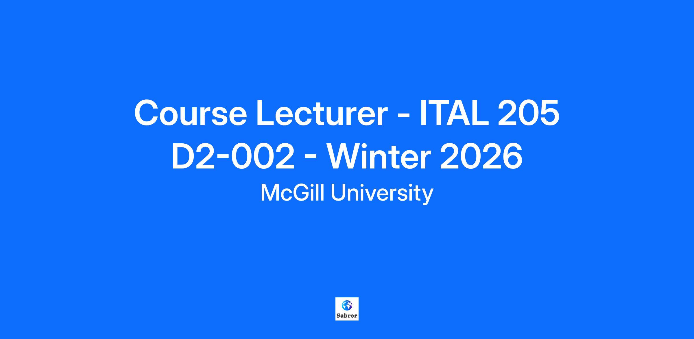 Please refer to the How to Apply for a Job (for External Candidates) job aid for instructions on how to apply. If you are an active McGill employee (ie: currently in an active contract or position at McGill University), do not apply through this Career Site. Login to your McGill Workday account and apply to this posting using the Find Jobs report (type Find Jobs in the search bar). Department of Languages, Literatures, and Cultures Winter 2026 term Course: ITAL 205 D2-002 Italian for Beginners (3 credits) Teaching Schedule: Monday, Wednesday, Friday: 4:35 pm - 5:25 pm Course start and end dates: January 5, 2026 to April 14, 2026 Location: 680 Sherbrooke 451 Salary: $11 479 Teaching Qualification Requirements: M.A. or Ph.D. in Italian or registered in the Italian Studies graduate program at McGill. Native or near native fluency in Italian required. Experience: A minimum of two semesters as instructor of a course at a similar level or to be a graduate student in Italian Studies in the Department of Languages, Literatures, and Cultures at McGill University. Course lecturers must demonstrate a familiarity with the course materials used in Italian Studies language courses. A Course Lecturer assignment includes all or part of the following teaching activities: a) preparation of the Course and Course plan; b) delivery of the Course; c) evaluation of students; d) submitting to the University a report on student attendance and student grades; e) supervision of Teaching Assistants or any other teaching support staff; f) upon request, review of their students’ grades; g) meeting with students, being available to answer questions and give advice concerning Course content and requirements; Employees shall perform their duties in compliance with the Pedagogical Regulation and as specified in the administrative directives of the Hiring Unit. An Employee shall use appropriate pedagogical methods and material. Department of Languages, Literatures, and Cultures: Instructors of language courses must adhere to the guidelines set by the Language Program Directors (LPDs). In assuming a language position, the successful applicant agrees to the guidelines set by LPDs and to (1) teach the scheduled classes; (2) use the prescribed course materials and follow the class plan and test schedule established in the syllabus; 3)collaborate with colleagues to prepare in-class tests, quizzes, exercises, and final exams; (4) invigilate any scheduled in-class exams, final exams, and oral-exams; and (5) attend scheduled meetings with the Language Program Director. Applicants must submit a letter of introduction, an updated CV, course evaluations for all courses taught in the past two years, and a teaching philosophy statement (one page). Additional Information: This is the second half of a 6-credit course that will be taught in the Winter 2026 academic term at 3 course hour credits. Application deadline: October 14, 2025 McGill University is an English-language University where most teaching and research activities are conducted in the English language, thereby requiring English communication both verbally and in writing. Hiring Unit: Languages, Literatures, and Cultures Course Title: Italian for Beginners Subject Code: ITAL 205D2 002 Location: 680 Sherbrooke 451 Schedule: Monday, Wednesday, Friday, 4:35 pm - 5:25 pm Deadline to Apply: 2025-10-14 McGill University hires on the basis of merit and is strongly committed to equity and diversity within its community. We welcome applications from racialized persons/visible minorities, women, Indigenous persons, persons with disabilities, ethnic minorities, and persons of minority sexual orientations and gender identities, as well as from all qualified candidates with the skills and knowledge to productively engage with diverse communities. McGill implements an employment equity program and encourages members of designated groups to self-identify. Persons with disabilities who anticipate needing accommodations for any part of the application process may contact, in confidence, accessibilityrequest.hr@mcgill.ca. Located in one of the world’s great multicultural and multilingual cities, McGill University is internationally recognized for its excellence as a leading institution of higher education and research. For nearly 200 years, through the work of dedicated people, McGill has been breaking ground in diverse fields and contributing solutions to some of the world’s most significant issues. McGillians are proud to be part of a community that is both global and local, inspired by challenge and committed to shaping a better future. McGill received a Platinum STARS rating in sustainability, is among Canada’s greenest employers, and is a top Montreal Employer. Grandescunt Aucta Labore. By work, all things increase and grow. Find a sense of purpose. Develop your future. Join us today.