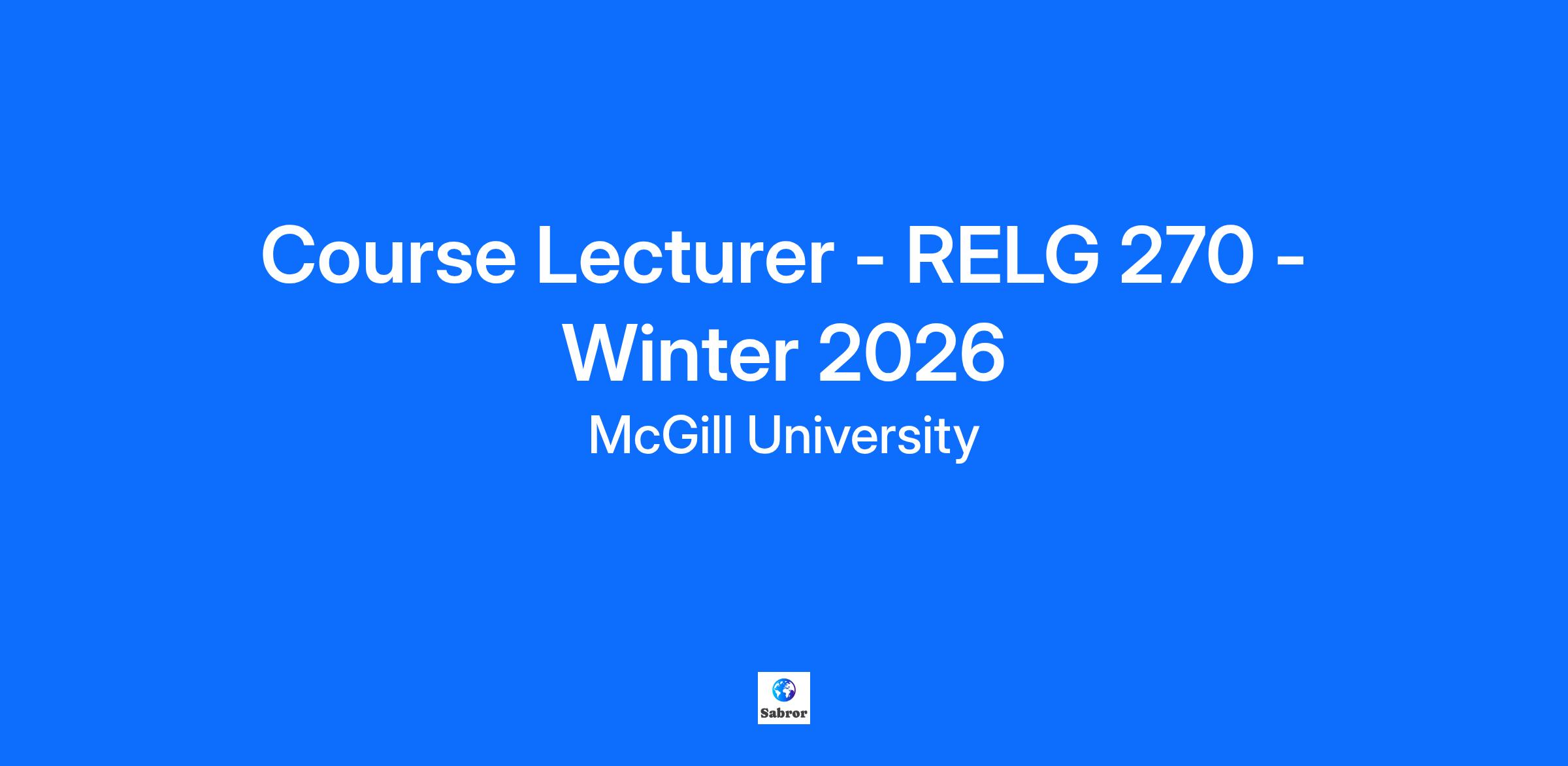 Please refer to the How to Apply for a Job (for External Candidates) job aid for instructions on how to apply. If you are an active McGill employee (ie: currently in an active contract or position at McGill University), do not apply through this Career Site. Login to your McGill Workday account and apply to this posting using the Find Jobs report (type Find Jobs in the search bar). The School of Religious Studies is hiring two course lecturers to team-teach RELG 270 Religious Ethics and the Environment in the Winter 2026 term. Teaching Qualification Requirements: Education Minimum of a Ph.D. in religious studies, or PhD advanced candidacy. Experience Evidence of superior teaching ability, in the form of prior teaching or TA evaluations in the course subject. The candidate' 'area of specialization should be as close as possible to that of the course being offered . The topic of this course is Environmental potential of various religious traditions and secular perspectives, including animal rights, ecofeminism, and deep ecology. Other Proposed course outline/syllabus to indicate how the applicant would present the course. Hiring Unit: School of Religious Studies Course Title: RELG 270 - Religious Ethics and the Environment Credits: 3 credit course Schedule: TR 1:05pm - 2:25pm Location: RPHYS 112 Salary: $5, 739.50 Deadline to Apply: October 15, 2025 - this posting will expire at 00:00 am the day of the deadline to apply. You have until midnight the day before the deadline to apply to submit your application. Applicants should submit: a) CV; b) proposed course outline; c) evidence of teaching performance (teaching and/or TA evaluations); d) the names of two referees; e) MCLIU application form . MCLIU application form https://www.mcgill.ca/religiousstudies/files/religiousstudies/mcliu_application_form_0.pdf Before applying, please note that to work at McGill University, you must be both authorized to work in Canada and willing to work in the province of Quebec at the campus where the position is based / located. McGill University is an English-language university where most teaching and research activities are conducted in the English language, thereby requiring English communication both verbally and in writing. Hiring Unit: School of Religious Studies Course Title: Religious Ethics and the Environment Subject Code: RELG 270 01 Location: Rutherford Physics - 112 Schedule: Tuesday, Thursday - 1:05pm - 2:25pm Deadline to Apply: 2025-10-15 McGill University hires on the basis of merit and is strongly committed to equity and diversity within its community. We welcome applications from racialized persons/visible minorities, women, Indigenous persons, persons with disabilities, ethnic minorities, and persons of minority sexual orientations and gender identities, as well as from all qualified candidates with the skills and knowledge to productively engage with diverse communities. McGill implements an employment equity program and encourages members of designated groups to self-identify. Persons with disabilities who anticipate needing accommodations for any part of the application process may contact, in confidence, accessibilityrequest.hr@mcgill.ca. Located in one of the world’s great multicultural and multilingual cities, McGill University is internationally recognized for its excellence as a leading institution of higher education and research. For nearly 200 years, through the work of dedicated people, McGill has been breaking ground in diverse fields and contributing solutions to some of the world’s most significant issues. McGillians are proud to be part of a community that is both global and local, inspired by challenge and committed to shaping a better future. McGill received a Platinum STARS rating in sustainability, is among Canada’s greenest employers, and is a top Montreal Employer. Grandescunt Aucta Labore. By work, all things increase and grow. Find a sense of purpose. Develop your future. Join us today.