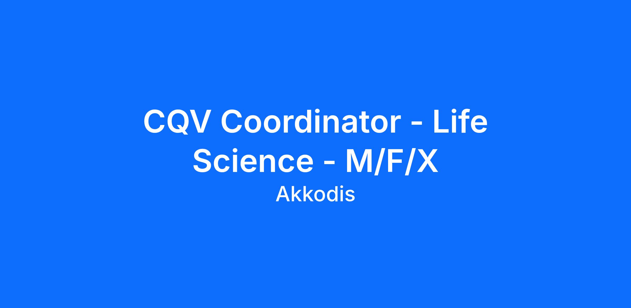 CQV Coordinator - Life Science - M/F/X