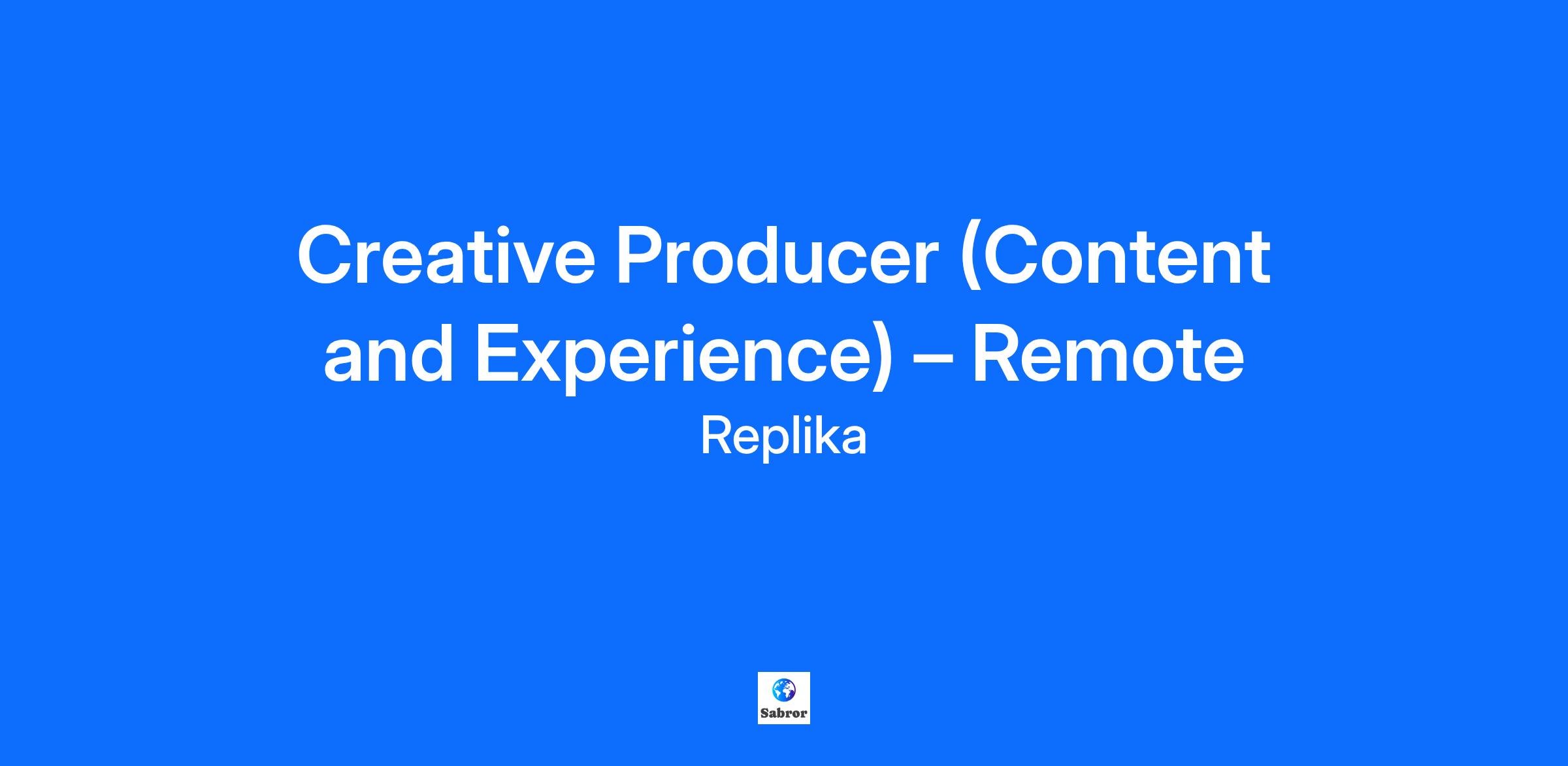 Creative Producer (Content and Experience) – Remote