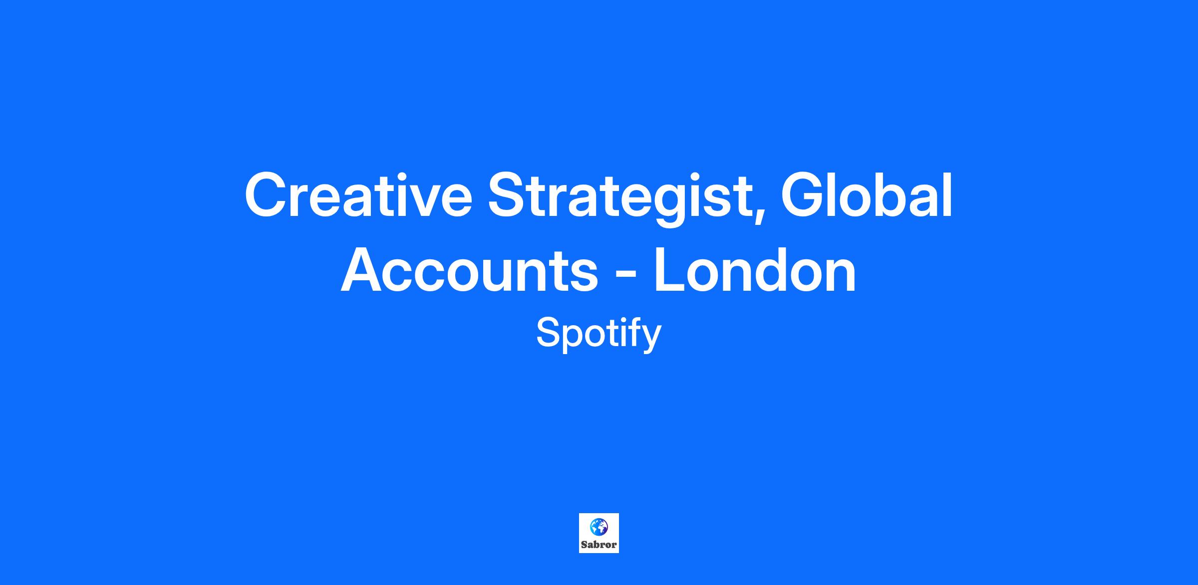 The Creative Lab sits within Spotify Advertising, the business unit within Spotify that focuses on connecting brands to millions of fans around the world. Our team is Spotify Advertising’s in-house creative agency, responsible for building branded experiences. We collaborate with brands and agencies to inspire, create, and scale creativity with Spotify-first thinking. We here at Creative Lab are storytellers who are obsessed with how ideas can be brought to life through the superpowers of our platform, and we are looking for someone to help lead through our next evolution, championing the potential of our products and offerings, and elevate our work. We are seeking a seasoned creative strategist to be based in London, UK, joining our talented creative strategy team. This creative strategist will be dedicated to inspiring the best ideas centered around Spotify through proactive and reactive responses to creative briefs, co-creating and building with our biggest brands, creators, and advertisers today. While the job is located in our London headquarters, this is focused on global accounts which means that the work may be focused on the UK and US (majority) or in some cases across markets throughout Europe, India, South Korea and Singapore depending on where our clients are based. The ideal candidate is a visionary strategist who truly embraces the blend of technology and storytelling. They think ahead, always planning the next feature or product in the innovation pipeline with immersive storytelling in mind for the industry. Their skills are varied: they can provide audience-centered ideas that meet brand objectives; meet with CCOs or CMOs at Fortune 500 brands to motivate future innovations and recommendations; and develop narratives, playbooks, and frameworks to assist internal and external collaborators in understanding platform possibilities. The ideal candidate will build and lead our response to global, multinational clients including major CPG, tech and telco brands. Experience with global clients in portfolio settings or multi-market campaigns is required due to cross-regional duties. They will report directly to the Head of EMEA & Global Accounts at Creative Lab and join a diverse group of skilled creative strategists. Though this is an IC role, the global account strategist will work with creative strategists in each region. They will lead global clients and initiatives as an upstream partner with centers of excellence and global brand teams. They inspire others to the mission and solve complex creative and operational problems. They think broadly about advertising industry dynamics and their impact on business. They apply this knowledge to our positioning, products, programs, and offerings. And along the way, they will build a portfolio of work that wins awards and recognition. This success shows that creativity on Spotify is key to amplifying communications in a complex, crowded IRL and digital landscape. \n What You'll Do * Together with the Head of EMEA & Global Accounts, support Creative Lab in producing the most effective concepts, positioning, and creative solutions for Global Accounts across CPG, Tech and Telco among other sectors. * Build and deliver global ideas, presentations, playbooks, creative frameworks, narratives to guide our biggest clients in getting the most out of their storytelling * Encourage and inform both internal and external groups about the impact of creativity in linking brands to their audiences * Manage the global accounts books of businesses and collaborate with heads of global agencies on the strategic direction. The objective is to establish a world-class advertising platform. * Work alongside clients and agencies to produce award-winning advertising on Spotify at scale * Support operational responsibilities including account and resource management and tracking and reporting of objectives and key results, processes within the team and with cross-functional teams as it relates to global accounts * Identify, develop and maintain a unique position for Spotify’s creative offerings and deliver them in a compelling way to convince partners to explore solutions with us * Develop, plan and scale approach to supporting top clients; driving approach to JBP support and coordination. This includes owning the account strategy and prioritization development with our global account partners * Facilitate inspirational workshops with senior-level partners to find the right balance of boundary-pushing creative expression and brand realities * Collaborate closely with other groups inside the Creative Lab, including the operations and production team that delivers outstanding craft and implementation for clients. Also work with the creative intelligence team, which partners with insights and data science teams to identify effective creative guidelines. This informs the creation of top-quality, impactful campaigns on Spotify. Additionally, engage with a strong group of global creative leads across various subject areas. * Develop and showcase innovative thought leadership on industry, advertising, visual and digital culture and trends as input and fodder to inspire internal and external partners Who You Are * 8+ years working in creative direction and strategy within a tech platform; creative agency background is strongly preferred; in-house brand experience is beneficial but optional. * Experience collaborating with CPG and Tech brands is a plus * Experience working across different markets and geographies; understands that cultural nuances are a must in considering creative ideation * Experience working with senior-level collaborators and clients at agencies and brands * Superlative cross-functional partnership skills that will help align our sales, marketing and product partners to our vision while supporting overall goals of the business * Excellent presenter who can adapt from a small room of CMOs and CCOs to a large audience of industry experts. They insp