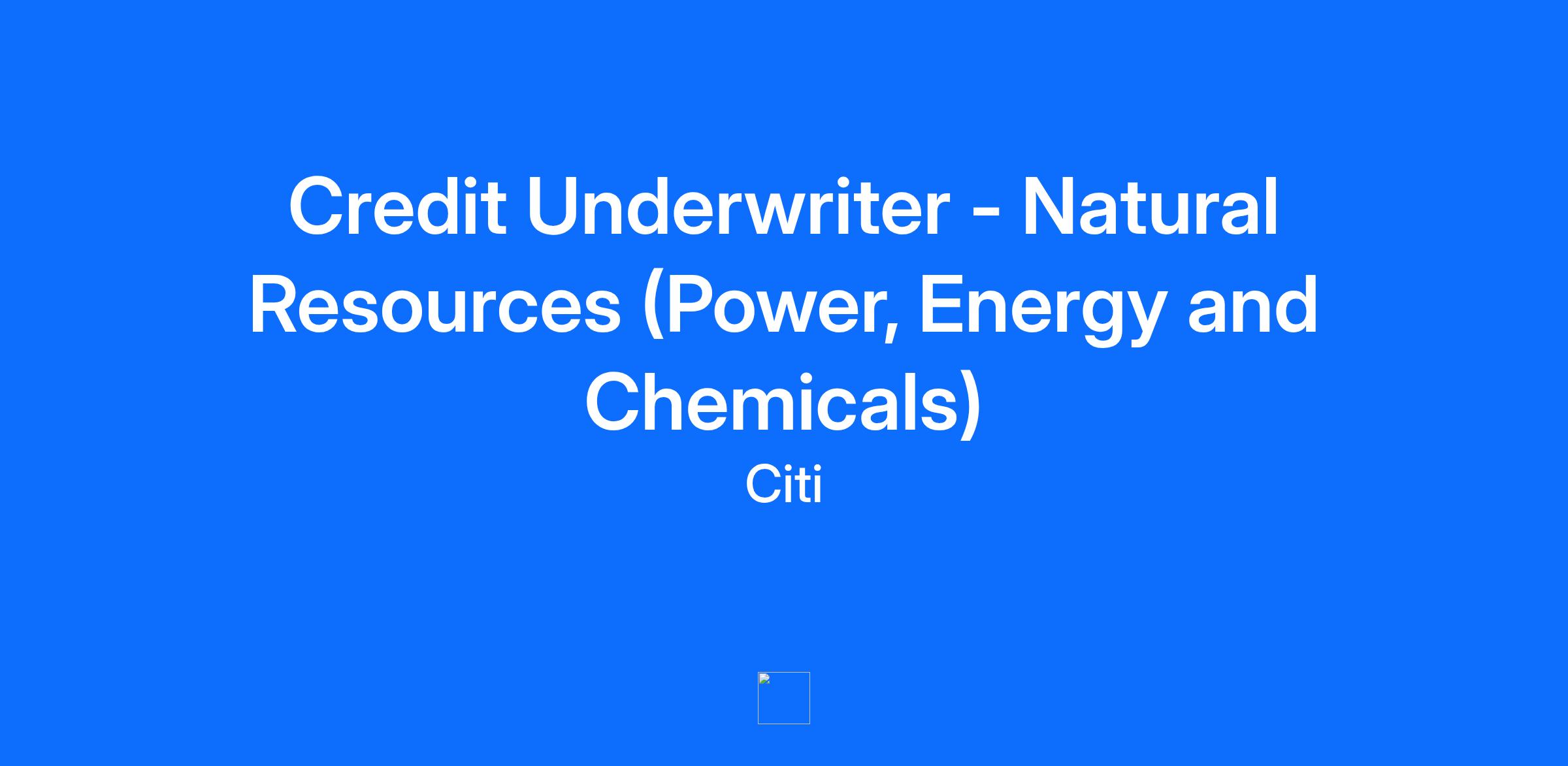 Credit Underwriter - Natural Resources (Power, Energy and Chemicals)