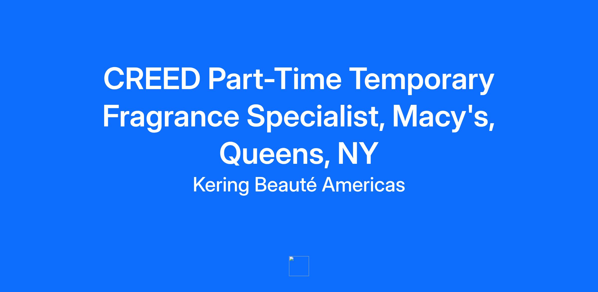 POSITION: Fragrance Specialist (Creed) REPORTS TO: Regional Sales Manager, TriState NYMetro Mid Atlantic STORE LOCATION: Macy's Queens Center, NY Welcome to Kering Beauté – Established in 2023, Kering Beauté aims to create value for the Group and its Houses. In June 2023, Kering Beauté announced that it had signed an agreement to acquire historic high-end fragrance house Creed; founded in 1760 it is known for its distinctive collections of timeless and sophisticated perfumes, including the iconic Aventus. This acquisition represents a major step for Kering Beauté. It perfectly complements Kering's existing portfolio, and immediately gives Kering Beauté a significant presence. Kering is committed to building a diverse workforce. We believe diversity in all its forms – gender, age, nationality, culture, religious beliefs and sexual orientation – enriches the workplace. It opens opportunities for people to express their talent, both individually and collectively and it helps foster our ability to adapt to a changing world. As an Equal Opportunity Employer, we welcome and consider applications from all qualified candidates, regardless of their background. Why Work With Us? We care about our team members, and we offer a competitive rate of $27/hr, benefits such as medical, dental, vision, 401(k), paid time off, employee discounts and much more! OVERVIEW – The Product Specialist is responsible for executing the Customer Experience and sales strategy on behalf of Kering Beauté. This position plays a key role in delivering a captivating, branded customer experience and championing sales goals. This individual will also promote and maintain the intrinsic company culture that fosters the firm’s core values of: Transparency, Recognition, Accountability, and Communication. CORE RESPONSIBILITIES Champion and driving the Customer Experience by holding exceptional standards while supporting out of home base sales. Drive retail sales plan at the store level by exhibiting accountability for overall function of the Creed Sales Team including support to achieve sales plan in all designated stores in market. Responsible for productivity by achieving personal sales goals to promote Creed and intersell including pre-sale and launch goals set by manager. Support and execute action plans based on market calendar to maximize sales, including executing presell launches and events in stores while partnering with management. Responsive for engaging with customers to build and promote brand awareness. Supporting monthly morning meetings; Department Wide Meetings, Store Wide Meetings, and Out of Home-base Meetings in conjunction with management and work collaboratively. Partner closely with manager and team to drive all aspects of the business. Accountable for event presell, goals and set up. Required to open and close if position is based in a boutique location. CORE REQUIREMENTS Minimum of 3 years of relevant and strong retail sales experience; fragrance, beauty or luxury goods preferred Relevant experience demonstrating strong sales experience and proficiency in the retail/fragrance industry Experienced and comfortable with working within a retail environment and building relationships Excellent verbal & written communication skills; strong interpersonal skills Possesses strong attention to detail, event planning and organizational skills to support business needs Possesses good technical computer skills, keyboarding and is knowledgeable of various reporting tools and systems Flexible and adaptable to changing priorities with the ability and willingness to multi-task Physical ability to move in store including kneeling, stooping, carrying, bending, twisting etc.; ability to lift to 25lbs.