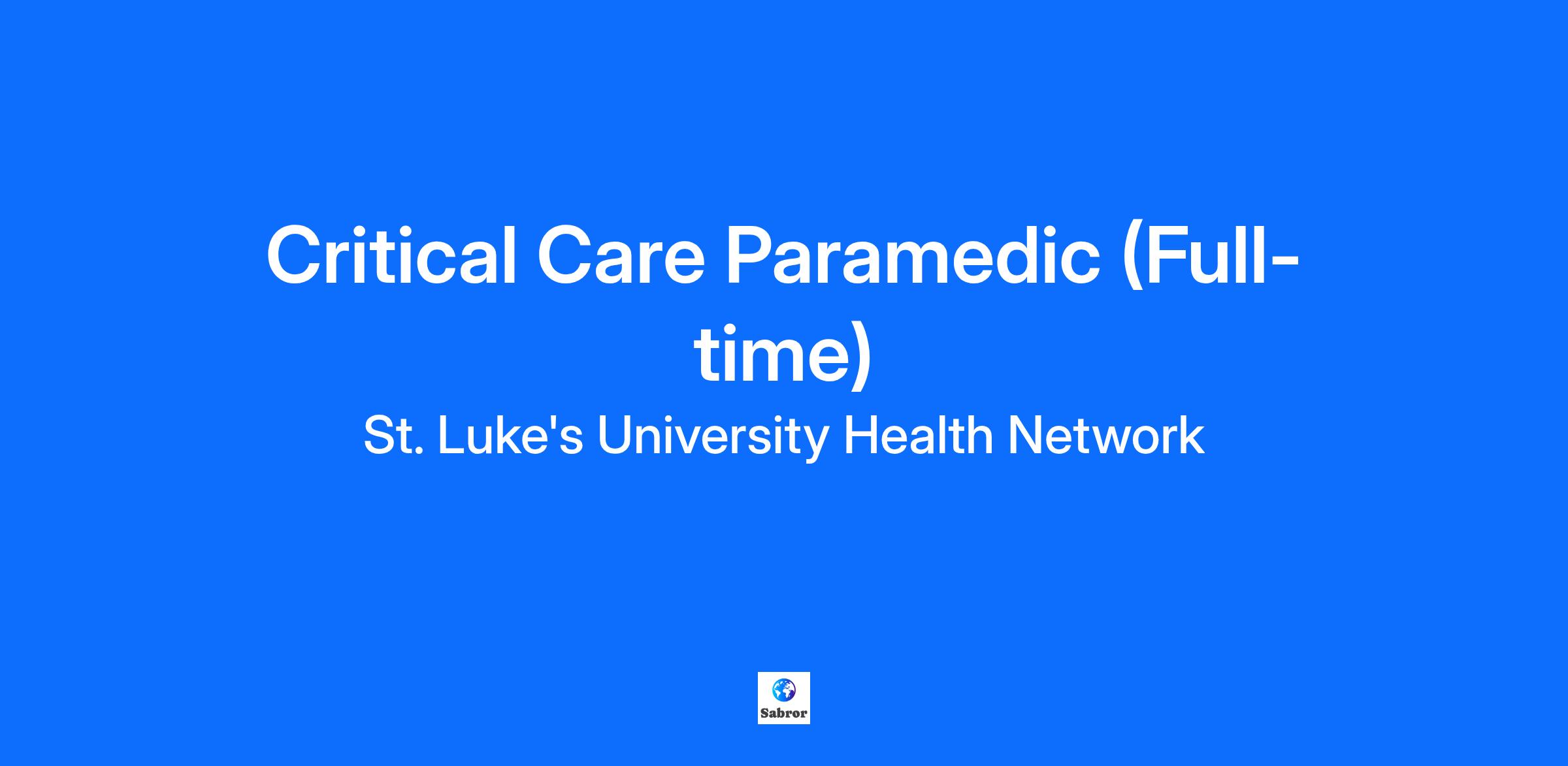 St. Luke's is proud of the skills, experience and compassion of its employees. The employees of St. Luke's are our most valuable asset! Individually and together, our employees are dedicated to satisfying the mission of our organization which is an unwavering commitment to excellence as we care for the sick and injured; educate physicians, nurses and other health care providers; and improve access to care in the communities we serve, regardless of a patient's ability to pay for health care. Employe must obtain either the Flight Paramedic Certification (FP-C) or Critical Care Paramedic Certification (CCP-C) within one year of the date of hire or promotion The Critical Care Transport- Paramedic (CCT-P) is a Pennsylvania certified Critical Care Paramedic who is responsible for providing emergency, non-emergency, pre-hospital, and inter-facility care to patients in a safe and efficient manner. JOB DUTIES AND RESPONSIBILITIES: Administering basic, advanced, and critical care life support to patients at a scene, en route, and interfacility to the hospital and in a pre-hospital setting in accordance with federal, state, and local laws, regulations and standards. Working within their certification via the “scope of practice” regulated by the Pennsylvania Department of Health Bureau of Emergency Medical Services Assessing the nature and extent of injury or illness to establish and prioritize medical procedures to be followed Rescuing and extricating victims of accidents, sudden illness or entrapment using proper rescue and medical techniques Treating patients at the scene, en route to the hospital, and in an Interfacility setting in accordance with federal, state, local, laws, regulations and standards Communicating with professional medical personnel and treatment facilities to obtain instructions regarding further treatment and/ or to arrange reception of patients to the appropriate center Maintaining order at scenes, including crowd disbursement and restraint of family and friends as long as scene safety is not breached Completing patient care forms, insurance forms, evaluation forms, ambulance checklist and all other forms in a competent and timely fashion Demonstrates competency in the assessment, range of treatment, knowledge of growth and development and communication appropriate to the age of the patient treated Collaborates with other health team members to maintain a professional working relationship with all organizations at an incident Completely, thoroughly, professionally documents assessments, physical findings and treatment rendered in pre-hospital and Interfacility setting on approved trip record in a timely manner. PHYSICAL AND SENSORY REQUIREMENTS: Sitting 3 hours a day; 30 minutes at a time. Standing up to 2 hours a day; 30 minutes at a time. Walking up to 3 hours a day; 30 minutes at a time. Continuous use of hands and fingers. Frequently grasping firmly and twisting/turning of the fingers and hand(s) simultaneously. Occasionally reaches above shoulder level. Occasionally lifts an object from a lower to a higher position 200 to 350 pounds. Occasionally carrying an object of 11 to 25 pounds. Occasionally pushes up to 75 pounds. Occasionally pulls up to 350 pounds. Frequently stooping and bending. Frequently squatting. Occasionally crouching and kneeling. Occasionally crawling. Occasional climbing. Must be able to perceive attributes of an object through touch. Must be able to hear as it relates to normal conversation. Must be able to see as it relates to general, near, far, color, peripheral vision and monotony. Maintain balance and strength in awkward positions. Speak clearly, even under stressful circumstances. Accurately communicate ideas orally and in writing in English. Respond physically with speed. Speak at proper volumes for appropriate situations. Must get along with others. EDUCATION: High School Diploma TRAINING AND EXPERIENCE: Critical Care Paramedic or Flight Paramedic (CC-P or FP-C) certification. Either the FP-C or CCP-C MUST be obtained within one year from the date of hire. PA certified as a Paramedic with 3-years’ experience. Current BCLS, PALS or PEPP, ACLS, PHTLS or ITLS certification. EVOC/EVDT certification. Driver requirements (PA DOH Requirement). Be at least 18 years of age. Have a valid driver’s license. Must observe all traffic laws. Must not be addicted to, or under the influence of alcohol or drugs. Must be free from any physical or mental defects or disease that may impair the person’s ability to drive an ambulance. Hazardous materials R & I certification or higher. NIMS 100, 200, 300, 400, 700 or 800 preferred. Tact, courtesy, initiative, judgment and the ability to follow directions is required. Complete the Critical Care Paramedic Orientation process at St. Lukes Emergency Transport Service. Please complete your application using your full legal name and current home address. Be sure to include employment history for the past seven (7) years, including your present employer. Additionally, you are encouraged to upload a current resume, including all work history, education, and/or certifications and licenses, if applicable. It is highly recommended that you create a profile at the conclusion of submitting your first application. Thank you for your interest in St. Luke's!! St. Luke's University Health Network is an Equal Opportunity Employer. Founded in 1872, St. Luke’s University Health Network (SLUHN) is a fully integrated, regional, non-profit network of more than 23,000 employees providing services at 16 campuses and 350+ outpatient sites. With annual net revenue in excess of $4 billion, the Network’s service area includes 11 counties in two states: Lehigh, Northampton, Berks, Bucks, Carbon, Montgomery, Monroe, Schuylkill and Luzerne counties in Pennsylvania and Warren and Hunterdon counties in New Jersey. St. Luke’s hospitals operate the largest network of trauma centers in Pennsylvania, with the Bethlehem Campus being home t