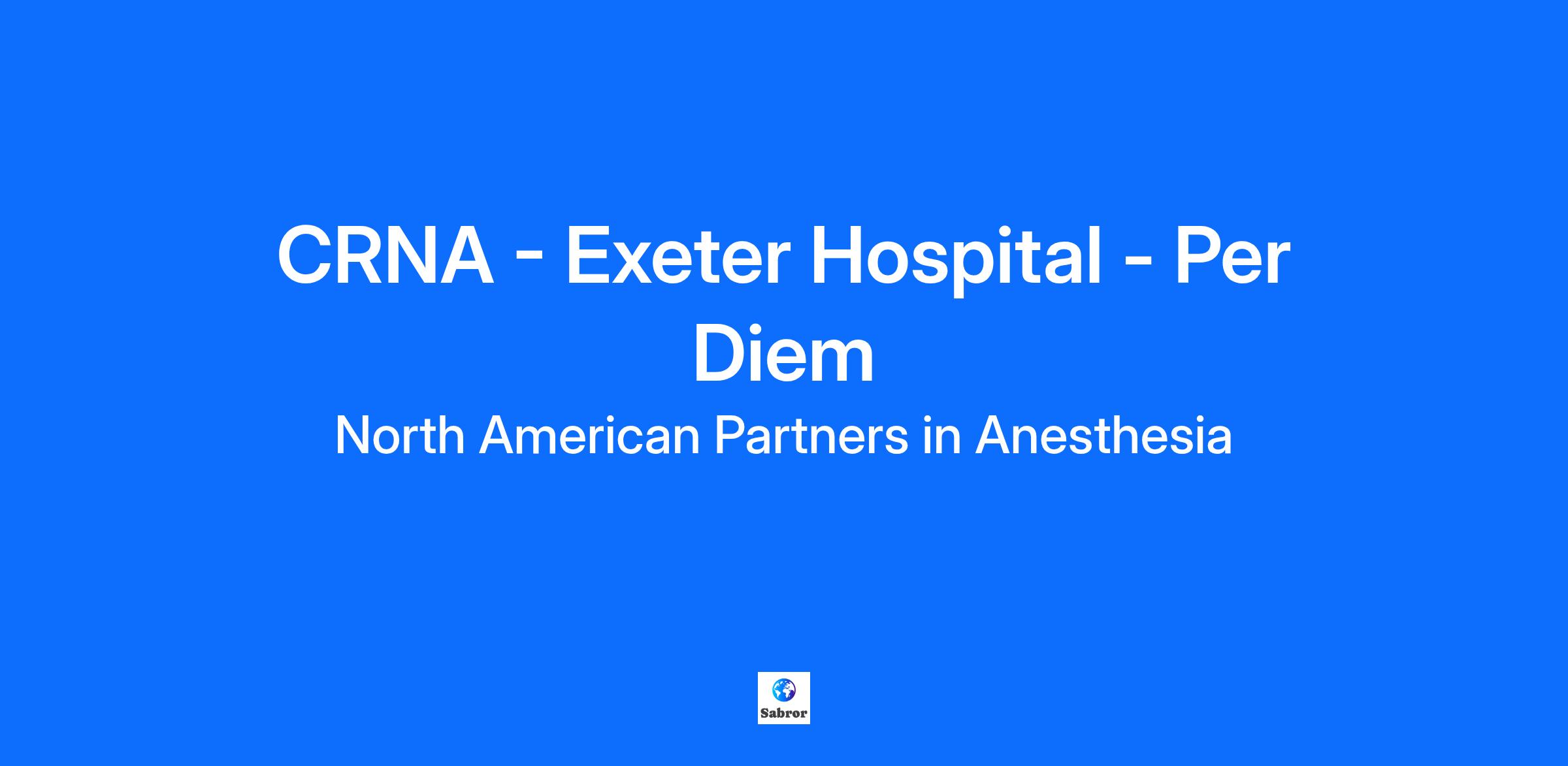 Exeter,NH - USA Position Requirements Description Looking to grow their CRNA team, Exeter Hospital is a level 3 trauma center located in Exeter, New Hampshire. This community-based practice offers an anesthesia care-team model, embracing an excellent work-life balance and collegial environment. CRNAs practice with autonomy and are encouraged to practice to the full scope of their license. Some CRNAs may serve as clinical preceptors for nearby nurse anesthesia programs. Exeter is conveniently located, being less than an hour from Boston and Portland, which is great for commuters within the family. Exeter is located next to the seacoast, and within close distance to mountains. This superb location has great access to outdoor activities and notable schools, such as Phillips Exeter Academy. It is considered a great place for family living and community. There is no state income tax or sales tax. Case Assignments General surgery, ortho, endo, ENT, GYN, labor and delivery, ophthalmology, urology, vascular, plastics, healthy peds, dental. No head/hearts or chronic pain. Shifts 8 and 10 hour shifts available Call-Taking position: Beeper-call for nights and weekends. Potential to earn up to $300K+/year. Team Leadership Karla Greco, Chief CRNA Team Highlights CRNAs work in a care-team model. Mix of solo cases and supervising cases. Requirements Responsibilities Pre-anesthesia assessment Obtains and/or verifies patient consent Discuss anesthetic options and risks with the patient Induction, maintenance, and emergence from anesthesia Monitoring of the patient's physiological condition Performance of clinical intervention as needed Requirements Current license as a registered professional nurse Graduation from an accredited program of nurse anesthesia education Certified or recertified by the AANA Council on Certification of Nurse Anesthetists Lifestyle Exeter is one of the most beautiful historic towns in New Hampshire. It is located in the seacoast area of Southeastern New Hampshire. Exeter has a diverse housing mix and a diverse population, with a combination of seniors, young families, and millennials that call Exeter home. Total Rewards Hourly rate: $180/hour. Fully paid malpractice insurance coverage CRNA - Exeter Hospital - Per Diem Salary: $165/hour. Plus a completion bonus incentive for hours worked EEO Statement North American Partners in Anesthesia is an equal opportunity employer. North American Partners in Anesthesia (NAPA) has evolved through more than 30 years to become a leader in anesthesia and perioperative services. Single specialty and clinician led, we remain committed to our mission of delivering exceptional patient experiences, every day. At NAPA, we cultivate leaders, promote work-life balance, and celebrate diversity. We know your success promotes our success, and we give you the tools and programs to achieve your goals. With flexibility, a collegial and collaborative environment, a wide range of market-leading benefits, and career opportunities from coast-to-coast, your future is waiting at NAPA.