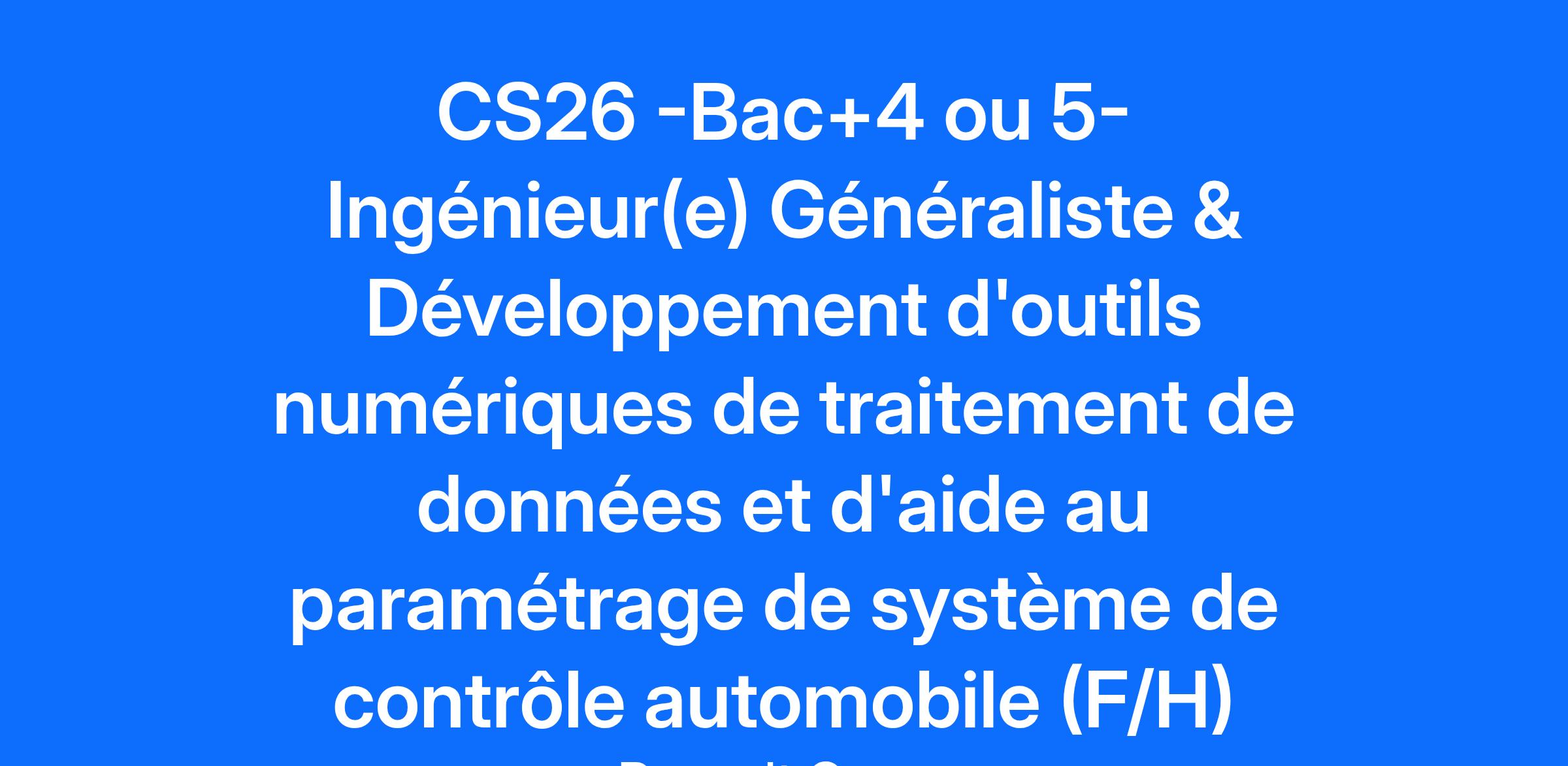 Company AMPERE s.a.s. Job Description Contexte et environnement de travail Renault poursuit son engagement envers les jeunes au travers de la formation par l’alternance et les stages. Cette politique volontariste positionne Renault comme un des contributeurs majeurs au développement de l’apprentissage en France. Dans le cadre de votre stage, vous serez suivi par le service Emploi, compétences et Politiques Jeunes et plus particulièrement au sein des relations écoles et de la marque employeur de Renault. Le Service Métier calibration et mise au point amont, recherche un(e) futur(e) ingénieur(e) en stage de fin d'étude pour développer et maintenir son pôle d'outils métier en lien étroit avec nos besoins de traitement des données d'acquisitions faites sur nos véhicules et bancs pour assurer le réglage des stratégies logicielles embarquées. Rattaché(e) au sein d'une équipe d'une dizaine de personnes, vous êtes au cœur des activités stratégiques de réglage des contrôleurs de nos véhicules électriques (Onduleur, BMS, Superviseur et chargeur), en binôme avec un référent Ampère supervisant le développement de nos outils. Vos missions: A ce titre, vous serez en charge de : Vous vous familiariserez avec les différents métiers de l'équipe et leurs livrables pour en comprendre les attentes, Analyserez (en échangeant avec les référents) les sujets en cours pour bien identifier les besoins de traitement des données de leur périmètre. Proposerez un cahier des charges et une réponse technique à leur demande. Assurerez le développement & la maintenance d'outils Analyserez les outils déjà existants sur différentes plateformes (Excel / Matlab /Python) pour identifier des synergies ou transfert sur une plateforme unique (Python) Participerez au développement outil et à l'intégration des nouveaux besoins. Assurerez la maintenance et le développement en fonction des remontés terrain. Qui êtes vous ? Vous préparez un diplôme BAC+5 de type école d'ingénieur ou Université Généraliste et recherchez un stage de fin d'étude. D'un profil généraliste doté(e) d'une culture mécatronique et de réelle compétences en codage Python, vous êtes stimulé(e) par les challenges technique à partager en équipe. Vous faites preuve de curiosité, d'une envie d'apprendre, d'apporter votre contribution et vos idées et disposez d'une bonne capacité de synthèse et d'organisation. Vous souhaitez participer à l’aventure de l’automobile de demain ? Rejoignez-nous ! 🚗💡 Job Family Production Engineering Contract Duration 6 months Renault Group is committed to creating an inclusive working environment and the conditions for each of us to bring their passion, perform to the full and grow, whilst being themselves. We find strength in our diversity and we are engaged to ensure equal employment opportunities regardless of race, colour, ancestry, religion, gender, national origin, sexual orientation, age, citizenship, marital status, disability, gender identity, etc. If you have a disability or special need requiring layout of the workstation or work schedule, please let us know by completing this form. In order to follow in real time the evolution of your applications and to stay in touch with us, we invite you to create a candidate account. This will take you no more than a minute and will also make it easier for you to apply in the future. By submitting your CV or application, you authorise Renault Group to use and store information about you for the purposes of following up your application or future employment. This information will only be used by Renault Group companies as described in the Group privacy policy. As a visionary, innovative company, Renault Group has been at the forefront of mobility since 1899. Today, the Group is transforming its business model to become a next-generation, high-tech, low-carbon automotive company, working with its four brands: Renault, Dacia, Alpine and Mobilize, and specialist entities to shape the future of mobility. All energies can play a role in decarbonisation. Consequently, we are developing smart, safe and affordable electric vehicles, while also continuing to innovate in the development of more efficient, low-carbon ICE and hybrid vehicles. In addition, the company is turning to other alternative energy sources, notably dual-energy electric motors. Mobility habits are changing. For this reason, we are investing in smart, electric mobility solutions with the emphasis on use, backed up by a complete ecosystem of services. Owing to the increasing scarcity of natural resources, we are deploying circular economy solutions to recycle materials. Do you want to be part of creating the future of mobility? Join us now! https://www.renaultgroup.com/en/group/