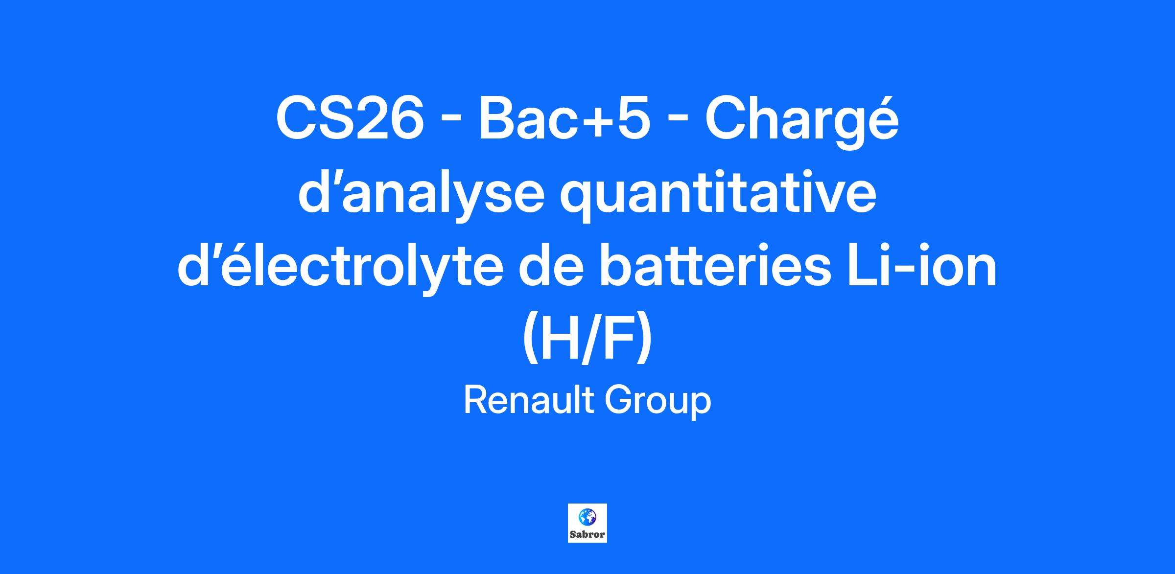 Company AMPERE s.a.s. Job Description Contexte et environnement de travail : Ampere est au cœur de la transformation du Renault Group : un pure player du véhicule électrique et du software, qui porte une valeur d’excellence technologique, faite d’innovation et de partenariats. Au sein du Service Batterie, les activités de l’équipe Recherche Procédés Cellule Batterie et Laboratoire portent sur l’évaluation de briques technologiques innovantes chimie & procédés de fabrication des cellules, afin de guider les choix futurs de l’entreprise. De plus, Ampere a décidé de se doter d’un nouveau laboratoire de prototypage et d’essais de cellules situé sur le centre d’essais technique de Lardy. Celui-ci dispose d’un environnement spécifique (salle anhydre) et d’équipements de pointe nécessaire à la réalisation de prototype de cellules batterie jusqu’aux essais électriques. Sa mise en service a eu lieu durant le second semestre 2025. Vos Missions : L’objectif du stage sera de développer et mettre en place des protocoles permettant d’analyser quantitativement la composition exacte d’un électrolyte à chaque étape du process de fabrication d’une cellule de batterie li-ion prototype. Les analyses chimiques seront réalisées par le service analytique de Renault. En tant que stagiaire, votre travail consistera à réaliser les missions suivantes en exploitant le matériel disponible au laboratoire : Formuler différentes compositions d’électrolytes liquides, Proposer et définir des procédures strictes de prélèvements à chaque étape du process, Réaliser l’ensembles des essais, l’envoi des échantillons, et le suivi des résultats analytiques. Etudier les impacts de différentes compositions d’électrolytes sur la qualité ou performance de la cellule. Rédiger les protocoles associés, comptes-rendus, rapports, et présentations internes Qui êtes-vous ? Vous préparez un diplôme de niveau BAC+5 avec une spécialité en en génie des procédés, science des matériaux, ou chimie avec éventuellement des connaissances en qualité ou analyses physico-chimiques. Des connaissances dans le domaine des analytiques seraient un plus. Vous êtes rigoureux et avez de l’intérêt pour les approches multidisciplinaires et le travail en laboratoire. Vous faites preuve d'initiative et d'inventivité pour trouver des solutions. Il sera attendu que vous soyez autonome sur les équipements, tout en travaillant au quotidien en équipe avec les autres membres du laboratoire, et d’autres services. Vous souhaitez participer à l’aventure de l’automobile de demain ? Rejoignez-nous ! 🚗💡 Job Family Research & Development Contract Duration 6 months Renault Group is committed to creating an inclusive working environment and the conditions for each of us to bring their passion, perform to the full and grow, whilst being themselves. We find strength in our diversity and we are engaged to ensure equal employment opportunities regardless of race, colour, ancestry, religion, gender, national origin, sexual orientation, age, citizenship, marital status, disability, gender identity, etc. If you have a disability or special need requiring layout of the workstation or work schedule, please let us know by completing this form. In order to follow in real time the evolution of your applications and to stay in touch with us, we invite you to create a candidate account. This will take you no more than a minute and will also make it easier for you to apply in the future. By submitting your CV or application, you authorise Renault Group to use and store information about you for the purposes of following up your application or future employment. This information will only be used by Renault Group companies as described in the Group privacy policy. As a visionary, innovative company, Renault Group has been at the forefront of mobility since 1899. Today, the Group is transforming its business model to become a next-generation, high-tech, low-carbon automotive company, working with its four brands: Renault, Dacia, Alpine and Mobilize, and specialist entities to shape the future of mobility. All energies can play a role in decarbonisation. Consequently, we are developing smart, safe and affordable electric vehicles, while also continuing to innovate in the development of more efficient, low-carbon ICE and hybrid vehicles. In addition, the company is turning to other alternative energy sources, notably dual-energy electric motors. Mobility habits are changing. For this reason, we are investing in smart, electric mobility solutions with the emphasis on use, backed up by a complete ecosystem of services. Owing to the increasing scarcity of natural resources, we are deploying circular economy solutions to recycle materials. Do you want to be part of creating the future of mobility? Join us now! https://www.renaultgroup.com/en/group/