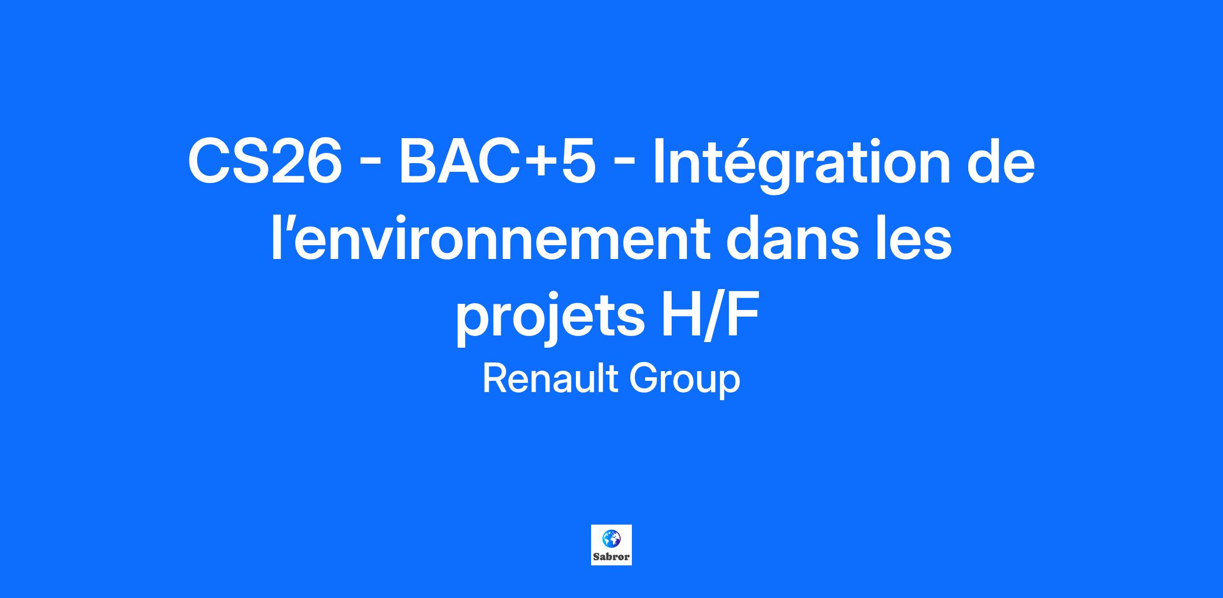Company RENAULT s.a.s. Job Description Contexte et environnement de travail Renault poursuit son engagement envers les jeunes au travers de la formation par l’alternance et les stages. Cette politique volontariste positionne Renault comme un des contributeurs majeurs au développement de l’apprentissage en France. Dans le cadre de votre stage, vous serez suivi par le service Emploi, compétences et Politiques Jeunes et plus particulièrement au sein des relations écoles et de la marque employeur de Renault. Prévenir, c’est protéger. La sécurité, l'ergonomie, la santé et l'environnement sont des thèmes essentiels qui doivent être intégrés dès les premières étapes de la conception d’un projet. Au sein de la Division HSEE Corporate, vous êtes rattaché(e) à la coordinatrice en charge de l’intégration de l’environnement dans les projets de Renault Group (une quarantaine de sites de fabrication, de logistique, d’ingénierie). Lors de ce stage, vous serez amené à travailler de façon transverse avec un panel varié d’interlocuteurs. Vous travaillerez avec les membres de la division HSE (spécialistes métiers et chefs de projets HSEE) en corporate, ainsi qu’avec les équipes environnement des sites. Vos Missions Vous assisterez la coordinatrice en charge de l’intégration de l’environnement dans projets, dans le cadre de ses missions au sein de la Direction Environnement du Groupe Renault. Ce stage comportera plusieurs missions : Elaboration d’une base de données regroupant les informations pouvant être utiles au démarrage d’un nouveau projet : Recenser les besoins auprès des interlocuteurs de la direction environnement, des sites Recenser les sources d’informations pouvant alimenter cette base de façon fiable, Construire cette base de données et la compléter autant que possible. Cette mission vous permettra d’acquérir des connaissances sur l’ensemble des thématiques couvertes par la Direction Environnement (pollution des sols, air, déchets, eau, légionelle, bruit et biodiversité, réglementation). Création d’un outil permettant d’analyser les risques d’un projet sous l’angle « environnement », et de piloter les actions à engager face à ces risques. Pour cela, il faudra au préalable : Découvrir la logique de développement de projets de Renault, Situer le futur outil dans l’écosystème des outils déjà existants chez Renault, Questionner les potentiels utilisateurs sur leurs attentes et besoins Répondre aux attentes de la norme ISO14001. Cette mission vous permettra d’acquérir des connaissances sur la gestion de projets. Suivant l’avancement des missions ci-dessus, d’autres missions en lien avec l’intégration de l’environnement dans les projets pourront être proposées. Par exemple, vous pourrez travailler sur la formalisation de fiches d’aide, pour différents publics, sur des sujets spécifiques en lien avec la prise en compte de l’environnement dans les projets. Vous serez basé(e) au Technocentre (Guyancourt) et serez en moyenne 2 jours par semaine en télétravail. A l’issue de ce stage, vous aurez acquis des compétences en management de projet, découvert le fonctionnement d’un groupe international et d’une industrie en pleine mutation. Qui êtes-vous ? Vous êtes en dernière année d’école d’ingénieur ou master environnement, les problématiques liées à l’environnement en milieu industriel vous intéressent et vous recherchez un stage de 6 mois. Rigoureux(se), vous êtes capable de collaborer avec des personnes d’horizons différents. Vous êtes polyvalent. Votre curiosité, votre force de proposition et votre esprit de synthèse vous permettront de mener à bien cette mission. Vous souhaitez participer à l’aventure de l’automobile de demain ? Rejoignez-nous ! 🚗💡 Job Family Health Safety Environment Contract Duration 6 months Renault Group is committed to creating an inclusive working environment and the conditions for each of us to bring their passion, perform to the full and grow, whilst being themselves. We find strength in our diversity and we are engaged to ensure equal employment opportunities regardless of race, colour, ancestry, religion, gender, national origin, sexual orientation, age, citizenship, marital status, disability, gender identity, etc. If you have a disability or special need requiring layout of the workstation or work schedule, please let us know by completing this form. In order to follow in real time the evolution of your applications and to stay in touch with us, we invite you to create a candidate account. This will take you no more than a minute and will also make it easier for you to apply in the future. By submitting your CV or application, you authorise Renault Group to use and store information about you for the purposes of following up your application or future employment. This information will only be used by Renault Group companies as described in the Group privacy policy. As a visionary, innovative company, Renault Group has been at the forefront of mobility since 1899. Today, the Group is transforming its business model to become a next-generation, high-tech, low-carbon automotive company, working with its four brands: Renault, Dacia, Alpine and Mobilize, and specialist entities to shape the future of mobility. All energies can play a role in decarbonisation. Consequently, we are developing smart, safe and affordable electric vehicles, while also continuing to innovate in the development of more efficient, low-carbon ICE and hybrid vehicles. In addition, the company is turning to other alternative energy sources, notably dual-energy electric motors. Mobility habits are changing. For this reason, we are investing in smart, electric mobility solutions with the emphasis on use, backed up by a complete ecosystem of services. Owing to the increasing scarcity of natural resources, we are deploying circular economy solutions to 
