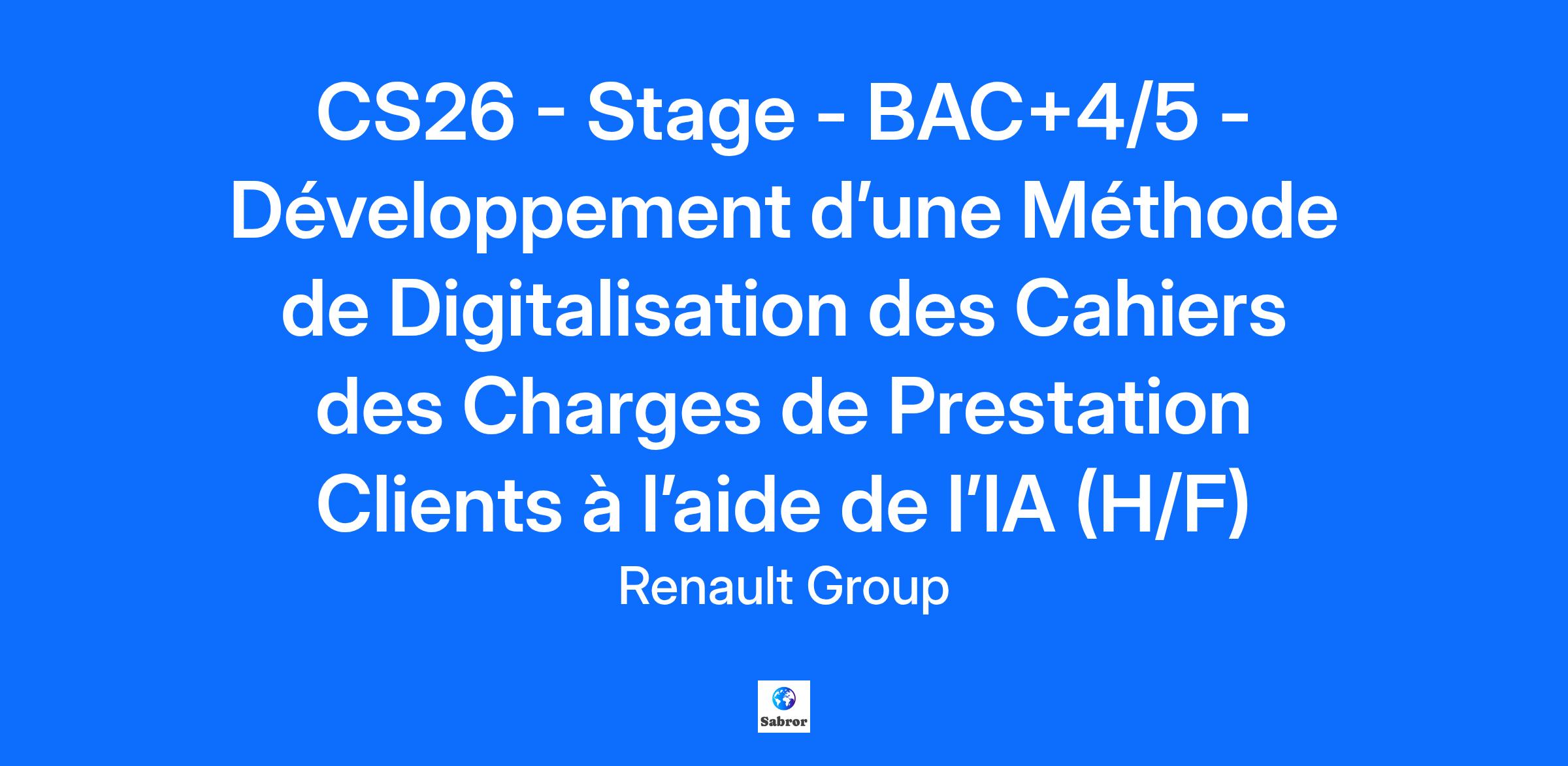 Company RENAULT s.a.s. Job Description Contexte et environnement de travail : Vous travaillez dans l'entité Transformation Digitale et gestion de configuration de l'ingénierie qui assure le développement des méthodes et outils de gestion des données associées aux produits & services Renault. Vos missions : La gestion des données dans un outil de PLM (Product Lifecycle Management) centralisé permettant d'assurer la continuité numérique, la traçabilité et la gestion des dépendances est devenue un enjeu majeur chez Renault. Dans ce contexte de transformation, la mission principale consiste à développer à l'aide de l'IA une ou plusieurs méthodes permettant de transformer des Cahiers des Charges hétérogènes, en « objets exigences » standardisés et structurés dans l'outil PLM de Renault. Pour ce faire, vous aurez accès à l'outil de PLM de Renault basé sur le logiciel 3DX de Dassault Système, et aux outils d'IA et de Data science utilisés chez Renault . Vous travaillez en relation étroite avec les spécialistes de la Transformation digitale et de l'IA chez Renault ainsi que les experts métiers chargés de développer les prestations Clients pour les nouveaux véhicules. Il s'agit, à terme, d'être en capacité de traiter automatiquement plus de 200 cahiers des charges de différents types. En fonction de l'avancement de cette mission principale, d'autres activités pourront être envisagées telles que par exemple l'utilisation de l'IA pour la synthèse et l'aide à la décision dans l'ingénierie des prestations Client. Ce stage est une réelle opportunité pour apprendre à appliquer les techniques de pointes sur un cas concret et complexe de transformation numérique. Ce stage vous permettra de plus de découvrir le monde passionnant, large et varié de l'ingénierie automobile. Qui êtes-vous ? Formation recherchée : Ingénieur.e en Data science et IA en dernière année d'école, intéressé.e par la complexité du produit automobile et les prestations Clients Compétence : Informatique (programmation) , IA et Data Science, Base de Données, notions sur l'outil 3DX de Dassault Systèmes serait un plus, maîtrise de l'anglais (lecture, écriture) Savoir-être : ouvert.e aux autres, rigoureux.se et analytique La scène est prévue pour une durée de 6 mois, basée au Technocentre à Guyancourt. Mots clés : Informatique , IA, data science , gestion de configuration, gestion des exigences, PLM Vous souhaitez participer à l'aventure de l'automobile de demain ? Rejoignez-nous ! Job Family Research & Development Contract Duration 6 months Renault Group is committed to creating an inclusive working environment and the conditions for each of us to bring their passion, perform to the full and grow, whilst being themselves. We find strength in our diversity and we are engaged to ensure equal employment opportunities regardless of race, colour, ancestry, religion, gender, national origin, sexual orientation, age, citizenship, marital status, disability, gender identity, etc. If you have a disability or special need requiring layout of the workstation or work schedule, please let us know by completing this form. In order to follow in real time the evolution of your applications and to stay in touch with us, we invite you to create a candidate account. This will take you no more than a minute and will also make it easier for you to apply in the future. By submitting your CV or application, you authorise Renault Group to use and store information about you for the purposes of following up your application or future employment. This information will only be used by Renault Group companies as described in the Group privacy policy. As a visionary, innovative company, Renault Group has been at the forefront of mobility since 1899. Today, the Group is transforming its business model to become a next-generation, high-tech, low-carbon automotive company, working with its four brands: Renault, Dacia, Alpine and Mobilize, and specialist entities to shape the future of mobility. All energies can play a role in decarbonisation. Consequently, we are developing smart, safe and affordable electric vehicles, while also continuing to innovate in the development of more efficient, low-carbon ICE and hybrid vehicles. In addition, the company is turning to other alternative energy sources, notably dual-energy electric motors. Mobility habits are changing. For this reason, we are investing in smart, electric mobility solutions with the emphasis on use, backed up by a complete ecosystem of services. Owing to the increasing scarcity of natural resources, we are deploying circular economy solutions to recycle materials. Do you want to be part of creating the future of mobility? Join us now! https://www.renaultgroup.com/en/group/