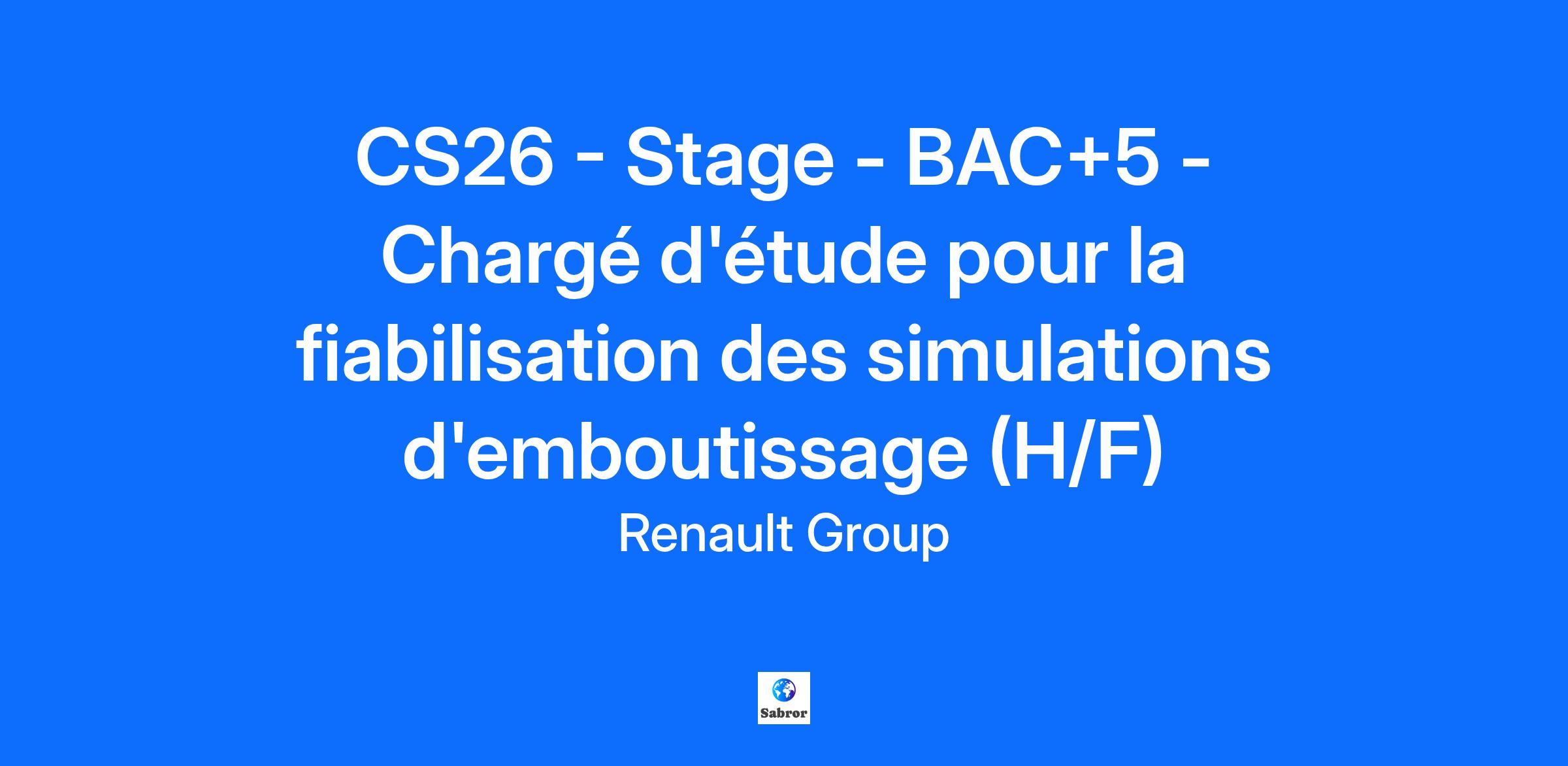 Company RENAULT s.a.s. Job Description Contexte et environnement de travail : Au sein du service développement process emboutissage, vous serez rattaché(e) au chef de l’Equipe Métier Développement Process. Vos activités seront focalisées principalement sur le périmètre de la simulation numérique du process emboutissage et de l'analyse des mesures issues de l'instrumentation des presses. (La simulation numérique est devenue incontournable pour prédire la mise en forme des pièces automobiles en tôle). Vos missions : Dans le cadre de l’amélioration continue de la précision des simulations d’emboutissage, l'étudiant(e) aura pour mission de : Corréler les efforts mesurés sur presse avec les résultats issus des calculs numériques. Exploiter différents leviers : simulations nominales, efforts mesurés sur opérations de reprise, configuration outillage (ressorts à gaz), surfaces d’usinage CAO, et instrumentation presse. L’objectif est de comprendre les écarts entre physique et numérique, et d’ajuster les paramètres de simulation pour fiabiliser les prédictions. Ce stage offre une immersion concrète dans le monde du formage, à l’interface entre calcul, essais et industrialisation. Vous serez amené à communiquer avec différentes entités de l'entreprise (Process, Projets, Usines) afin de récolter les informations nécessaires à votre sujet. Qui êtes-vous ? Vous êtes à la recherche d'un stage pour valider votre 5ème année de cycle ingénieur ou master en génie mécanique Compétences : connaissances en CAO – mise en forme - déformation des matériaux Maîtrise de l’anglais Savoir-être : curiosité, capacités de communication et d’organisation Vous souhaitez participer à l’aventure de l’automobile de demain ? Rejoignez-nous ! 🚗💡 Job Family Production Engineering Contract Duration 6 months Renault Group is committed to creating an inclusive working environment and the conditions for each of us to bring their passion, perform to the full and grow, whilst being themselves. We find strength in our diversity and we are engaged to ensure equal employment opportunities regardless of race, colour, ancestry, religion, gender, national origin, sexual orientation, age, citizenship, marital status, disability, gender identity, etc. If you have a disability or special need requiring layout of the workstation or work schedule, please let us know by completing this form. In order to follow in real time the evolution of your applications and to stay in touch with us, we invite you to create a candidate account. This will take you no more than a minute and will also make it easier for you to apply in the future. By submitting your CV or application, you authorise Renault Group to use and store information about you for the purposes of following up your application or future employment. This information will only be used by Renault Group companies as described in the Group privacy policy. As a visionary, innovative company, Renault Group has been at the forefront of mobility since 1899. Today, the Group is transforming its business model to become a next-generation, high-tech, low-carbon automotive company, working with its four brands: Renault, Dacia, Alpine and Mobilize, and specialist entities to shape the future of mobility. All energies can play a role in decarbonisation. Consequently, we are developing smart, safe and affordable electric vehicles, while also continuing to innovate in the development of more efficient, low-carbon ICE and hybrid vehicles. In addition, the company is turning to other alternative energy sources, notably dual-energy electric motors. Mobility habits are changing. For this reason, we are investing in smart, electric mobility solutions with the emphasis on use, backed up by a complete ecosystem of services. Owing to the increasing scarcity of natural resources, we are deploying circular economy solutions to recycle materials. Do you want to be part of creating the future of mobility? Join us now! https://www.renaultgroup.com/en/group/