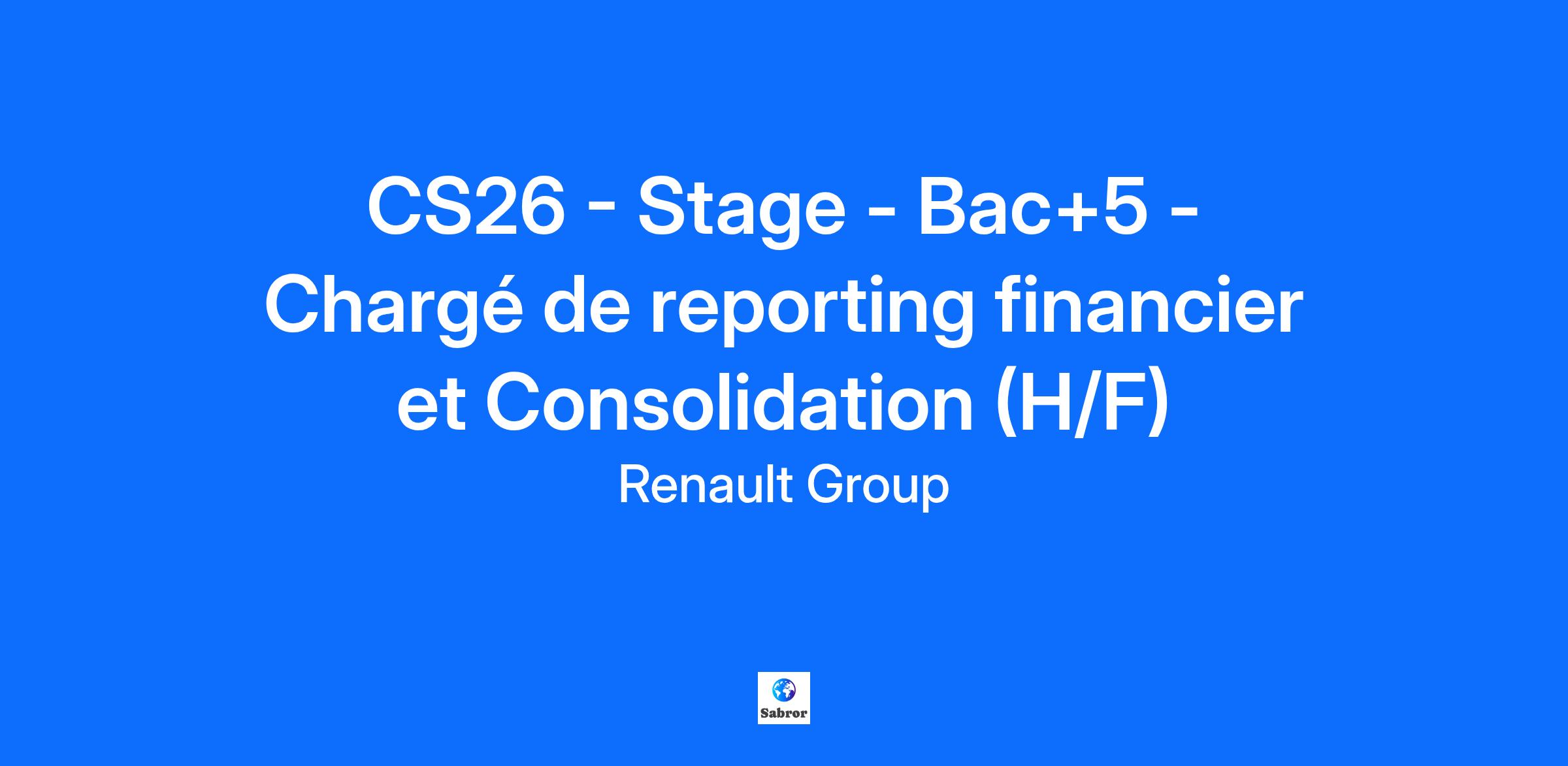 Company RENAULT s.a.s. Job Description Contexte et environnement de travail : En tant que stagiaire Chargé(e) de reporting financier et Consolidation, vous serez intégré(e) à l’équipe Consolidation et participerez aux travaux sur des sujets comptables et financiers. Vous découvrirez l’univers automobile et un groupe phare du CAC40. Le service Consolidation du Groupe Renault établit les comptes consolidés aux normes IFRS. Le service est rattaché à la Direction Global Financial Reporting & Controls. Vous rejoignez l'équipe de 10 personnes, basée sur le site de Boulogne Billancourt (92). Vos missions : Vous contribuez au processus d'établissement des comptes consolidés et participez à l'analyse des nouveautés ou points d'approfondissement de votre périmètre et à la transformation de la fonction. Vous êtes référent sur un périmètre géographique d'entités pour y assurer l'animation, le suivi de l'activité, l'analyse et le traitement des liasses de reporting reçues. Vous prenez en charge des traitements de consolidation transversaux. Vous êtes un élément clé pour produire les informations de synthèse financière requises pour le reporting interne et pour les publications externes semestrielles et annuelles. Qui êtes-vous ? Vous préparez un Master spécialisé en finance/comptabilité. Vous recherchez un stage de 6 mois. Vous êtes curieux, rigoureux, ouvert d'esprit et autonome. Vous maîtrisez l'anglais courant et le Pack office. Vous souhaitez participer à l’aventure de l’automobile de demain ? Rejoignez-nous ! 🚗💡 Job Family Human Resources Contract Duration Renault Group is committed to creating an inclusive working environment and the conditions for each of us to bring their passion, perform to the full and grow, whilst being themselves. We find strength in our diversity and we are engaged to ensure equal employment opportunities regardless of race, colour, ancestry, religion, gender, national origin, sexual orientation, age, citizenship, marital status, disability, gender identity, etc. If you have a disability or special need requiring layout of the workstation or work schedule, please let us know by completing this form. In order to follow in real time the evolution of your applications and to stay in touch with us, we invite you to create a candidate account. This will take you no more than a minute and will also make it easier for you to apply in the future. By submitting your CV or application, you authorise Renault Group to use and store information about you for the purposes of following up your application or future employment. This information will only be used by Renault Group companies as described in the Group privacy policy. As a visionary, innovative company, Renault Group has been at the forefront of mobility since 1899. Today, the Group is transforming its business model to become a next-generation, high-tech, low-carbon automotive company, working with its four brands: Renault, Dacia, Alpine and Mobilize, and specialist entities to shape the future of mobility. All energies can play a role in decarbonisation. Consequently, we are developing smart, safe and affordable electric vehicles, while also continuing to innovate in the development of more efficient, low-carbon ICE and hybrid vehicles. In addition, the company is turning to other alternative energy sources, notably dual-energy electric motors. Mobility habits are changing. For this reason, we are investing in smart, electric mobility solutions with the emphasis on use, backed up by a complete ecosystem of services. Owing to the increasing scarcity of natural resources, we are deploying circular economy solutions to recycle materials. Do you want to be part of creating the future of mobility? Join us now! https://www.renaultgroup.com/en/group/