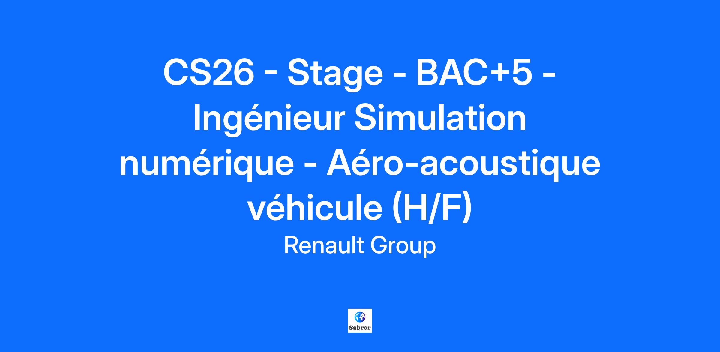 Company RENAULT s.a.s. Job Description Contexte et environnement de travail : En tant qu’acteur majeur de l’innovation automobile, Renault Group travaille en continu sur l’amélioration de la prestation de ses véhicules en proposant des technologies innovantes. La qualité acoustique est également au cœur du développement de nos véhicules, que ce soit pour les véhicules particuliers ou utilitaires (VU). Dans ce sens, et dans le but de répondre aux enjeux d’accélération du développement des véhicules, le secteur prestation acoustique s’appuie sur la simulation numérique pour optimiser le design de ses véhicules et réduire les bruits d’origine aérodynamique. Rattaché(e) au service des Méthodes et Outils de la direction GET-TD, vous rejoindrez l’équipe Mécanique des Fluides, Vibrations et Acoustique dans laquelle vous participerez à l’amélioration de la méthodologie de simulation numérique aéro-acoustique des véhicules utilitaires. Vos missions : À ce titre, vous serez en charge de : Comprendre la problématique et réaliser un Etat de l’art des différentes approches existantes de simulation aéro-acoustique. Prendre en main la méthodologie de simulation en utilisant les codes de simulations CFD Powerflow et Acoustique Wave6. Étudier les différentes voies de transmission solidienne et aérienne, et proposer une stratégie de modélisation. Réaliser les comparaisons calculs/mesures. Qui êtes-vous ? Vous préparez un diplôme BAC+5 en école d’ingénieurs (ou en master recherche) généraliste ou avec une spécialisation en vibro-acoustique et vous cherchez un stage de 6 mois. Vous avez des notions solides en vibro-acoustique et aéro-acoustique ainsi qu'une connaissance des principales méthodes de simulation numérique correspondant à ces deux disciplines. Vous faites preuve d'autonomie, d'esprit d'analyse, d’une bonne capacité rédactionnelle et vous maitrisez l’anglais. Vous souhaitez participer à l’aventure de l’automobile de demain ? Rejoignez-nous ! 🚗💡 Job Family Research & Development Contract Duration 6 months Renault Group is committed to creating an inclusive working environment and the conditions for each of us to bring their passion, perform to the full and grow, whilst being themselves. We find strength in our diversity and we are engaged to ensure equal employment opportunities regardless of race, colour, ancestry, religion, gender, national origin, sexual orientation, age, citizenship, marital status, disability, gender identity, etc. If you have a disability or special need requiring layout of the workstation or work schedule, please let us know by completing this form. In order to follow in real time the evolution of your applications and to stay in touch with us, we invite you to create a candidate account. This will take you no more than a minute and will also make it easier for you to apply in the future. By submitting your CV or application, you authorise Renault Group to use and store information about you for the purposes of following up your application or future employment. This information will only be used by Renault Group companies as described in the Group privacy policy. As a visionary, innovative company, Renault Group has been at the forefront of mobility since 1899. Today, the Group is transforming its business model to become a next-generation, high-tech, low-carbon automotive company, working with its four brands: Renault, Dacia, Alpine and Mobilize, and specialist entities to shape the future of mobility. All energies can play a role in decarbonisation. Consequently, we are developing smart, safe and affordable electric vehicles, while also continuing to innovate in the development of more efficient, low-carbon ICE and hybrid vehicles. In addition, the company is turning to other alternative energy sources, notably dual-energy electric motors. Mobility habits are changing. For this reason, we are investing in smart, electric mobility solutions with the emphasis on use, backed up by a complete ecosystem of services. Owing to the increasing scarcity of natural resources, we are deploying circular economy solutions to recycle materials. Do you want to be part of creating the future of mobility? Join us now! https://www.renaultgroup.com/en/group/