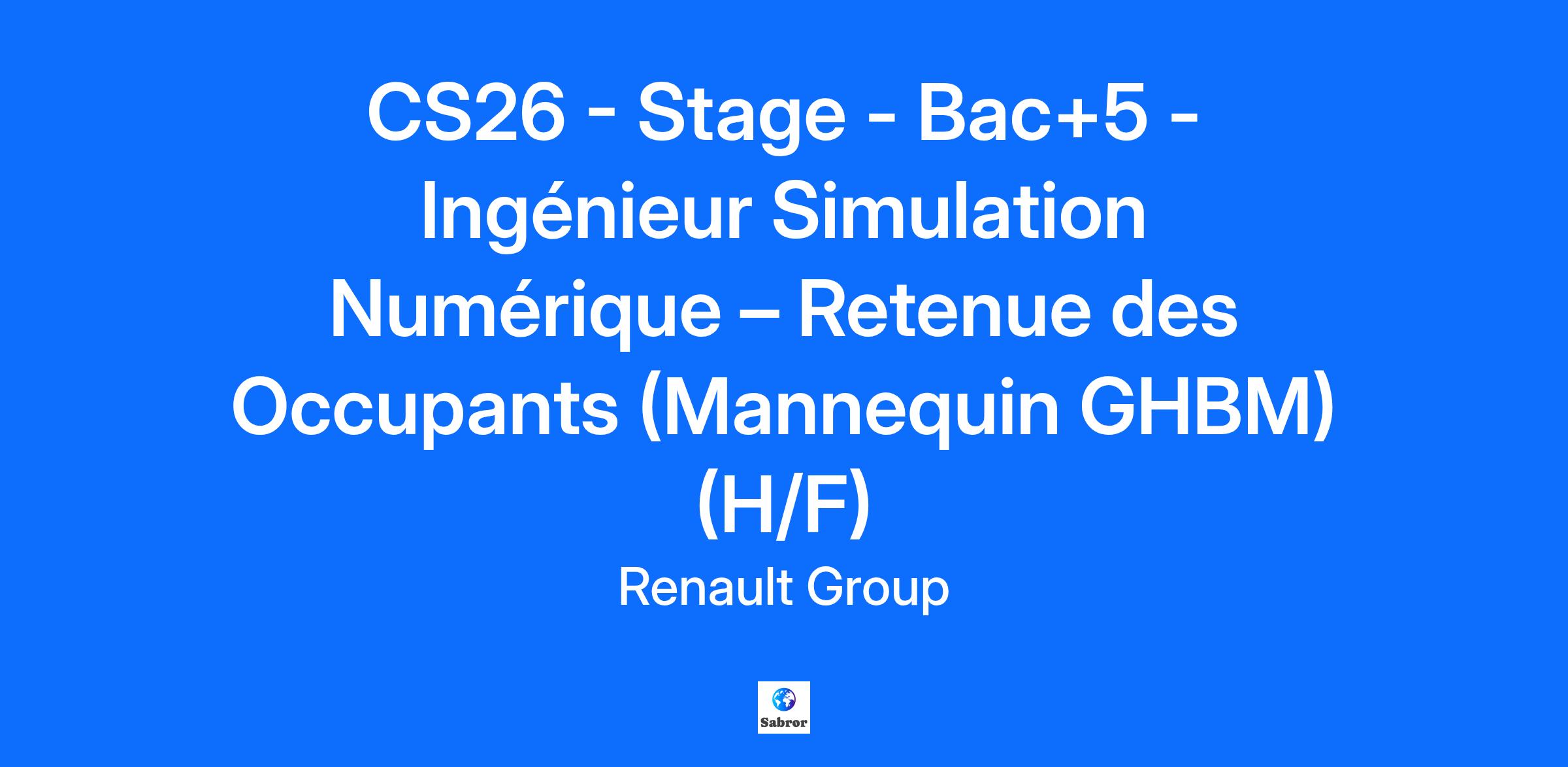 Company RENAULT s.a.s. Job Description Contexte et environnement de travail : Au sein du service Siège et Système de Sécurité, vous intégrerez l’équipe Système Protection des Occupants, dont la mission est d’assurer la convergence des projets en phase amont et développement sur la performance biomécanique, en respectant les plannings, processus et cahiers des charges. Dans le cadre de l’évolution des protocoles EuroNCAP2026, l’intégration du mannequin numérique GHBM (Global Human Body Model)devient essentielle pour l’évaluation des systèmes de sécurité. Cette étude est stratégique pour anticiper les critères additionnels prévus à horizon 2029. Vos missions : * Réaliser des simulations numériques de chocs frontal et latéral avec le mannequin GHBM. * Identifier les cas de charge critiques pour la retenue des occupants. * Comparer les résultats avec les mannequins physiques de référence (HIII 50ème, THOR, WorldSID). * Déterminer les paramètres influents pour améliorer les critères à risque : - Airbag (taille, raideur) - Ceinture - Calibration Travaux complémentaires * Étudier des scénarios liés à la conduite autonome: - Occupant éloigné du volant - Occupant en position allongée Qui êtes-vous ? * Étudiant(e) en dernière année d’école d’ingénieur (Bac+5) ou Master spécialisé en mécanique ou simulation numérique. * Compétences attendues : - Maîtrise des outils de simulation numérique (LS-Dyna, Pam-Crash, Abaqus ou équivalent). - Connaissances en biomécanique et systèmes de retenue appréciées. - Esprit analytique, rigueur et capacité à proposer des solutions innovantes. Vous souhaitez participer à l’aventure de l’automobile de demain ? Rejoignez-nous ! 🚗💡 Job Family Research & Development Contract Duration Renault Group is committed to creating an inclusive working environment and the conditions for each of us to bring their passion, perform to the full and grow, whilst being themselves. We find strength in our diversity and we are engaged to ensure equal employment opportunities regardless of race, colour, ancestry, religion, gender, national origin, sexual orientation, age, citizenship, marital status, disability, gender identity, etc. If you have a disability or special need requiring layout of the workstation or work schedule, please let us know by completing this form. In order to follow in real time the evolution of your applications and to stay in touch with us, we invite you to create a candidate account. This will take you no more than a minute and will also make it easier for you to apply in the future. By submitting your CV or application, you authorise Renault Group to use and store information about you for the purposes of following up your application or future employment. This information will only be used by Renault Group companies as described in the Group privacy policy. As a visionary, innovative company, Renault Group has been at the forefront of mobility since 1899. Today, the Group is transforming its business model to become a next-generation, high-tech, low-carbon automotive company, working with its four brands: Renault, Dacia, Alpine and Mobilize, and specialist entities to shape the future of mobility. All energies can play a role in decarbonisation. Consequently, we are developing smart, safe and affordable electric vehicles, while also continuing to innovate in the development of more efficient, low-carbon ICE and hybrid vehicles. In addition, the company is turning to other alternative energy sources, notably dual-energy electric motors. Mobility habits are changing. For this reason, we are investing in smart, electric mobility solutions with the emphasis on use, backed up by a complete ecosystem of services. Owing to the increasing scarcity of natural resources, we are deploying circular economy solutions to recycle materials. Do you want to be part of creating the future of mobility? Join us now! https://www.renaultgroup.com/en/group/