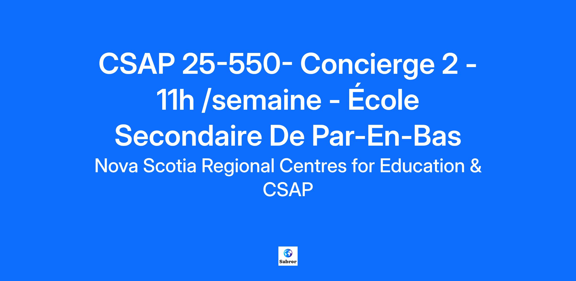 Le Conseil scolaire acadien provincial (CSAP) offre une éducation de qualité de la pré-maternelle à la 12e année, en français langue première en milieu minoritaire. Notre Conseil joue un rôle actif dans le développement de l’identité culturelle et de la promotion de la langue française dans un contexte culturel acadien et francophone de la Nouvelle-Écosse.Le CSAP compte 23 écoles, fréquentées par plus de 6 500 élèves. Plus de 1 000 employés qui assurent l’éducation des élèves et les accompagnent afin de favoriser leur épanouissement scolaire, culturel et identitaire. Nous sommes heureux d'offrir l'opportunité d'emploi suivante: Concierge 2 - 11h /semaine École Secondaire De Par-En-Bas Date limite des candidatures (AAAA/MM/JJ): ** Ce poste sera fermé dès qu’il sera comblé. Nous vous encourageons à postuler dès que possible. ** Syndicat : SCFP (8100) Lieu de travail: École Secondaire De Par-En-Bas Type de poste: Permanent Salaire : 22,51$ de l’heure Date d'entrée en fonction: Dès que possible2025-08-18 Date de fin (s'il a lieu): Responsabilités et tâches : Balayer, nettoyer et passer l’aspirateur dans toutes les pièces de l’école; Garder les entrées et sorties de l’école propres et dégagée; Nettoyer et désinfecter les abreuvoirs, les salles de toilettes et les urinoirs; Ramasser les ordures et le recyclage; Assurer des travaux mineurs d’entretien; Tout autre tâche reliée à l’entretien général de l’école. Qualifications : Expérience en nettoyage et en entretien d’édifices; Facilité à s’exprimer dans les deux langues officielles du pays; Capacité à travailler de façon collaborative; Connaître les mesures de sécurité reliées à l’entretien d’une école; Soumettre les vérifications pré-emplois avant l’entrée en fonction; Formation en premiers soins (un atout); Certification ‘Système d’informations sur les matières dangereuses utilisées au travail’ (SIMDUT) (un atout). **Les membres de l’unité syndicale SCFP auront préséance dans le processus d’embauche.** AUTRES INFORMATIONS Seules les candidatures soumises en français seront considérées. Le CSAP encourage les personnes issues de groupes historiquement défavorisés ou sous-représentés à poser leur candidature. Si vous faites partie d’un groupe désigné, nous vous invitons à l’indiquer dans votre profil de candidature. Si vous êtes une personne en situation de handicap et que vous avez besoin d’un accommodement raisonnable afin de participer pleinement au processus d’entrevue, veuillez nous en informer. Nous prendrons les mesures nécessaires pour répondre à vos besoins, dans le respect de notre engagement en matière d’équité en emploi. Nous remercions toutes les personnes qui postulent. Cependant, nous communiquerons uniquement avec celles sélectionnées pour une entrevue. Si vous êtes retenu(e), une vérification judiciaire (secteur vulnérable) et un certificat du registre des enfants maltraités seront demandés avant la prise de poste. Les consignes vous seront transmises lors du processus d’embauche. Le CSAP respecte les principes d’équité et d’inclusion en matière d’emploi, et s’engage à offrir un milieu scolaire et professionnel à l’image de ces valeurs.