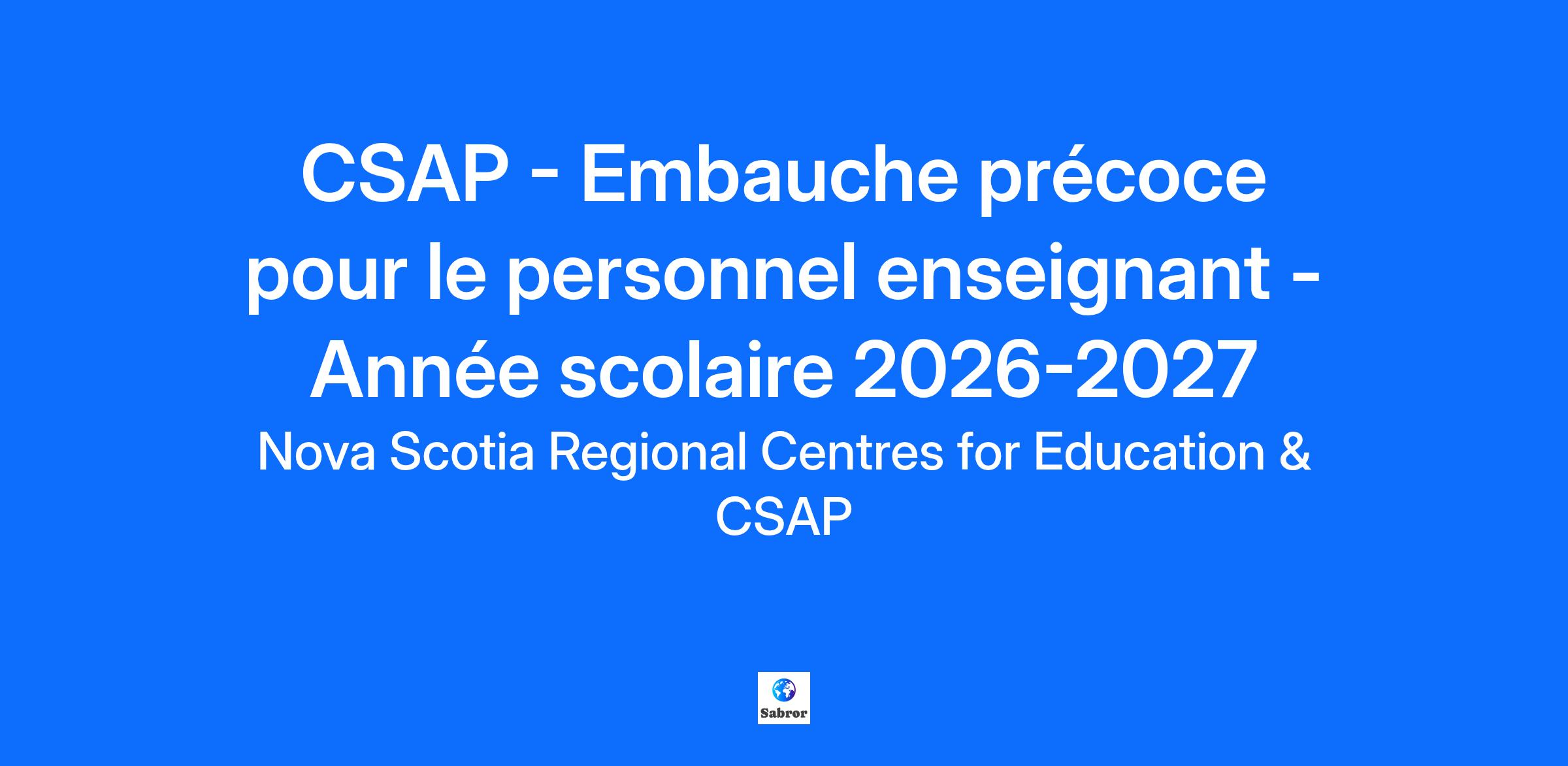 Le Conseil scolaire acadien provincial (CSAP) offre une éducation de qualité de la pré-maternelle à la 12e année, en français langue première en milieu minoritaire. Notre Conseil joue un rôle actif dans le développement de l’identité culturelle et de la promotion de la langue française dans un contexte culturel acadien et francophone de la Nouvelle-Écosse.Le CSAP compte 23 écoles, fréquentées par plus de 6 500 élèves. Plus de 1 000 employés qui assurent l’éducation des élèves et les accompagnent afin de favoriser leur épanouissement scolaire, culturel et identitaire. Nous sommes heureux d'offrir l'opportunité d'emploi suivante: Embauche précoce pour le personnel enseignant Année scolaire 2026-2027 Date limite des candidatures : 27 février 2026 Date limite des candidatures (AAAA/MM/JJ): 2026-02-27 à 23h59 Syndicat : NSTU (8200) Lieu de travail: À déterminer Les candidats sont demandés de préciser leurs préférences de lieu de travail selon l'emplacement géographique de nos écoles. Type de poste: Non-comblé ou vacant (selon la disponibilité ou les besoins) Date d'entrée en fonction: 2026-08-01 Date de fin (s'il a lieu): 2027-07-31 Salaire et avantages sociaux: Il s'agit d'un poste syndiqué faisant partie du Nova Scotia Teachers Union (NSTU), avec une échelle salariale annuelle de 63 664 $ à 113 619 $. Les conditions d'emploi du personnel NSTU s'appliquent. Ronde (s'il a lieu): Non applicable Le CSAP amorce son processus de recrutement en vue de pourvoir les postes en enseignement pour l’année scolaire 2026-2027. La sélection des candidatures convoquées en entrevue sera effectuée en fonction des qualifications et des besoins des écoles du CSAP à l’échelle de la Nouvelle-Écosse. Chaque année, des contrats sont offerts à l’avance afin de planifier la prochaine année scolaire. Le placement final des personnes embauchées aura lieu vers la fin mai ou au début juin. *Seules les personnes retenues pour une entrevue seront contactées. Distinction pour le recrutement du personnel formé à l’international: Veuillez noter que le brevet d’enseignement est obligatoire pour exercer la profession en Nouvelle-Écosse. Si vous n’avez pas encore amorcé les démarches, nous vous invitons à le faire dans les plus brefs délais. À noter que l’obtention du brevet n’est pas assurée est n’est pas une décision qui relève du CSAP, mais du Bureau du registraire des certificats d’aptitude à l’enseignement (Office of Teacher Certification). Pour plus de détails : https://certification.ednet.ns.ca/homepage-fr. Le placement final des employé(e)s potentiel(le)s nécessitant un permis de travail se fera vers la mi ou la fin juin, à la suite du processus de recrutement externe. *Seules les personnes retenues pour une entrevue seront contactées. Objectif visé Identifier et recruter du personnel enseignant qualifié et compétent, pour occuper des postes au sein de notre conseil scolaire provincial. Nous invitons toutes les personnes intéressées à compléter leur profil de candidature avec le plus de détails possible, afin de nous permettre d’évaluer adéquatement leur dossier en fonction de nos besoins. Si vous avez déjà un profil existant, assurez-vous de le mettre à jour. Responsabilités liées à l’enseignement Préparer et enseigner les matières scolaires conformément aux résultats d’apprentissage et aux programmes d’études; Se servir d’approches pédagogiques centrées sur la réussite des élèves; Utiliser les technologies au service de l’apprentissage et aux fins de la gestion scolaire (TIENET, PowerSchool); Utiliser des stratégies visant l’appréciation du rendement aux fins d’outil à promouvoir l’apprentissage et la réussite; S’engager à promouvoir la langue et la culture acadienne et francophone; Participer aux occasions de développement professionnel visant le perfectionnement pour contribuer au rendement des élèves; Participer aux réunions selon les besoins de l’école / des élèves. Compétences et qualifications Détenir un baccalauréat en éducation, ou en voie de l’obtenir; Détenir les qualifications et l’expérience nécessaires à l’emploi Détenir un brevet d’enseignement de la Nouvelle-Écosse, ou y être éligible; Compléter une demande auprès du registre des enfants maltraités; Compléter une demande de vérification du casier judiciaire comportant la mention du secteur vulnérable. AUTRES INFORMATIONS Seules les candidatures soumises en français seront considérées. Le CSAP encourage les personnes issues de groupes historiquement défavorisés ou sous-représentés à poser leur candidature. Si vous faites partie d’un groupe désigné, nous vous invitons à l’indiquer dans votre profil de candidature. Si vous êtes une personne en situation de handicap et que vous avez besoin d’un accommodement raisonnable afin de participer pleinement au processus d’entrevue, veuillez nous en informer. Nous prendrons les mesures nécessaires pour répondre à vos besoins, dans le respect de notre engagement en matière d’équité en emploi. Nous remercions toutes les personnes qui postulent. Cependant, nous communiquerons uniquement avec celles sélectionnées pour une entrevue. Si vous êtes retenu(e), une vérification judiciaire (secteur vulnérable) et un certificat du registre des enfants maltraités seront demandés avant la prise de poste. Les consignes vous seront transmises lors du processus d’embauche. Le CSAP respecte les principes d’équité et d’inclusion en matière d’emploi, et s’engage à offrir un milieu scolaire et professionnel à l’image de ces valeurs.
