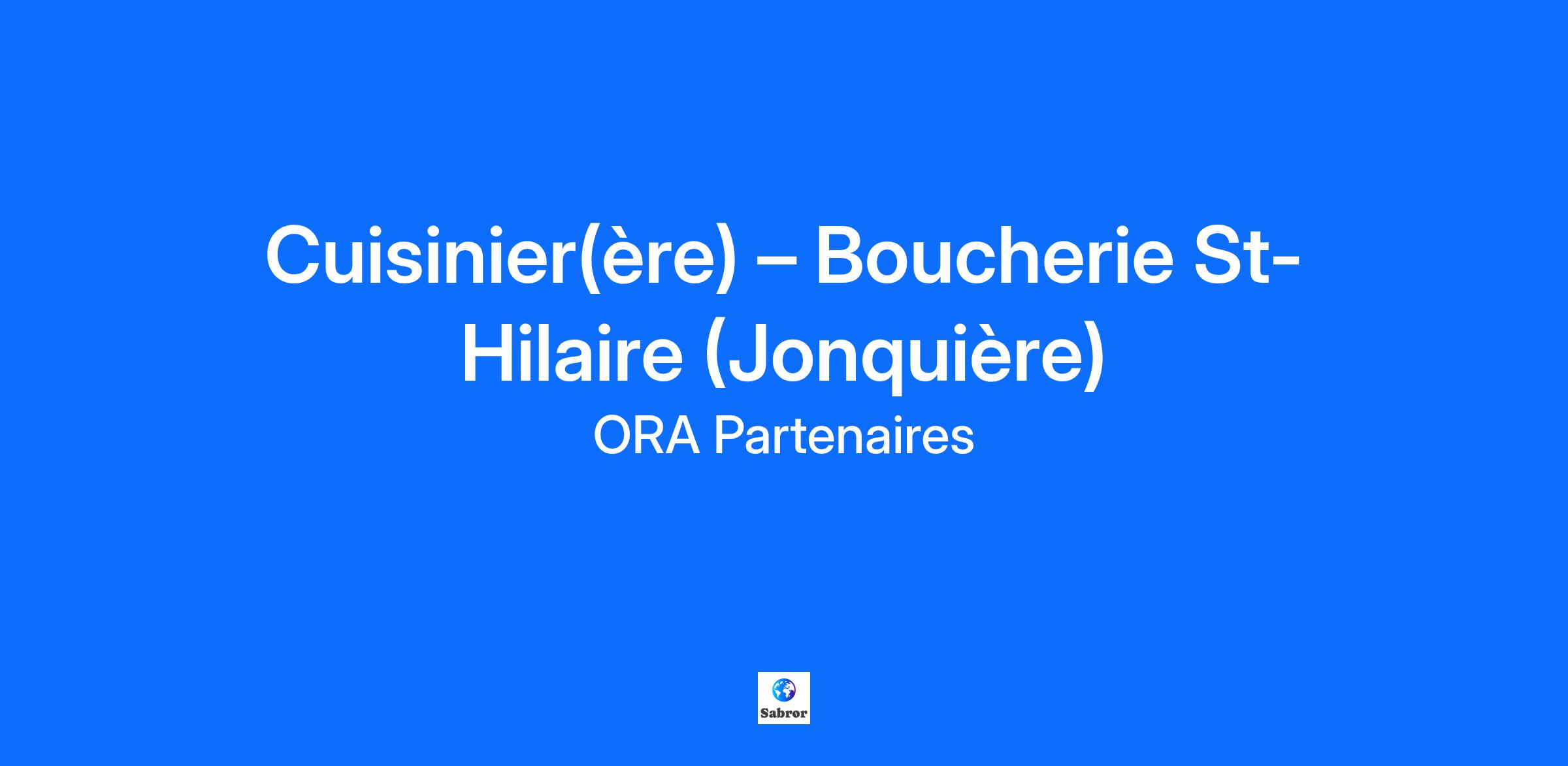 À propos de nous La Boucherie St-Hilaire à Jonquière, c’est une équipe passionnée qui met de l’avant une cuisine maison préparée sur place, reconnue pour sa qualité et sa variété. En plus de notre table chaude pour les repas, nous offrons un comptoir de microbrasserie et une boulangerie artisanale. Innovateurs et attentifs aux tendances, nous avons pour mission d’offrir à notre clientèle des produits maison de qualité supérieure et un service chaleureux. Responsabilités Préparer les menus du jour pour le service du midi et du soir. Participer à la production de nos plats maison (tourtières, pâtés variés et autres mets prêts-à-manger). Assurer la qualité, la fraîcheur et la constance des produits préparés. Respecter les normes d’hygiène et de salubrité alimentaire. Collaborer avec l’équipe afin de maintenir une ambiance de travail agréable et efficace. Profil recherché Expérience en cuisine ou en préparation alimentaire (un atout, mais non obligatoire). Bonne organisation et rapidité d’exécution. Intérêt pour la cuisine maison et le travail d’équipe. Fiabilité et ponctualité. Conditions de travail Poste à temps plein : 40 h / semaine Horaire : du lundi au vendredi, 7 h à 16 h ou 8 h à 17 h (à confirmer avec le gestionnaire). Environnement convivial et familial où vos talents sont valorisés. Intéressé(e)? Faites parvenir votre CV dès aujourd’hui et venez contribuer à faire rayonner une entreprise locale reconnue pour sa cuisine maison et son esprit d’équipe! J’autorise ORA Partenaires à conserver mes informations personnelles recueillies dans le cadre de ses activités pour des fins en lien avec sa mission et dans le respect de sa Politique de confidentialité qui se trouve sur son site web. #emploi