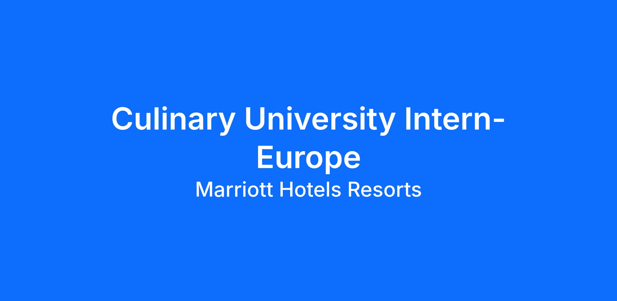 Build upon your classroom studies through our Hotel Internship Program opportunities. You will learn first-hand about a hotel's operations. Our Hotel Internship Program allows you to truly experience the industry from the ground up, where our founders and many of our leaders began. You will get immersed in Marriott's culture and business and find your true calling in the travel industry. Our internships are typically available in many different areas of the hotel. By gaining hands-on experience in the exciting world of hotel management, you�ll be better prepared to pursue opportunities post graduation. Here�s to exploring, kickstarting your dream career, and joining us on your journey!