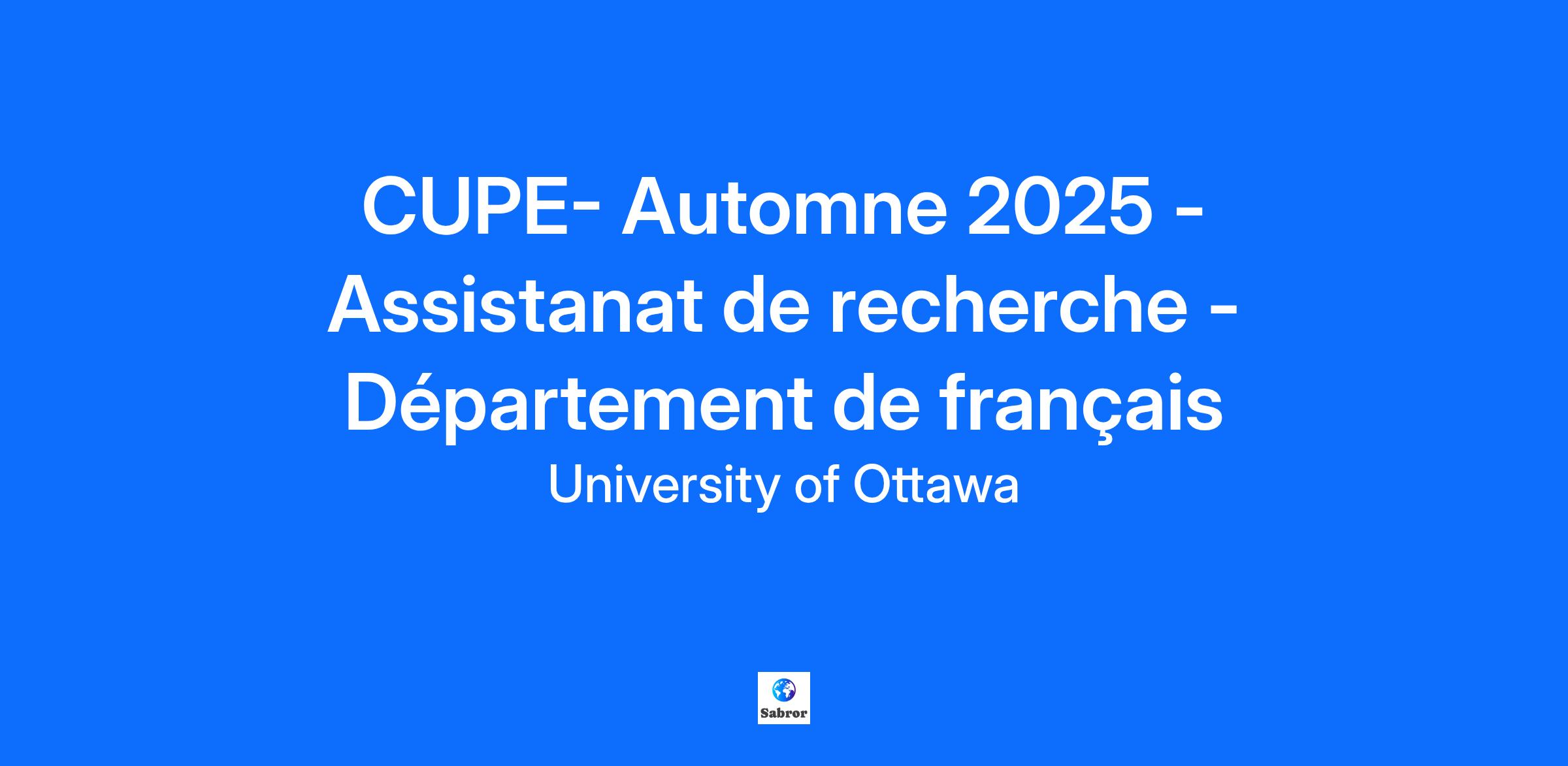 Location where work is to be performed: Main Campus Session: 2025 Fall Semester | Trimestre d'automne Faculty: Faculté des arts / Faculty of Arts Unit: Département de français_Students and Casuals Job Classification: Research Assistant (CUPE) Posting Type: Recherche / Research Course Title: N/A Course Code: N/A Section: Supervisor name (if known): Mawy Bouchard Date Posted (YYYY/MM/DD): 2025/09/18 Applications must be received BEFORE (YYYY/MM/DD): 2025/10/02 Description of tasks (hours): Unless specified below, specific allocation of hours to various tasks should be articulated in a description of work negotiated and signed by you and the supervising professor prior to the commencement of work. Recherche / Research:0 Préparation / Preparation:0 Contact avec étudiants / Contact with Students:0 Correction - Notation / Grading:0 Surveillance / Proctoring:0 Formation / Training:0 Autre / Other:0 Number of positions: 1 Expected Enrolment: N/A Work Start Date: octobre 06, 2025 Work End Date: décembre 23, 2025 Total Work Hours: 65 Language of Work: Français | French Graduate Hourly Rate: 53.56 Undergraduate Hourly Rate: 33.99 Requirements and Nature of Work: Exigences minimum: Baccalauréat avec spécialisation en lettres françaises ou dans un domaine équivalent. Excellente maîtrise du français écrit. Avoir complété les formations requises par l’université pour l’accès aux sites internet ou avoir la disponibilité pour les suivre à courte échéance. Expérience préalable dans la rédaction de communications professionnelles et en création de contenu et gestion de réseau sociaux. Le comité de sélection se réserve le droit de retenir en priorité les candidatures qui répondront étroitement au critère de l’excellence linguistique. Description d'emploi Le ou la responsable des réseaux sociaux et du site internet du Département de français aura pour tâche principale de faire rayonner la vie départementale et d’assurer la liaison entre tous les membres de la vaste communauté littéraire francophone. Tâches principales: Contribuer de façon régulière à la mise à jour de la page web du Département de français (recherche comparative, conception d’une modélisation, rédaction de textes, ajout de matériel, etc.) Animer les réseaux sociaux du Département de français par la publication hebdomadaire de nouvelles et d’annonces ; Préparer des affiches pour des activités et annonces du Département de français ; Assurer la bonne diffusion des annonces et nouvelles auprès de l’ensemble des membres du Département de français ; Diffuser des annonces et nouvelles du Département de français auprès des membres de la Faculté des arts ou de la vaste communauté universitaire ; Participer à des discussions de planification avec le comité de direction du Département de français. Additional Information and/or Comments: All University of Ottawa employees are required under provincial law to successfully complete all mandatory legislated training offered by the University. The list of training requirements may be modified by provincial law. If you are invited to continue the selection process, please notify us of any particular adaptive measures you might require. We may consult with the Health and Wellness sector of Human Resources, if needed. Any information you send us will be handled respectfully and in complete confidence. The hiring process will be governed by the current CUPE 2626 collective agreement; you can click here to find out more. The University of Ottawa embraces diversity and inclusion in the workplace. We are passionate about our people and committed to employment equity. We foster a culture of respect, teamwork and inclusion, where collaboration, innovation, and creativity fuel our quest for research and teaching excellence. While all qualified persons are invited to apply, we welcome applications from qualified Indigenous persons, racialized persons, persons with disabilities, women and LGBTQIA2S+ persons. The University is committed to creating and maintaining an accessible, barrier-free work environment. The University is also committed to working with applicants with disabilities requesting accommodation during the recruitment, assessment and selection processes. Applicants with disabilities may contact the academic unit to communicate the accommodation need. Prior to May 1, 2022, the University required all students, faculty, staff, and visitors (including contractors) to be fully vaccinated against Covid-19 as defined in Policy 129 – Covid-19 Vaccination. This policy was suspended effective May 1, 2022 but may be reinstated at any point in the future depending on public health guidelines and the recommendations of experts. Start by filtering by Full/Part-time Then filter by Job Type: Academic Term for Part-Time Professor positions Academic Regular for Full-Time Professor positions For Canada Research Chair positions, filter the Academic Regular results by the Job Profile filter for “CRC” Admin Regular or Admin Term for all administrative and support positions, including management and senior leadership roles Student for TA/RA positions and other part-time positions available to students Then filter by Job Category or by Faculty/Service IF you are currently an active employee of the University of Ottawa, please apply using your worker profile in Workday and NOT through this external site. The University of Ottawa is the largest bilingual (English-French) university in the world. Located at the heart of Canada’s capital, we have ready access to the great institutions of our country. Our advances in social sciences, health, engineering, science and the humanities make uOttawa a unique place to learn, grow and excel. The University of Ottawa aspires to employing a staff that fully represents the diversity of Canada's population. As a result, it is committed to employment equity principles and aims to provide an inclusive an