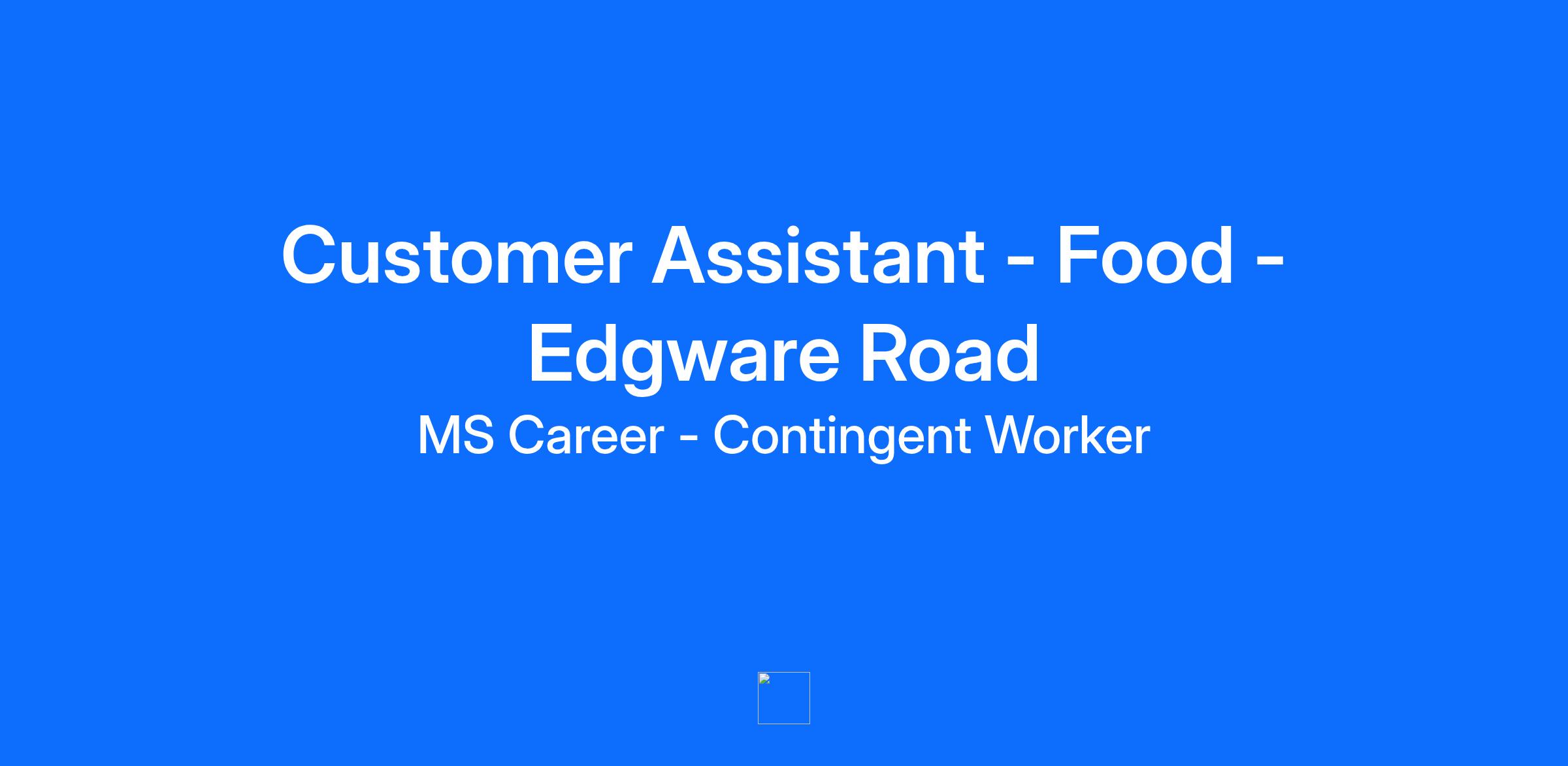 Customer Assistant - Food - Edgware Road