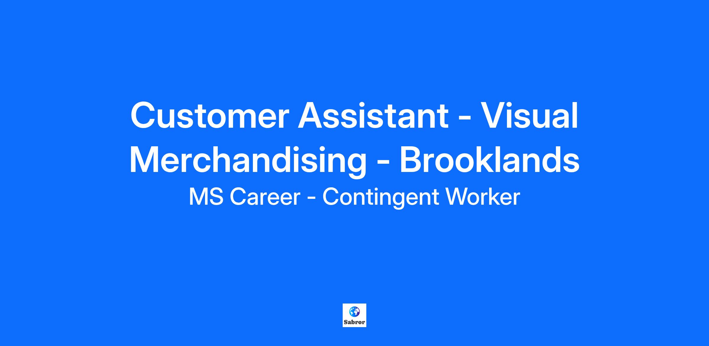 Customer Assistant - Visual Merchandising - Brooklands