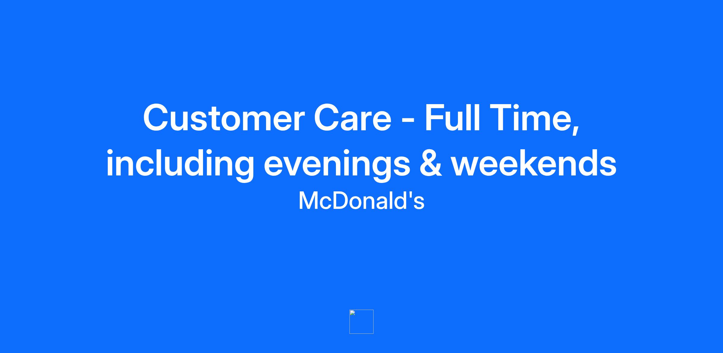 McDonald's UK has been around for over 50 years! We are one of the most recognised brands in the world, and the backbone of our brand is commitment to a set of core values: Serve, Inclusion, Integrity, Community and Family. We live by our values every day and are committed to fostering a safe, respectful and inclusive workplace, providing quality jobs, and making opportunity open to all. As a Customer Care Assistant, think of yourself as the face of your restaurant. In a nutshell, you'll deal with customers and make sure everything runs as it should in the customer areas. Activities include making children feel welcome, handing out balloons, organising special events, looking after customers' specific needs, keeping high standards of cleanliness in the dining area and toilets and helping to create a warm and welcoming atmosphere. It's your responsibility to establish and maintain positive communication with customers at all times and to keep the manager informed about customer satisfaction. Quite simply, you'll be working in our fast moving, high energy environment and we’re looking for a genuine smile plus an ability to connect with customers and make them feel valued. Friendly, welcoming, courteous and helpful behaviour will come naturally to you and you’ll work well as part of a team. Effective communication skills such as attentive listening, face-to-face verbal communication and eye contact are a must. The ability to maintain high energy levels whilst working both efficiently and productively is essential. Benefits package includes: Holiday pay, Service Awards, Meal allowance, Employee discounts from top highstreet and online brands and much more...........