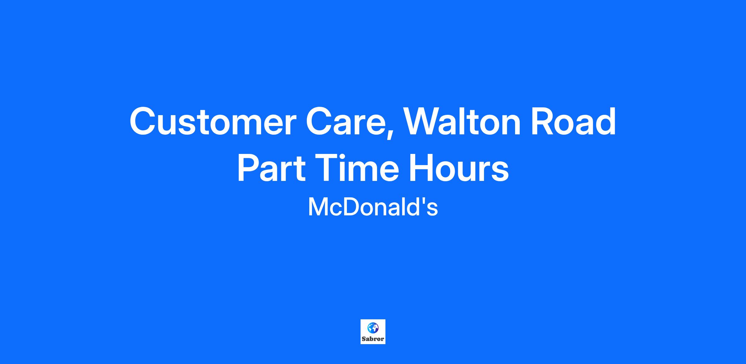 Customer Care, Walton Road Part Time Hours