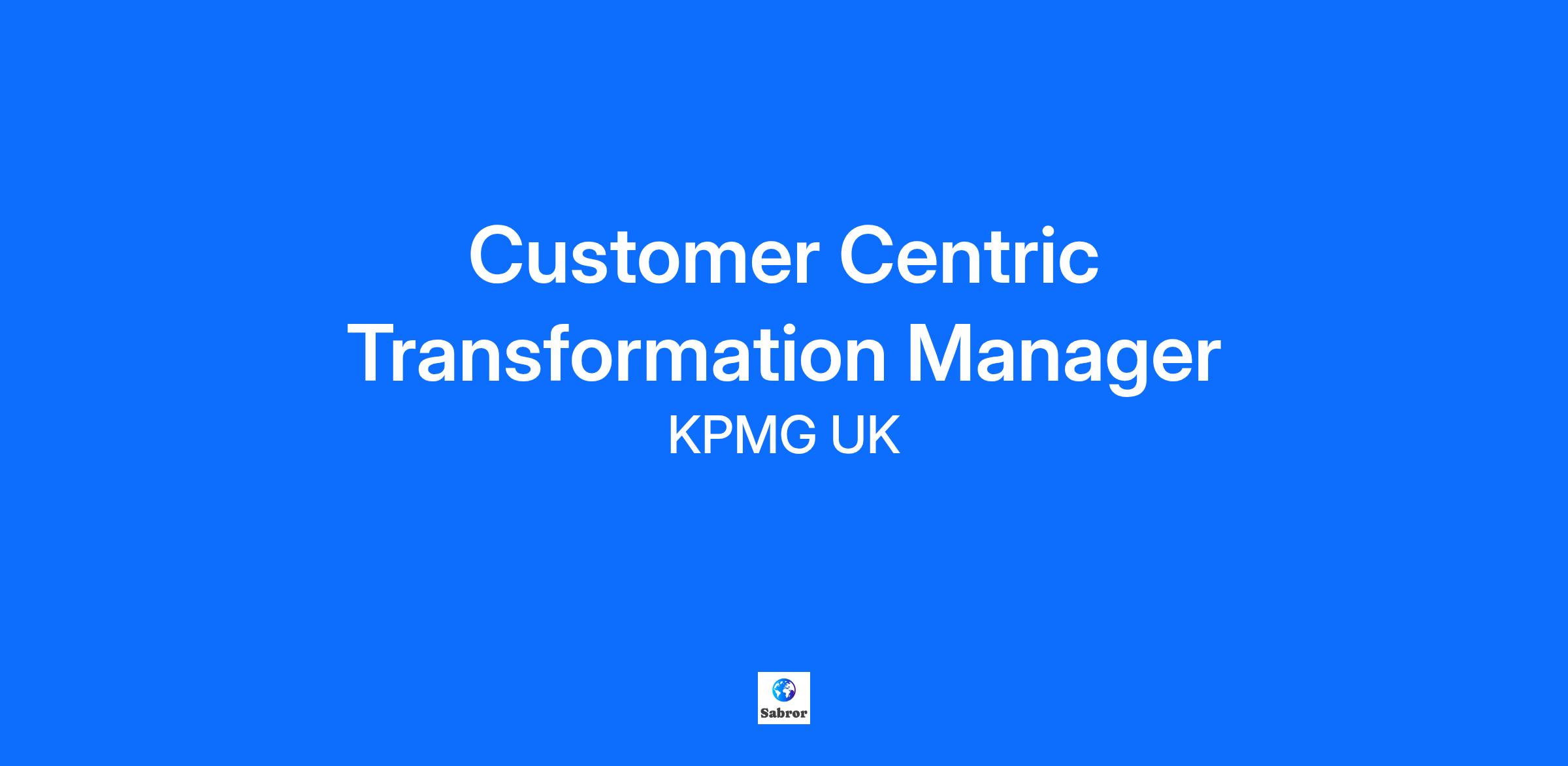 Job Title/Req Number: Customer Centric Transformation Manager / 107966 Base Location: Manchester, Leeds or London The KPMG Consulting function is a cornerstone of our business. Operating from London we do work that matters, serving the country with diligence and expertise. KPMG is one of the world's largest and most respected consultancies. We've supported the UK through times of war and peace, prosperity and recession, political and regulatory upheaval. We've proudly stood beside the institutions and businesses which make the UK what it is. By encompassing a wide range of disciplines across a breadth of areas such as Strategy, Forensic, Risk and Regulatory, People and Talent, and Operational and Financial Transformation, we become immersed in our clients' organisations, applying sector knowledge and technology solutions to deliver the best possible outcomes and get it right first time. Why Join KPMG as a Customer Centric Transformation Manager? We are seeking a talented Management Consultant with experience in Front Office / Customer Facing Transformation experience to support our People Consulting Corporates clients by applying Business Strategy and transformation expertise, identifying opportunities, and delivering end to end Advisory engagements. You will join an established and highly successful Front Office / Customer Facing Transformation practice, with the opportunity to leverage our leading practice methodologies and continue our growth. You will be working closely with FTSE 100 clients across a broad range of industries including Energy, Telecoms, Retail, Media and Professional Services. What will you be doing? Help clients focus on generating value through their front-office investments, with a clear performance focus and value creation Identify client problems and shape strategic customer-centric initiatives and deliver these in an end-to-end front office transformation Shape and manage client Front Office programmes of transformation work Build and manage relationships with clients on a daily basis Leverage your Front Office / Customer Facing Transformation expertise and network to generate new client opportunities Contribute to the development of our Corporate Front Office / Customer Facing Transformation propositions and assets Be a career coach for junior consultants, helping them to develop and progress their career What will you need to do it? Experienced Customer Front Office facing consultancy background, eg. technology services or industry-based CRM programme delivery background with experience of designing, building, and delivering solutions. Experience managing the delivery of end-to-end front-office functional transformation programmes, ideally underpinned by experience design, marketing, sales or service methodologies. Front Office Transformation experience gained with major clients in the Corporate sector Ability to articulate the value of the customer centric business functions to a non-technical audience. Uses a unique perspective to solve complex business problems Skills we would love to see / Amazing extras Transformation Consulting experience for clients Consumer Retail, TMT, Energy or Professional Services would be advantageous in securing this role Ability to leverage deep functional knowledge and experience to develop solutions to the client with short turnaround time Our Locations: We are open to talk to Management Consultants with experience in Front Office / Customer Facing Transformation in the UK as this is where the team is based. London Leeds Manchester With 20 sites across the UK, we can potentially facilitate office work, working from home, flexible hours, and part-time options. If you have a need for flexibility, please register and discuss this with our team. Find out more: Within Consulting we have a range of divisions and specialisms. Click the links to find out more below: Consulting at KPMG: www.kpmgcareers.co.uk/experienced-professional/consulting/ ITs Her Future Women in Tech programme: www.kpmgcareers.co.uk/people-culture/it-s-her-future/ KPMG Workability and Disability confidence: www.kpmgcareers.co.uk/experienced-professional/applying-to-kpmg/need-support-let-us-know/ For any additional support in applying, please click the links to find out more: Applying to KPMG: www.kpmgcareers.co.uk/experienced-professional/applying-to-kpmg/ Tips for interview: www.kpmgcareers.co.uk/experienced-professional/applying-to-kpmg/application-advice/ KPMG values: www.kpmgcareers.co.uk/experienced-professional/applying-to-kpmg/our-values/ KPMG Competencies: www.kpmgcareers.co.uk/experienced-professional/applying-to-kpmg/kpmg-competencies/ KPMG Locations and FAQ: www.kpmgcareers.co.uk/faq/?category=Experienced+professionals