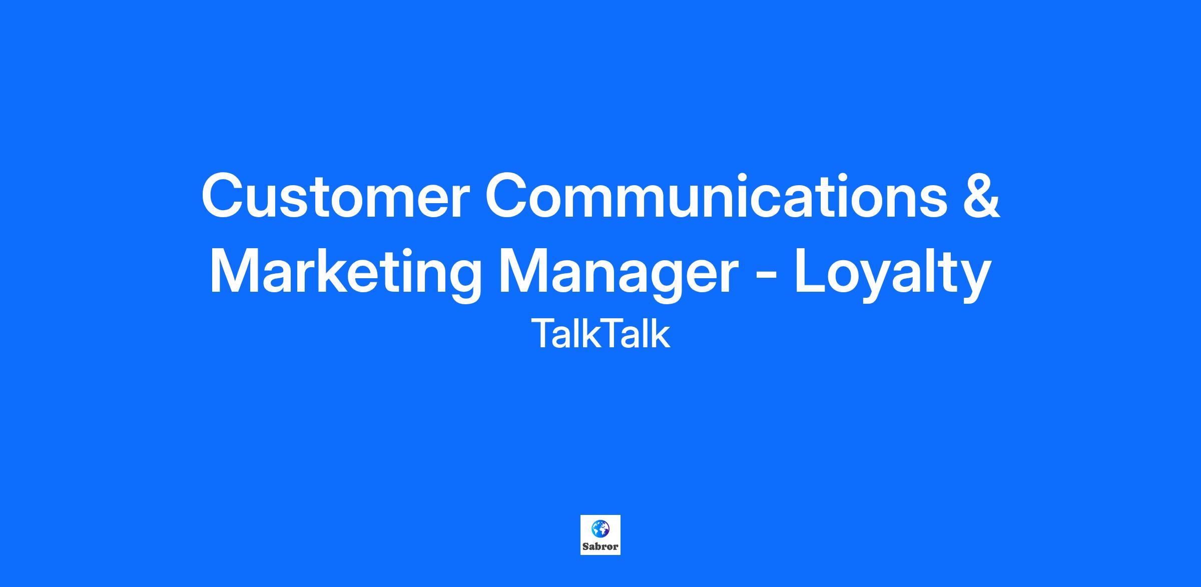 Role Purpose Drive the development and delivery of loyalty and advocacy programmes that build deeper relationships with our customer base, increase advocacy, and support commercial objectives. Work in cross-functional squads to ensure loyalty initiatives are integrated across the business. Main Responsibilities Design and implement loyalty programmes and advocacy initiatives that drive customer engagement and retention. Work with Commercial, Product, and Data teams to align loyalty activity with business goals and customer insights. Develop communications that celebrate customer milestones, encourage referrals, and build brand advocacy. Monitor loyalty metrics and use data to refine and improve programmes. Collaborate with the Stakeholder Engagement team to ensure all loyalty communications are compliant and on-brand. Assist with the development of key KPIs to ensure continued focus across the business on advocacy and loyalty. Knowledge: Detailed understanding of loyalty, CRM, and advocacy marketing strategies and best practices. Strong grasp of customer engagement, retention, and advocacy drivers in telecoms, utilities, or other consumer-facing sectors. Familiarity with loyalty programme design, referral schemes, and customer lifecycle management. Knowledge of data analytics tools, CRM systems, and customer insight platforms. Awareness of regulatory and compliance requirements for customer communications. Skills: Excellent communication and storytelling skills, able to inspire advocacy and loyalty. Advanced analytical and data interpretation skills, with the ability to translate insights into actionable loyalty initiatives. Strong project management skills, able to deliver multiple programmes and campaigns simultaneously. Exceptional stakeholder management and cross-functional collaboration skills. Creative problem-solving and innovation in developing new loyalty and advocacy approaches. Ability to measure, report, and optimise loyalty programme performance. Experience: Significant experience in loyalty, CRM, or advocacy marketing, ideally in a B2C environment. Proven track record of delivering successful loyalty or advocacy programmes. Experience using data and analytics to shape and optimise customer engagement strategies. Experience managing external partners, agencies, or suppliers. Demonstrated ability to work in agile, cross-functional teams. Behaviours / Values Fit: Customer-focused, collaborative, and commercially minded. Passionate about building advocacy and loyalty. Comfortable challenging the status quo and bringing new ideas. Adaptable, resilient, and able to work at pace in a fast-changing environment. Be Yourself. Make an Impact. Join Us. As a recognised Top 50 Inclusive Employer in the UK, we believe that diversity fuels innovation and success. We’re committed to building a workplace that reflects the communities and customers we serve. At TalkTalk, inclusion is part of our DNA – we’re all 100% human, and we’ve created a culture where you can truly be yourself. We’re not your traditional 9-5. We’re a dynamic, flexible workplace, and we’re excited to hear how you like to work. Whether you thrive in collaboration, focus better at home, or prefer a bit of both – let’s make it work. What We Offer Flexible hybrid working – with a minimum of 50% office presence to support teamwork and connection Collaborative office spaces designed for creative thinking and innovation Free on-site parking at our offices Generous holiday package – 25 days annual leave, 3 wellbeing days, and your birthday off (plus the option to buy up to 10 more days!) Private healthcare for all employees Competitive pension scheme and performance-related bonus opportunities Free broadband for all employees Life event gifts – celebrating milestones like marriages and births Inclusive employee networks – open to all, supporting peer connection and thought-provoking conversations Salary sacrifice scheme – save on dental, gym, and more Big retail and leisure discounts 3 paid volunteering days a year – because making a difference matters to us too We’re on a mission to bring simple, affordable, reliable and fair connectivity to everyone. We believe every customer matters, so we’ve been challenging the status quo from the word go to change things for the better. We’ve created a working environment where you can be yourself and give your all whether that be from your front room or the boardroom. You’ll be called on to out-think the competition and work closely with your colleagues to come up with new ideas and deliver great results for our customers. It won’t always be easy, but it’s always exciting. There are great opportunities for you, and our business, if you’re ready to stand for something