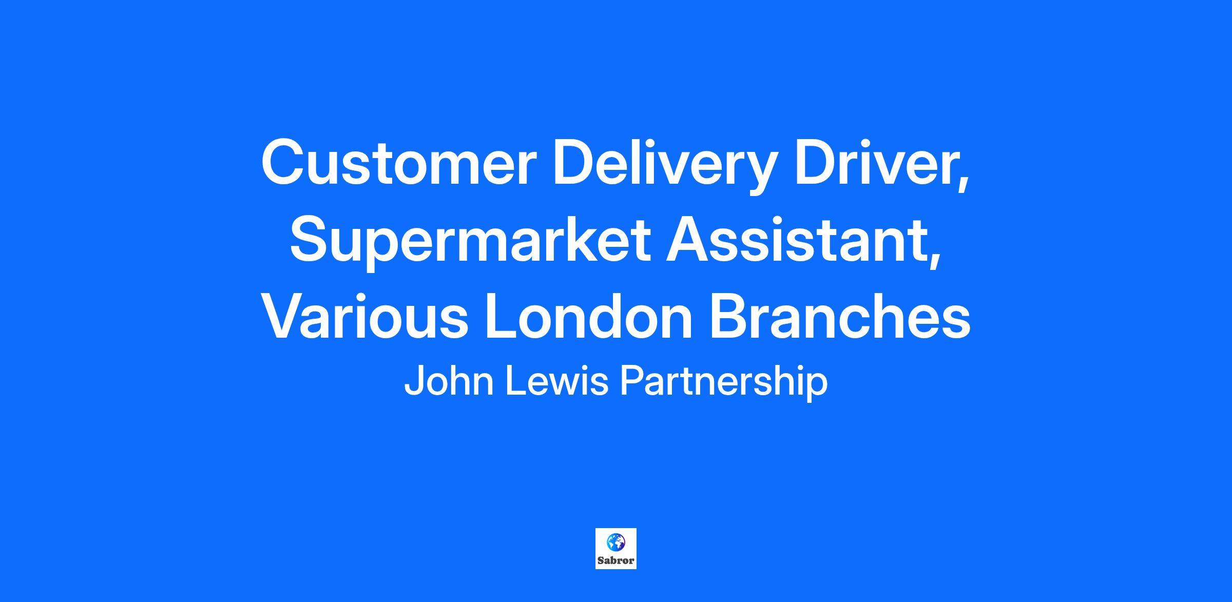 ABOUT THE ROLE As one of our Customer Delivery Drivers, you’ll be bringing the unique blend of quality Waitrose produce and Partner-led service right to our customers’ doors. Actively playing out our ethos - passionate Partners serving food lovers. When you're not out on the road, you'll be back at the shop supporting the team with daily tasks like stock replenishment and housekeeping. Contributing to the efficient and productive running of the shop in a friendly and welcoming team. In addition to your contractual pay, any time worked between 22:00 - 06:00 will attract Night Premium at a rate of £3.50 per hour. This will also apply to existing Partners who have enrolled onto Enhanced Hours Premium arrangements. Due to its nature, you need to be 18-years or older to work in this role. Please only apply if you are able to work at the locations specified on this vacancy. Finchley Waitrose 37.5 hours - Full Time - Fully Flexible (2 lates, 3 earlies & every other weekend) Harrow Weald Waitrose 15.4 hours - Working Wednesday & Friday 06:45-14:30 Enfield Waitrose 15.5 hours - Working Wednesdays 05:45 - 13:45 & Fridays 13:45 - 22:15. Key Responsibilities You'll typically start your day in store and you'll be responsible for: - Checking your delivery routes for the day. - Loading and preparing your van for deliveries, ensuring all orders are together and can be efficiently delivered directly to customers. - Ensuring all of the appropriate vehicle safety checks are complete on your van, maintaining full road compliance, health and safety. - Being an ambassador for the Waitrose brand while on the road with great customer service as your number one priority. - Helping customers with their shopping and building a rapport with them based on trust and service. - Supporting the wider shop team when required with general shopkeeping tasks. Essential skills/experience you'll need - Full valid B-Category UK manual driving licence with no more than 6-points. - Great customer service skills. -Time management skills. - Able to cope with the physical requirements of the role (e.g. lifting of crates, moving cages). - Comfortable working independently with the ability to be self motivated and adaptable. - IT literate. Desirable skills/experience you may have - Previous experience in a driving role and a knowledge of chilled vehicles would be welcomed. Closing Date: November 26, 2025 Pay: Contract Type: Permanent Hours of Work: Hours of Work Varied hours of full and part time work across seven days to include early starts, late finishes, evenings and weekends. Please see job description for available hours. Job Level: Partnership Level 10 Where You'll Be Working: Finchley (Waitrose & Partners), 273 Ballards Lane, London, London, N12 8NR ABOUT THE PARTNERSHIP We’re the largest employee owned business in the UK and home of our cherished brands, John Lewis and Waitrose. We’re not just employees, we’re Partners, driven by our purpose to build a happier world. As we look to our future, there’s never been a more exciting time to join us. We’re ruthlessly focused on being brilliant at retail. We continue to innovate, adapt and diversify. Never Knowingly Undersold on price, quality and service in John Lewis and passionately serving food-lovers in Waitrose. As Partners we all share the responsibility of ownership and in its rewards. We use our voices to contribute to our success, working together through the good and challenging times, holding true to our behaviours and treating everyone with kindness and respect. We all own making the Partnership somewhere we belong. Embracing our differences and creating an environment where we’re free to be ourselves and can THRIVE. Growing ourselves individually, and as a collective. As Partners, we make all the difference. And, we all own it. Important points to note: It’s important to note that some of our roles are subject to pre-employment vetting (which may include DBS checks for successful candidates). If required, you’ll be informed and provided with information about vetting during the recruitment process and we encourage you to complete any vetting documents quickly to avoid delays. Any DBS checks required will be carried out by a third-party registered body and financial probity checks may also be required for some of our roles. We also recommend that you apply as soon as possible as vacancies can close early if we see a high number of applicants. We want all of our Partners to have a good work-life balance and we support flexible working. This might mean flexible or compressed hours, job sharing or shorter hour contracts, where possible. Please discuss this further with the hiring manager during your interview. At the John Lewis Partnership we’re not just employees; we’re co-owners, and that’s why we’re called Partners. Being a Partner means not only do we all collectively share the responsibilities of being the UK’s largest employee-owned business, but we also share in its rewards and successes. It’s this ownership model that makes the Partnership a very unique place to work.