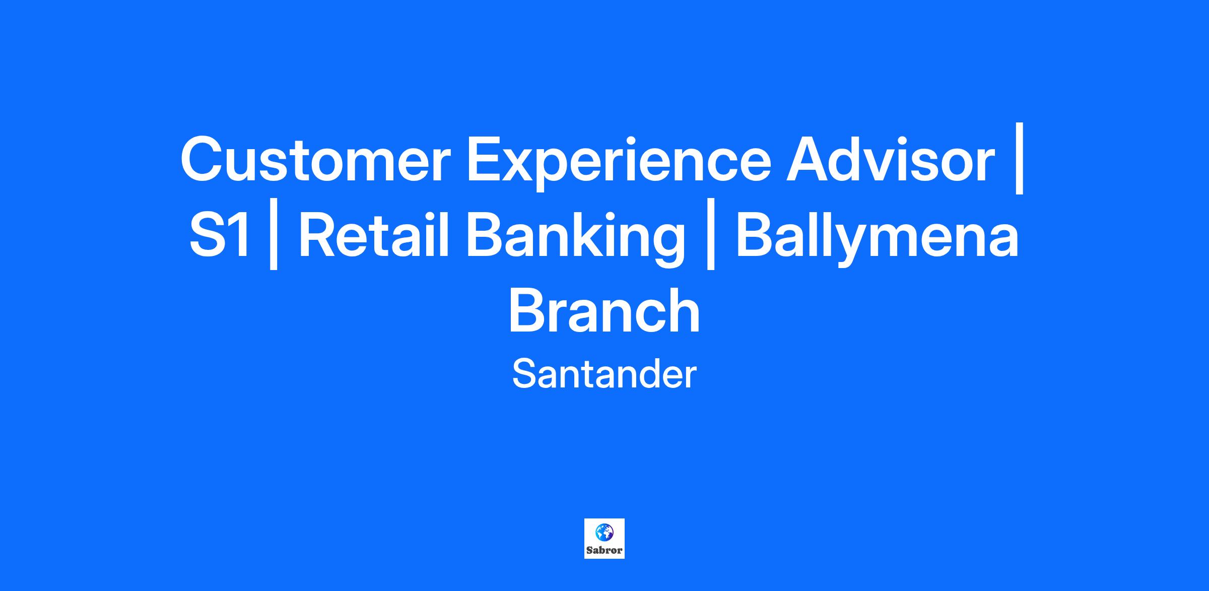 Customer Experience Advisor | S1 | Retail Banking | Ballymena Branch Country: United Kingdom IT STARTS HERE Santander (www.santander.com) is evolving from a global, high-impact brand into a technology-driven organisation, and our people are at the heart of this journey. Together, we are driving a customer-centric transformation that values bold thinking, innovation, and the courage to challenge what’s possible. This is more than a strategic shift. It’s a chance for driven professionals to grow, learn, and make a real difference. Our mission is to contribute to help more people and businesses prosper. We embrace a strong risk culture and all our professionals at all levels are expected to take a proactive and responsible approach toward risk management. Retail & Commercial Banking is a global business integrating all our retail and commercial banking activities to better serve our customers, improve efficiency and drive value creation. THE DIFFERENCE YOU MAKE Santander is looking for a Customer Experience Advisor based out of Ballymena Branch, working 21 hours per week, on a rota’d basis Monday to Saturday, between 8am & 6pm. This role is a 12 month fixed term contract. For our customers, you’ll be more than just the friendly face and voice of Santander. You’ll be a listener and problem solver. Whether you’re helping someone with a simple cash transaction, aiding them with technology in the banking hall, transacting with them over the phone or protecting your customers against fraud and scams, you’ll never know what the next challenge will be. What’s not in doubt is that you’ll have plenty of support. Life in a branch can be busy, varied and challenging, so we’re a close-knit team. You’ll be totally flexible in your approach and comfortable in undertaking a broad range of activities. This means not limiting your time and focus on one particular element of your role. You’ll thrive on the variety this gives you and take satisfaction for operating in a multi-skilled environment. You’re the eyes and ears of our business after all. We’re shaping the way we work through innovation, cutting-edge technology, collaboration and the freedom to explore new ideas. To succeed in this role, you will be responsible for: Acting as the first point of contact for customers in branch or over the phone Assisting with day-to-day transactions, queries and servicing Answering customer calls into our contact centre Building relationships and finding solutions Developing your knowledge of services and products to help our customers Identifying new ways to improve the customer experience WHAT YOU’LL BRING Our people are our greatest strength. Every individual contributes unique perspectives that make us stronger as a team and as an organisation. We’re enabling teams to go beyond by valuing who they are and empowering what they bring. The following requirements represent the knowledge, skills, and abilities essential for success in this role. Reasonable accommodations may be made to enable individuals with disabilities to perform the essential functions. Professional Experience Proven ability to deliver outstanding customer service either from a face to face or a telephony background (Required) The ability to communicate effectively with customers to truly understand their needs (Required) A real desire to go above-and-beyond for customers (Preferred) Effective team working skills with a flexible, can-do approach to work (Preferred) Openness to a broad range of activities even if outside of standard expectations (Preferred) Ability to grow, adapt and change accommodating business needs and priorities (Preferred) WE VALUE YOUR IMPACT At Santander, your contribution matters. We recognise the difference you make every day, and we make sure you feel valued, supported and rewarded in return. Here, recognition goes beyond pay. It’s about the pride you feel in your work, the impact you have on customers and communities, and the opportunities you have to grow and thrive — personally and professionally. Starting salary of £24,000 plus a £500 annual cash allowance to spend on our great range of benefits. *Include salary where authorised 25 days’ holiday plus bank holidays, which increases to 26 days after 5yrs service, with the option to purchase up to 5 contractual days per year. Voluntary healthcare benefits at discounted rates. Including: medical insurance, dental insurance, and health assessments We put 8% of salary into your pension, even if you don’t contribute yourself. We’ll pay in up to 12.5% of salary, if you contribute as well, and you can take some of our contribution in cash if you prefer. Protection for you and your family, with company-funded death-in-service benefit and income protection insurance, and the option to take advantage of discounted rates for additional life assurance and critical illness cover. Share in Santander’s success by saving or investing in our share plans. As a Santander UK employee, you are able to request staff versions of our products like our Edge Current Accounts and Credit Cards with no fees, as well as apply to many other deals and discounts in Santander products and services Competitive rewards that reflect the real impact you make and the value you bring. Wellbeing that goes beyond work — we work with a range of wellbeing partners across our 4 pillars of wellbeing (physical, mental, social and financial) to give you access to a suite of apps, discounted gym and fitness access, weekly online classes, flexible healthcare and mental health support. Support for every life stage — from menopause and pregnancy to parenthood and beyond, with enhanced family leave, childcare options and tailored wellbeing support. Time to give back through volunteering opportunities that let you make a difference in the communities we serve. Global growth opportunities to shape your career, learn new skills and explore what’s possible across our interna