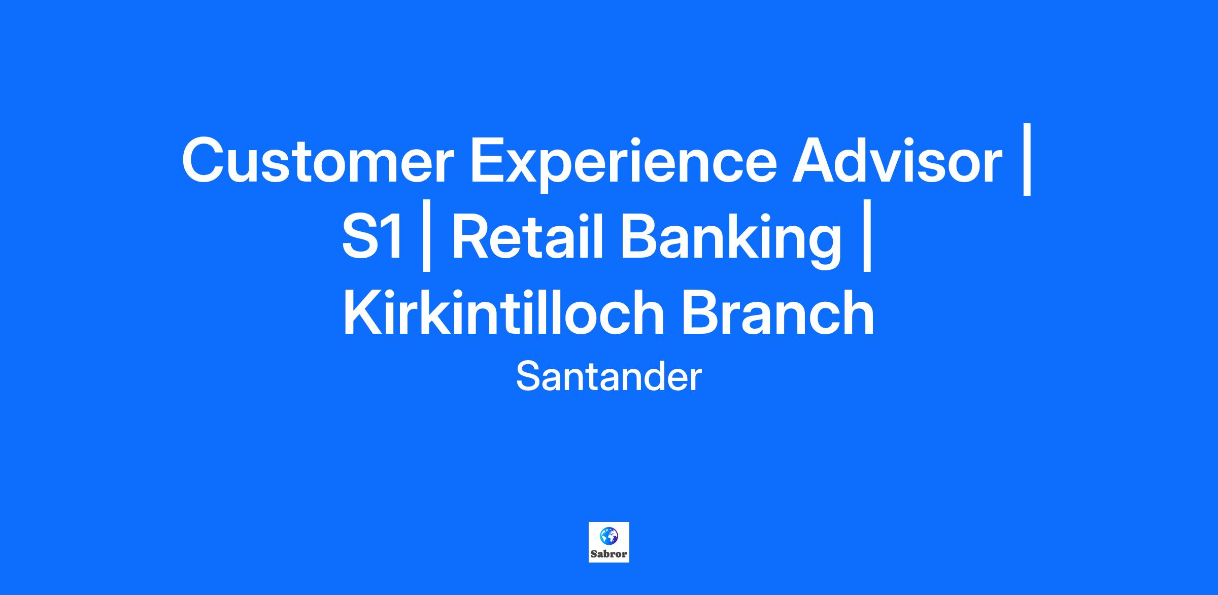 Customer Experience Advisor | S1 | Retail Banking | Kirkintilloch Branch Country: United Kingdom IT STARTS HERE Santander (www.santander.com) is evolving from a global, high-impact brand into a technology-driven organisation, and our people are at the heart of this journey. Together, we are driving a customer-centric transformation that values bold thinking, innovation, and the courage to challenge what’s possible. This is more than a strategic shift. It’s a chance for driven professionals to grow, learn, and make a real difference. Our mission is to contribute to help more people and businesses prosper. We embrace a strong risk culture and all our professionals at all levels are expected to take a proactive and responsible approach toward risk management. Retail & Commercial Banking is a global business integrating all our retail and commercial banking activities to better serve our customers, improve efficiency and drive value creation. THE DIFFERENCE YOU MAKE Santander is looking for a Customer Experience Advisor based out of Kirkintilloch Branch, working 35 hours per week, on a rota’d basis Monday to Saturday, between 8am & 6pm. This role is a 12 month fix term contract. For our customers, you’ll be more than just the friendly face and voice of Santander. You’ll be a listener and problem solver. Whether you’re helping someone with a simple cash transaction, aiding them with technology in the banking hall, transacting with them over the phone or protecting your customers against fraud and scams, you’ll never know what the next challenge will be. What’s not in doubt is that you’ll have plenty of support. Life in a branch can be busy, varied and challenging, so we’re a close-knit team. You’ll be totally flexible in your approach and comfortable in undertaking a broad range of activities. This means not limiting your time and focus on one particular element of your role. You’ll thrive on the variety this gives you and take satisfaction for operating in a multi-skilled environment. You’re the eyes and ears of our business after all. We’re shaping the way we work through innovation, cutting-edge technology, collaboration and the freedom to explore new ideas. To succeed in this role, you will be responsible for: Acting as the first point of contact for customers in branch or over the phone Assisting with day-to-day transactions, queries and servicing Answering customer calls into our contact centre Building relationships and finding solutions Developing your knowledge of services and products to help our customers Identifying new ways to improve the customer experience WHAT YOU’LL BRING Our people are our greatest strength. Every individual contributes unique perspectives that make us stronger as a team and as an organisation. We’re enabling teams to go beyond by valuing who they are and empowering what they bring. The following requirements represent the knowledge, skills, and abilities essential for success in this role. Reasonable accommodations may be made to enable individuals with disabilities to perform the essential functions. Professional Experience Proven ability to deliver outstanding customer service either from a face to face or a telephony background (Required) The ability to communicate effectively with customers to truly understand their needs (Required) A real desire to go above-and-beyond for customers (Preferred) Effective team working skills with a flexible, can-do approach to work (Preferred) Openness to a broad range of activities even if outside of standard expectations (Preferred) Ability to grow, adapt and change accommodating business needs and priorities (Preferred) WE VALUE YOUR IMPACT At Santander, your contribution matters. We recognise the difference you make every day, and we make sure you feel valued, supported and rewarded in return. Here, recognition goes beyond pay. It’s about the pride you feel in your work, the impact you have on customers and communities, and the opportunities you have to grow and thrive — personally and professionally. Starting salary of £24,000 plus a £500 annual cash allowance to spend on our great range of benefits. *Include salary where authorised 25 days’ holiday plus bank holidays, which increases to 26 days after 5yrs service, with the option to purchase up to 5 contractual days per year. Voluntary healthcare benefits at discounted rates. Including: medical insurance, dental insurance, and health assessments We put 8% of salary into your pension, even if you don’t contribute yourself. We’ll pay in up to 12.5% of salary, if you contribute as well, and you can take some of our contribution in cash if you prefer. Protection for you and your family, with company-funded death-in-service benefit and income protection insurance, and the option to take advantage of discounted rates for additional life assurance and critical illness cover. Share in Santander’s success by saving or investing in our share plans. As a Santander UK employee, you are able to request staff versions of our products like our Edge Current Accounts and Credit Cards with no fees, as well as apply to many other deals and discounts in Santander products and services Competitive rewards that reflect the real impact you make and the value you bring. Wellbeing that goes beyond work — we work with a range of wellbeing partners across our 4 pillars of wellbeing (physical, mental, social and financial) to give you access to a suite of apps, discounted gym and fitness access, weekly online classes, flexible healthcare and mental health support. Support for every life stage — from menopause and pregnancy to parenthood and beyond, with enhanced family leave, childcare options and tailored wellbeing support. Time to give back through volunteering opportunities that let you make a difference in the communities we serve. Global growth opportunities to shape your career, learn new skills and explore what’s possible across our i