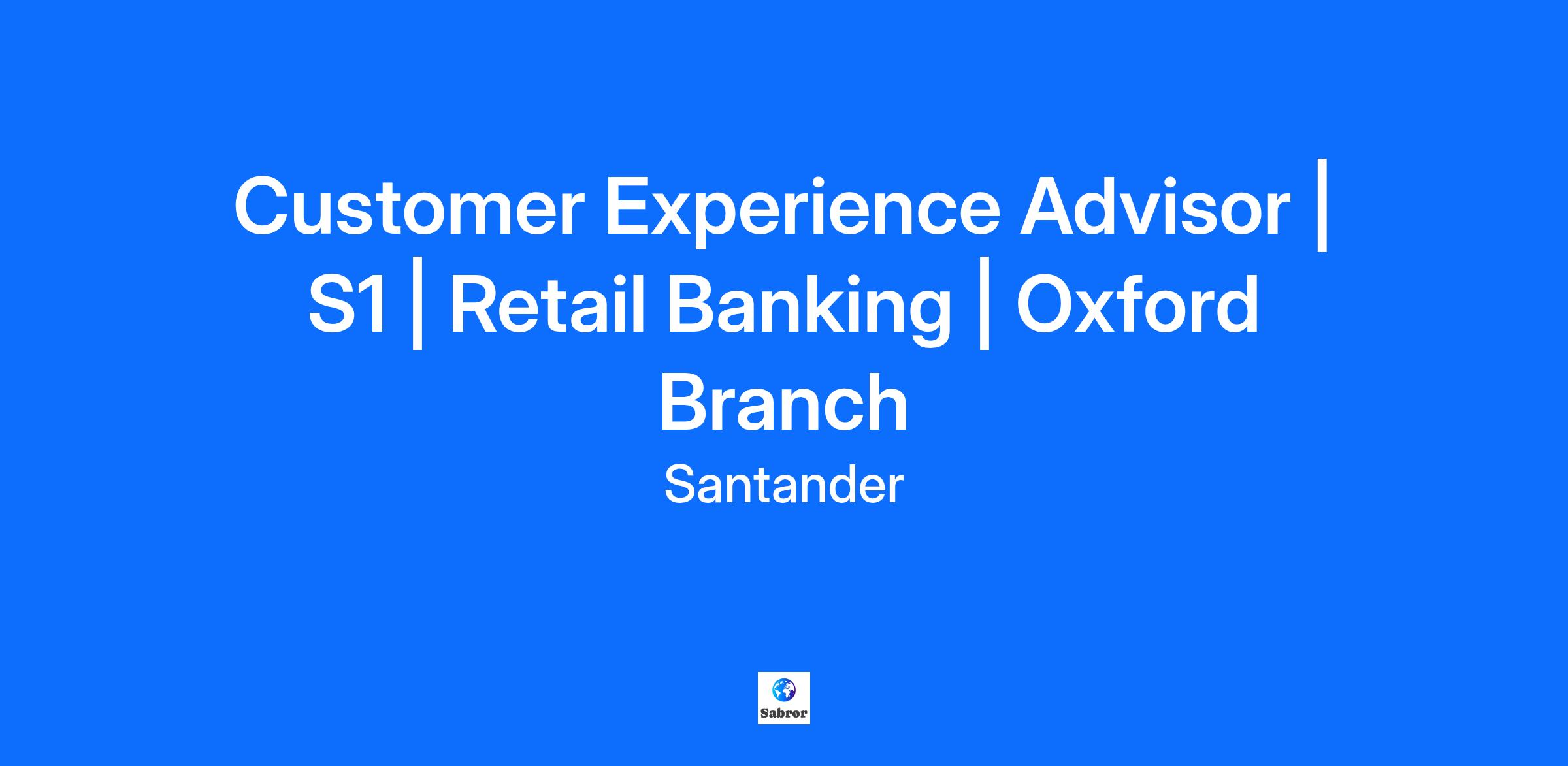 Customer Experience Advisor | S1 | Retail Banking | Oxford Branch Country: United Kingdom IT STARTS HERE Santander (www.santander.com) is evolving from a global, high-impact brand into a technology-driven organisation, and our people are at the heart of this journey. Together, we are driving a customer-centric transformation that values bold thinking, innovation, and the courage to challenge what’s possible. This is more than a strategic shift. It’s a chance for driven professionals to grow, learn, and make a real difference. Our mission is to contribute to help more people and businesses prosper. We embrace a strong risk culture and all our professionals at all levels are expected to take a proactive and responsible approach toward risk management. Retail & Commercial Banking is a global business integrating all our retail and commercial banking activities to better serve our customers, improve efficiency and drive value creation. THE DIFFERENCE YOU MAKE Santander is looking for a Customer Experience Advisor based out of Oxford Branch This is an on call working role a minimum of 260 hours per annum. This is a rolling contract For our customers, you’ll be more than just the friendly face and voice of Santander. You’ll be a listener and problem solver. Whether you’re helping someone with a simple cash transaction, aiding them with technology in the banking hall, transacting with them over the phone or protecting your customers against fraud and scams, you’ll never know what the next challenge will be. What’s not in doubt is that you’ll have plenty of support. Life in a branch can be busy, varied and challenging, so we’re a close-knit team. You’ll be totally flexible in your approach and comfortable in undertaking a broad range of activities. This means not limiting your time and focus on one particular element of your role. You’ll thrive on the variety this gives you and take satisfaction for operating in a multi-skilled environment. You’re the eyes and ears of our business after all. We’re shaping the way we work through innovation, cutting-edge technology, collaboration and the freedom to explore new ideas. To succeed in this role, you will be responsible for: Acting as the first point of contact for customers in branch or over the phone Assisting with day-to-day transactions, queries and servicing Answering customer calls into our contact centre Building relationships and finding solutions Developing your knowledge of services and products to help our customers Identifying new ways to improve the customer experience WHAT YOU’LL BRING Our people are our greatest strength. Every individual contributes unique perspectives that make us stronger as a team and as an organisation. We’re enabling teams to go beyond by valuing who they are and empowering what they bring. The following requirements represent the knowledge, skills, and abilities essential for success in this role. Reasonable accommodations may be made to enable individuals with disabilities to perform the essential functions. Professional Experience Proven ability to deliver outstanding customer service either from a face to face or a telephony background (Required) The ability to communicate effectively with customers to truly understand their needs (Required) A real desire to go above-and-beyond for customers (Preferred) Effective team working skills with a flexible, can-do approach to work (Preferred) Openness to a broad range of activities even if outside of standard expectations (Preferred) Ability to grow, adapt and change accommodating business needs and priorities (Preferred) WE VALUE YOUR IMPACT At Santander, your contribution matters. We recognise the difference you make every day, and we make sure you feel valued, supported and rewarded in return. Here, recognition goes beyond pay. It’s about the pride you feel in your work, the impact you have on customers and communities, and the opportunities you have to grow and thrive — personally and professionally. Starting salary of £24,000 plus a £500 annual cash allowance to spend on our great range of benefits. *Include salary where authorised 25 days’ holiday plus bank holidays, which increases to 26 days after 5yrs service, with the option to purchase up to 5 contractual days per year. Voluntary healthcare benefits at discounted rates. Including: medical insurance, dental insurance, and health assessments We put 8% of salary into your pension, even if you don’t contribute yourself. We’ll pay in up to 12.5% of salary, if you contribute as well, and you can take some of our contribution in cash if you prefer. Protection for you and your family, with company-funded death-in-service benefit and income protection insurance, and the option to take advantage of discounted rates for additional life assurance and critical illness cover. Share in Santander’s success by saving or investing in our share plans. As a Santander UK employee, you are able to request staff versions of our products like our Edge Current Accounts and Credit Cards with no fees, as well as apply to many other deals and discounts in Santander products and services Competitive rewards that reflect the real impact you make and the value you bring. Wellbeing that goes beyond work — we work with a range of wellbeing partners across our 4 pillars of wellbeing (physical, mental, social and financial) to give you access to a suite of apps, discounted gym and fitness access, weekly online classes, flexible healthcare and mental health support. Support for every life stage — from menopause and pregnancy to parenthood and beyond, with enhanced family leave, childcare options and tailored wellbeing support. Time to give back through volunteering opportunities that let you make a difference in the communities we serve. Global growth opportunities to shape your career, learn new skills and explore what’s possible across our international network. Ready to be recognised? It st