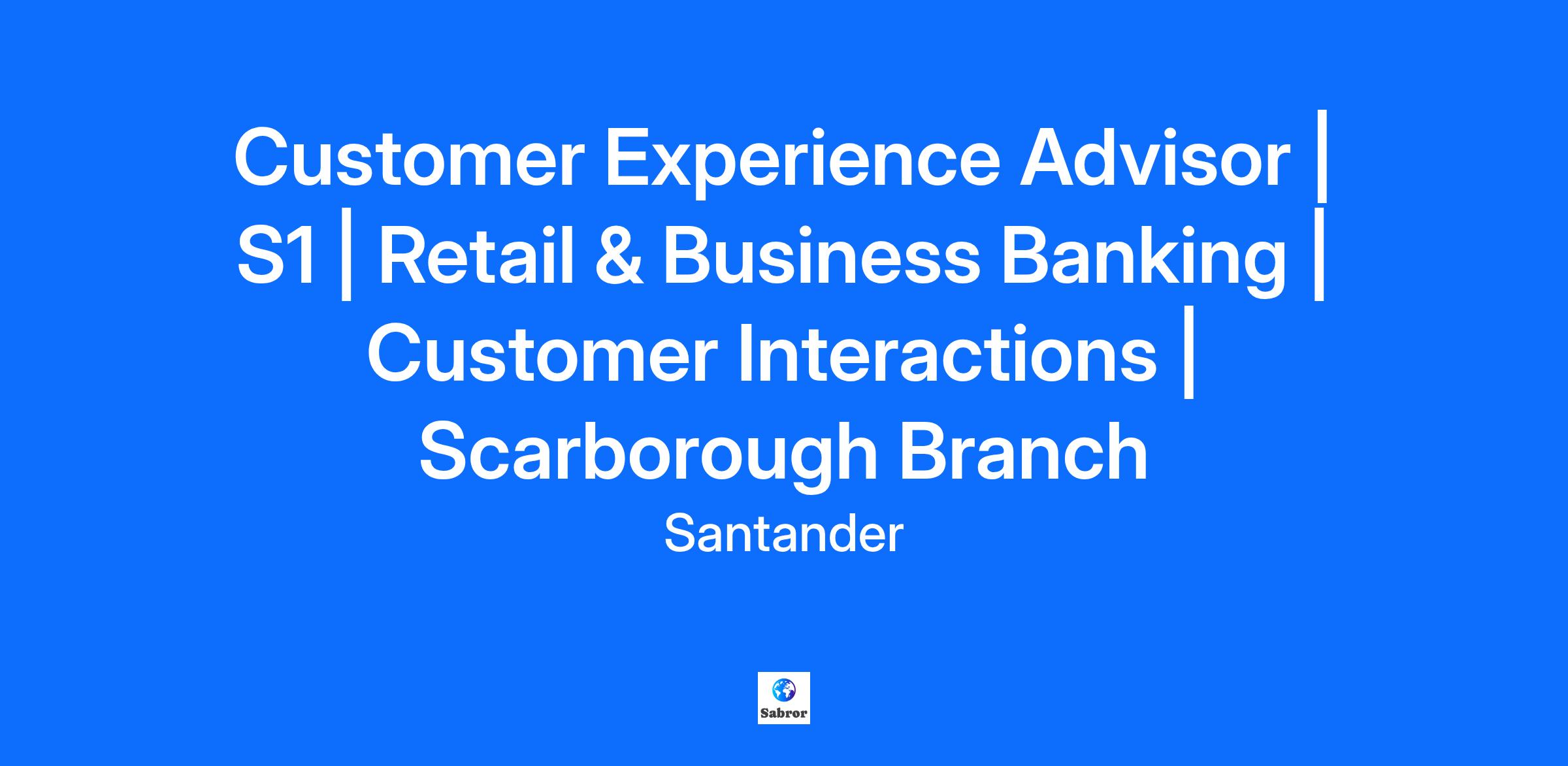 Customer Experience Advisor | S1 | Retail & Business Banking | Customer Interactions | Scarborough Branch Country: United Kingdom Join our community. We are currently recruiting Customer Service colleagues, with a starting salary of £24,500 per annum, this is made up of a base salary of £24,000 along with an additional £500 flexible benefit. For our customers, you’ll be more than just the friendly face and voice of Santander. You’ll be a listener and problem solver. Whether you’re helping someone with a simple cash transaction, aiding them with technology in the banking hall, transacting with them over the phone or protecting your customers against fraud and scams, you’ll never know what the next challenge will be. What’s not in doubt is that you’ll have plenty of support. Life in a branch can be busy, varied and challenging, so we’re a close-knit team. You’ll be totally flexible in your approach and comfortable in undertaking a broad range of activities. This means not limiting your time and focus on one particular element of your role. You’ll thrive on the variety this gives you and take satisfaction for operating in a multi-skilled environment. You’re the eyes and ears of our business after all. The difference you’ll make: Acting as the first point of contact for customers in branch or over the phone Assisting with day-to-day transactions, queries and servicing Answering customer calls into our contact centre Building relationships and finding solutions Developing your knowledge of services and products to help our customers Identifying new ways to improve the customer experience What you’ll bring: These are the essential requirements you need to be successful in this role: Proven ability to deliver outstanding customer service either from a face to face or a telephony background The ability to communicate effectively with customers to truly understand their needs It would also be nice for you to have: A real desire to go above-and-beyond for customers Effective team working skills with a flexible, can-do approach to work Openness to a broad range of activities even if outside of standard expectations Ability to grow, adapt and change accommodating business needs and priorities You will require the right to work in the UK (please see details below) What else you need to know: This is a full-time permanent branch-based role, working 35 hours across Monday to Saturday across the hours of 8:00am – 6:00pm The role is based in our Scarborough branch. Inclusion At Santander we’re creating a thriving workplace where all colleagues feel they belong and are supported to succeed. We all help to make Santander a workplace that celebrates diversity and attracts, retains and develops the most talented and committed people through living our values of Simple, Personal, and Fair. How we’ll reward you. As well as a salary, we offer a wide range of benefits that you can choose from and tailor to your needs. Starting salary of £24,000 plus a £500 annual cash allowance to spend on our great range of benefits. 25 days’ holiday plus bank holidays, which increases to 26 days after 5yrs service, with the option to purchase up to 5 contractual days per year. Eligible for a discretionary performance-related annual bonus. Voluntary healthcare benefits at discounted rates. Including: medical insurance, dental insurance, and health assessments. Free access to a range of digital health services, including GP. Free access to wellbeing apps and up to three weekly online classes. We put 8% of salary into your pension, even if you don’t contribute yourself. We’ll pay in up to 12.5% of salary, if you contribute as well, and you can take some of our contribution in cash if you prefer. Protection for you and your family, with company-funded death-in-service benefit and income protection insurance, and the option to take advantage of discounted rates for additional life assurance and critical illness cover. Support your favourite causes through charitable giving and our community partnerships. Share in Santander’s success by saving or investing in our share plans. 24/7 access to an online employee discount platform including retailers, entertainment, eating out, travel and more. As a Santander UK employee, you are able to request staff versions of our products like our Edge Current Accounts and Credit Cards with no fees, as well as apply to many other deals and discounts in Santander products and services. Learn more about our benefits and family friendly policies Right to work in the UK. Every individual must have the right to work in the UK to commence employment with Santander either by way of nationality, visa or work permit. If you do require a working visa / permit this will not influence our decision on whether to progress your application. However, if you do not have a right to work, or an application for a working visa / permit is unsuccessful, Santander will not proceed with your application and will withdraw any conditional offer previously made. What to do next: If this sounds like a role you’re interested in, then please apply. If there’s anything we can do in the recruitment process to help you achieve your best, get in touch. Whether it’s a copy of our application form in another format or additional assistance, we’re available through email. You can contact us at resourcing@santander.co.uk. Additional information: We welcome applications on the understanding that, should you be offered this role, there may be no relocation package available. Santander will pay the employer mandatory government fees that are required to pay in connection with visa sponsorship. You may be liable for your own personal employee immigration and relocation costs. The Santander Effect Our work touches 140 million lives every day. How? By always innovating, sharing our experiences, questioning how we do things and adapting to new challenges. As we keep reinventing ourselves for t